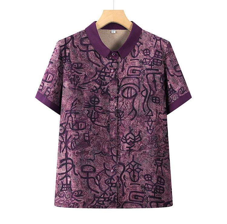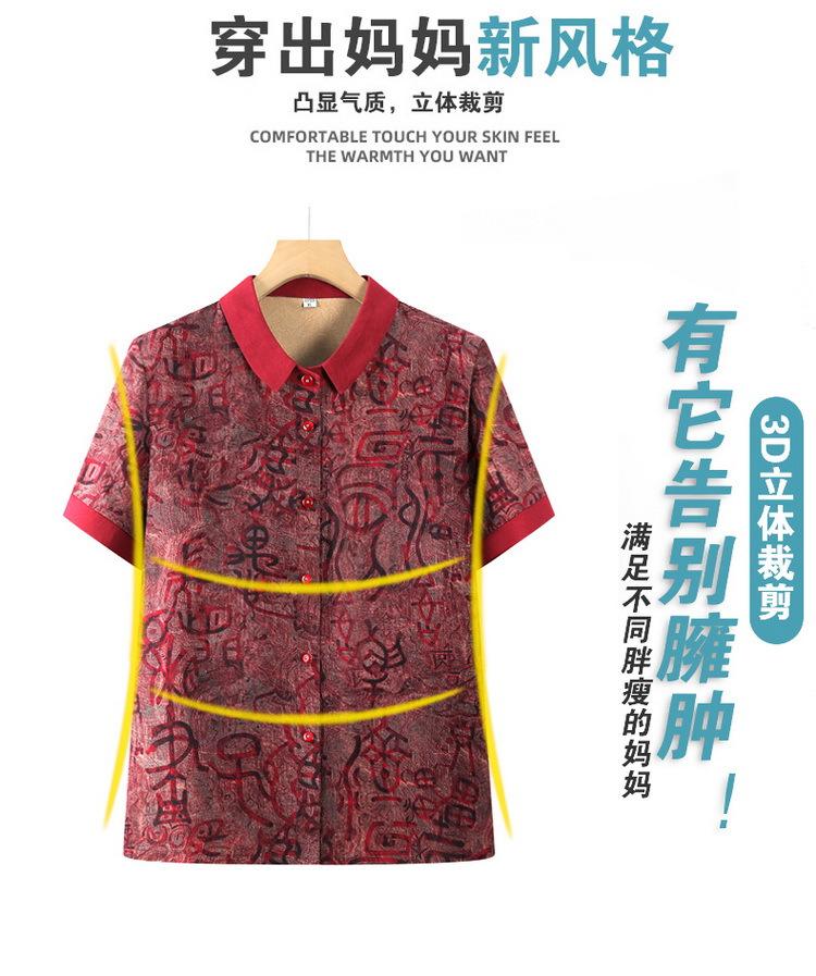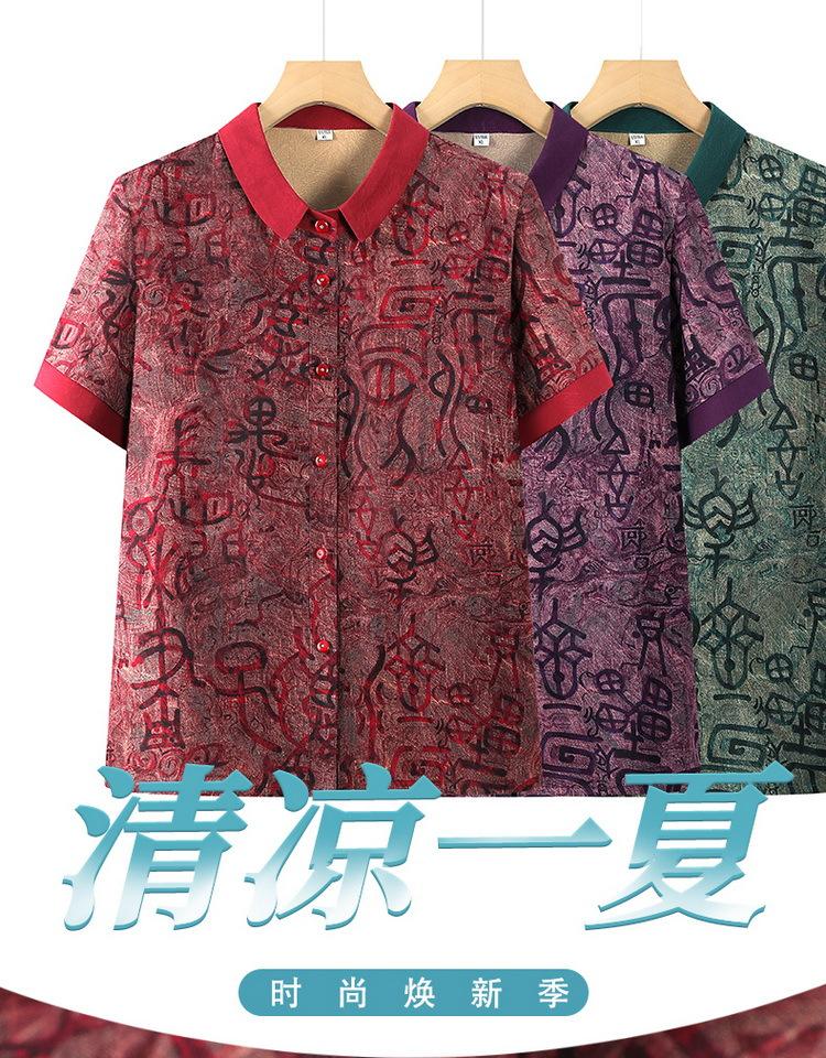 Camisas de Verano de Solapa de Manga Corta para Mujeres de Mediana Edad y Ancianas Tops Cárdigan Estampados de Abuela Ropa para Señoras Mayores Camisas para Mujeres