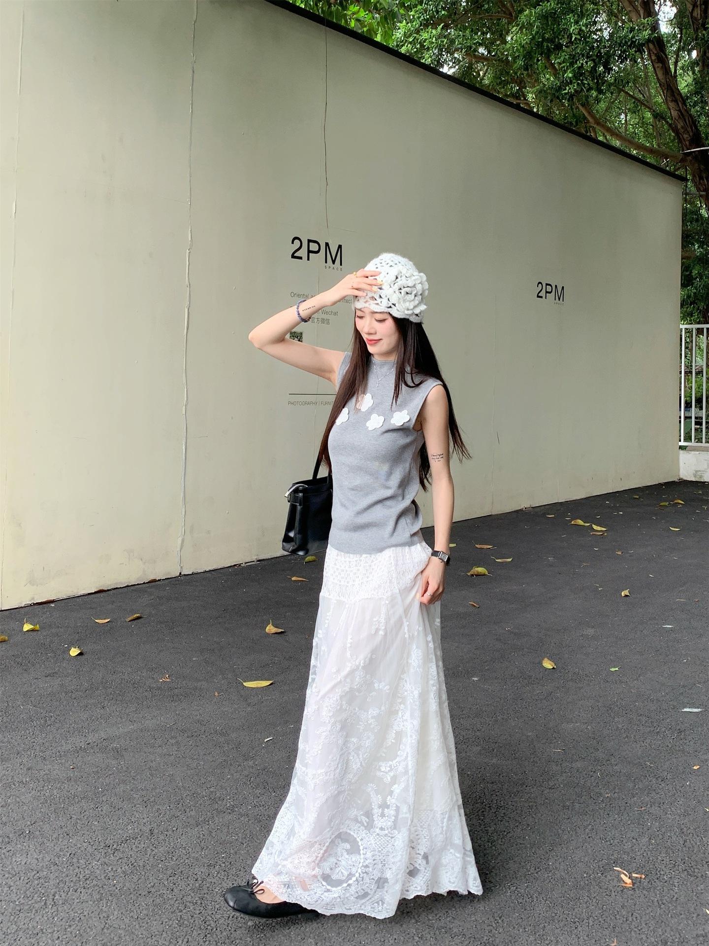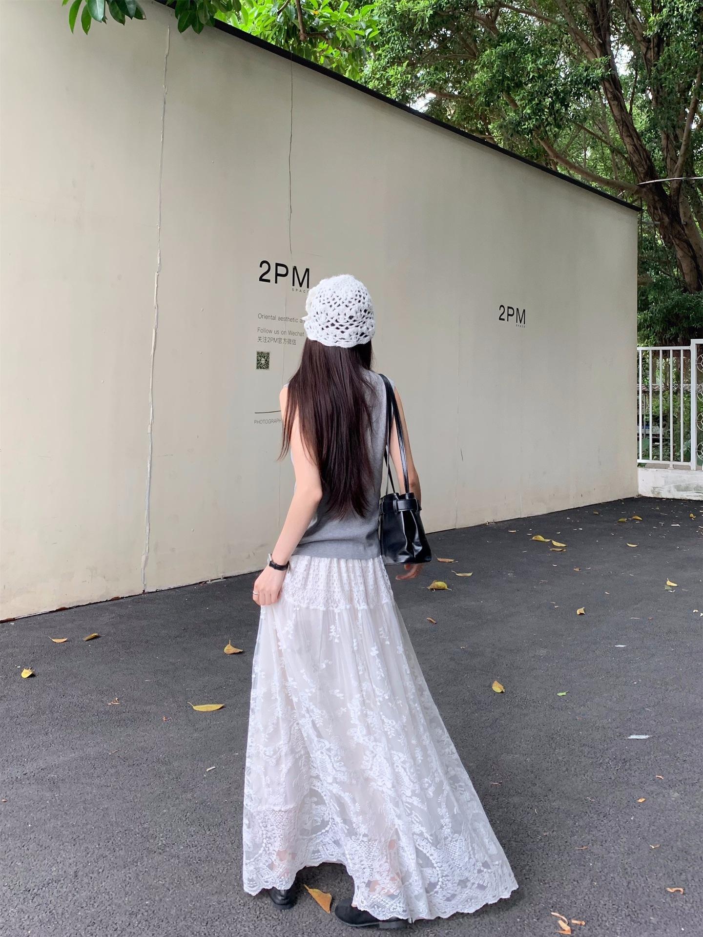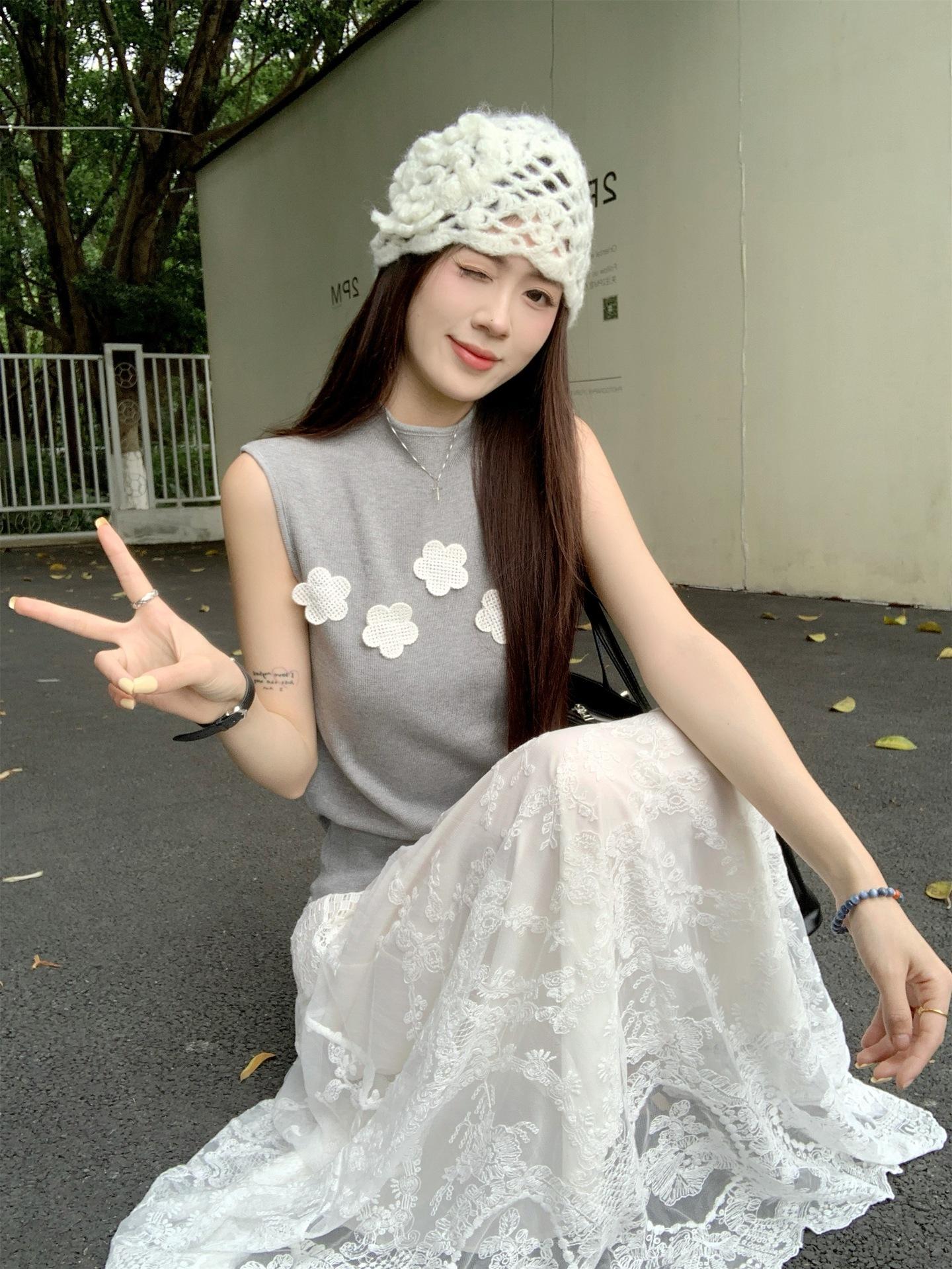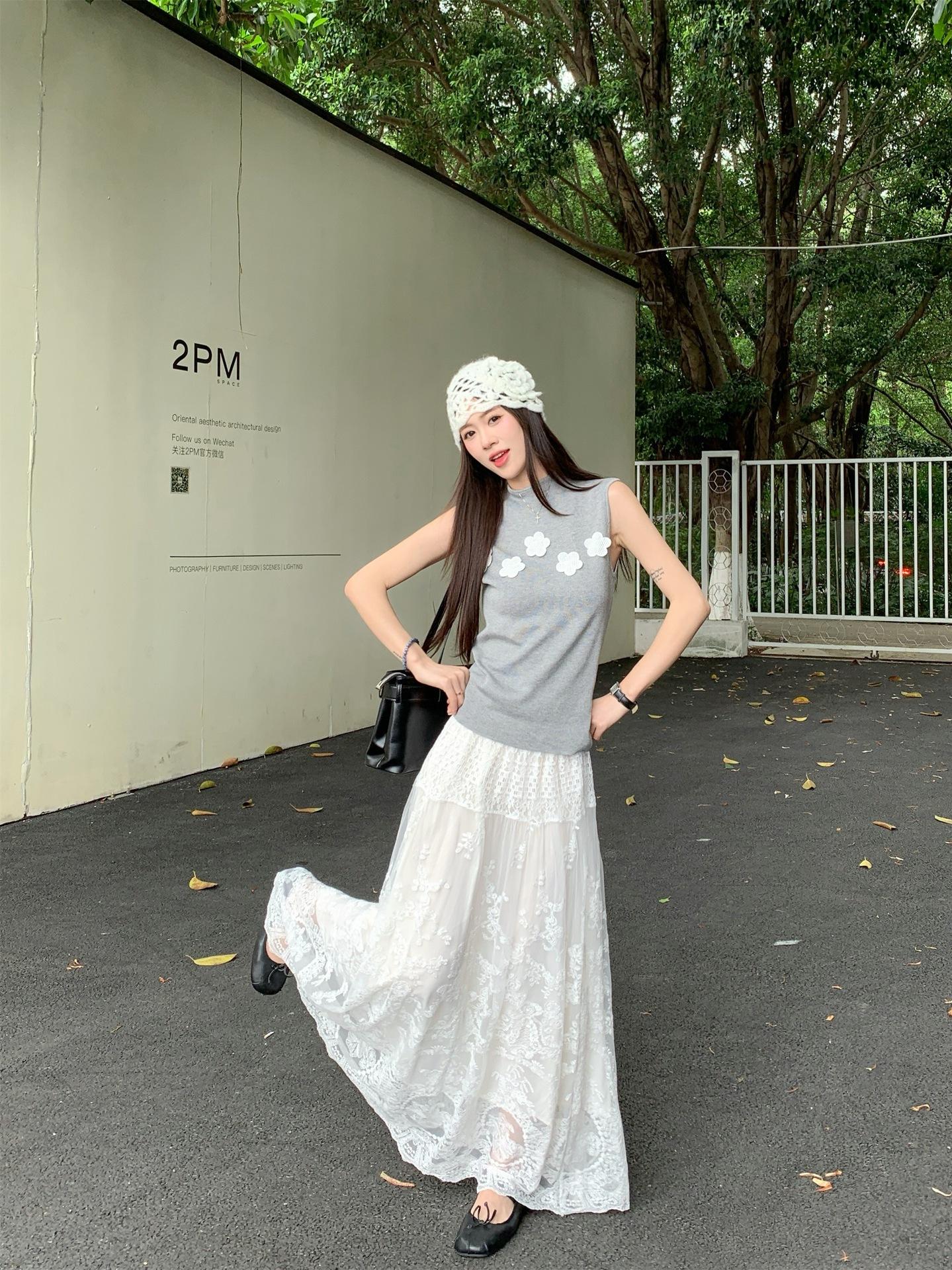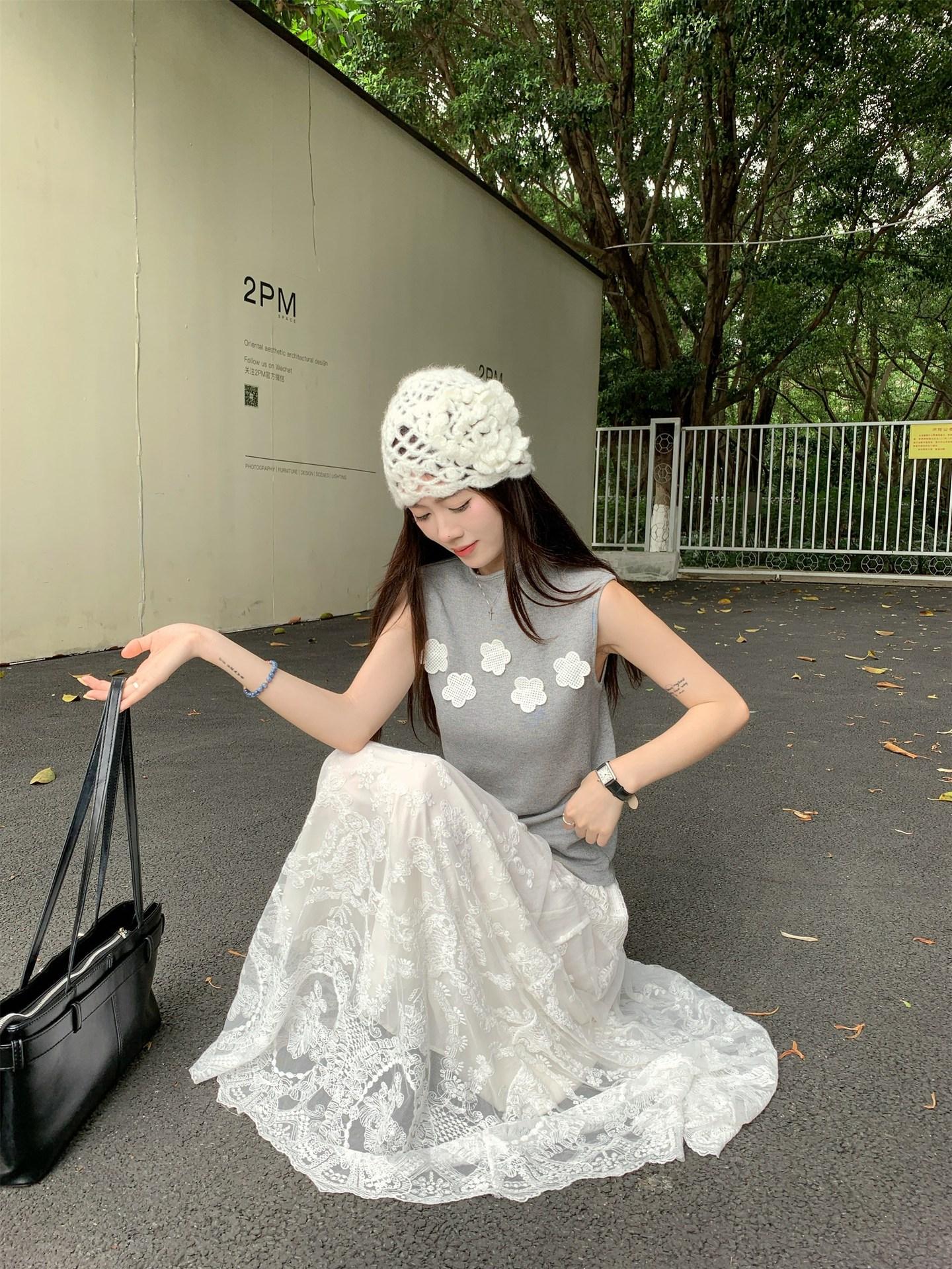 Diseño Coreano Top Chaleco Floral Falda Chic de Encaje Cintura Alta Nuevo Traje de Verano para Mujer 2025 Tendencia