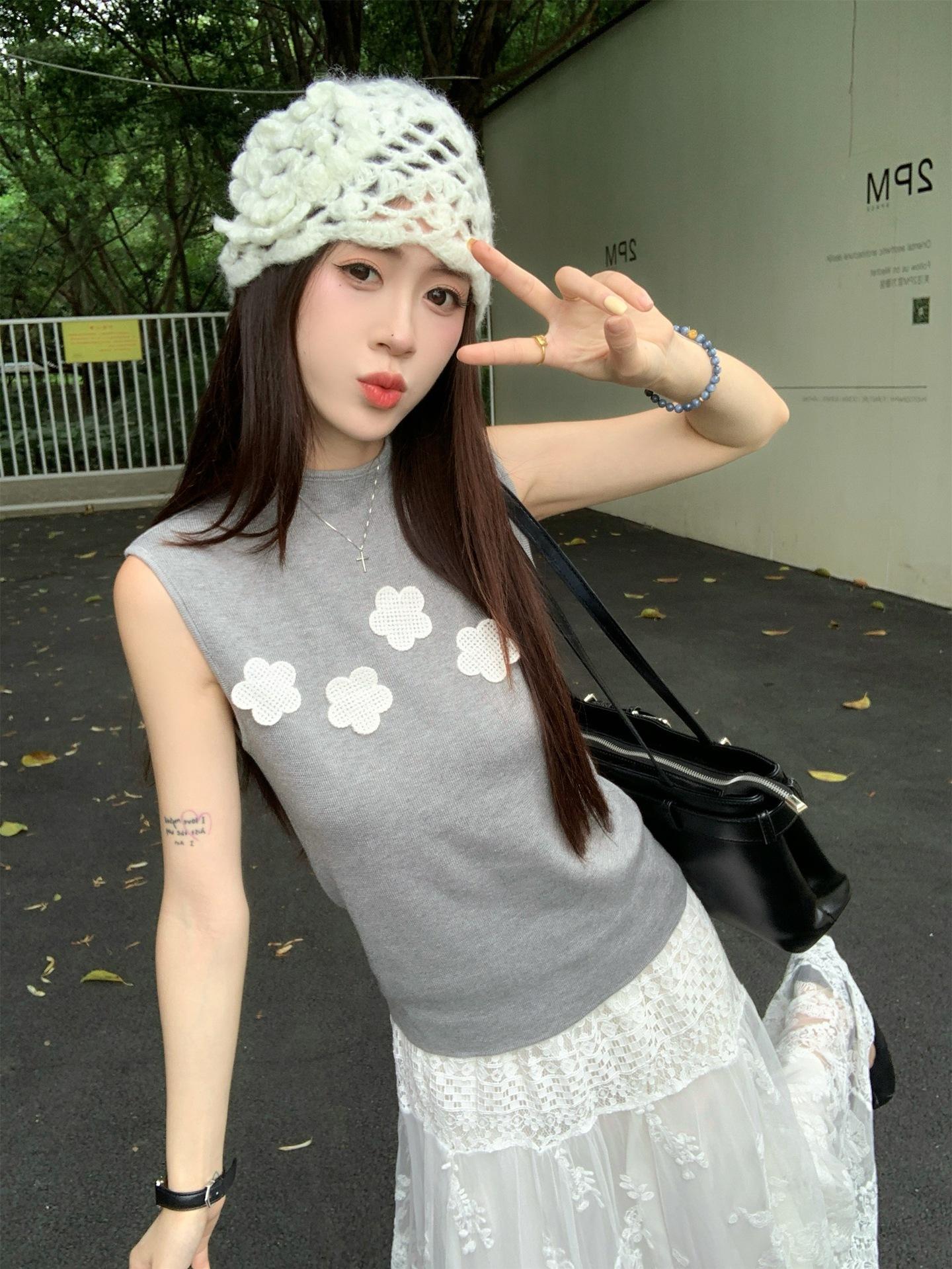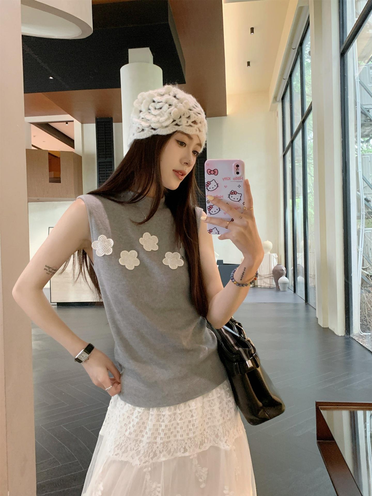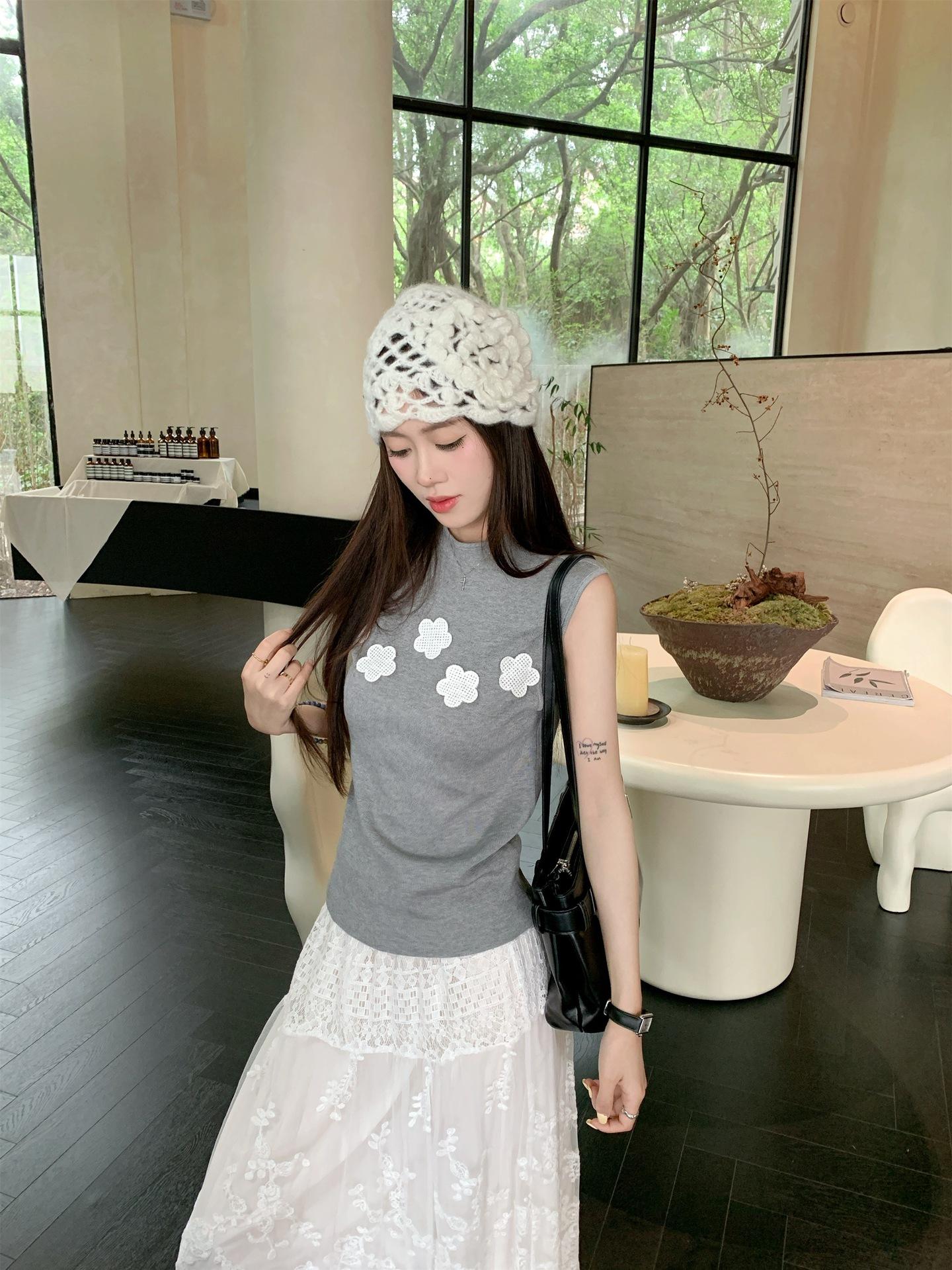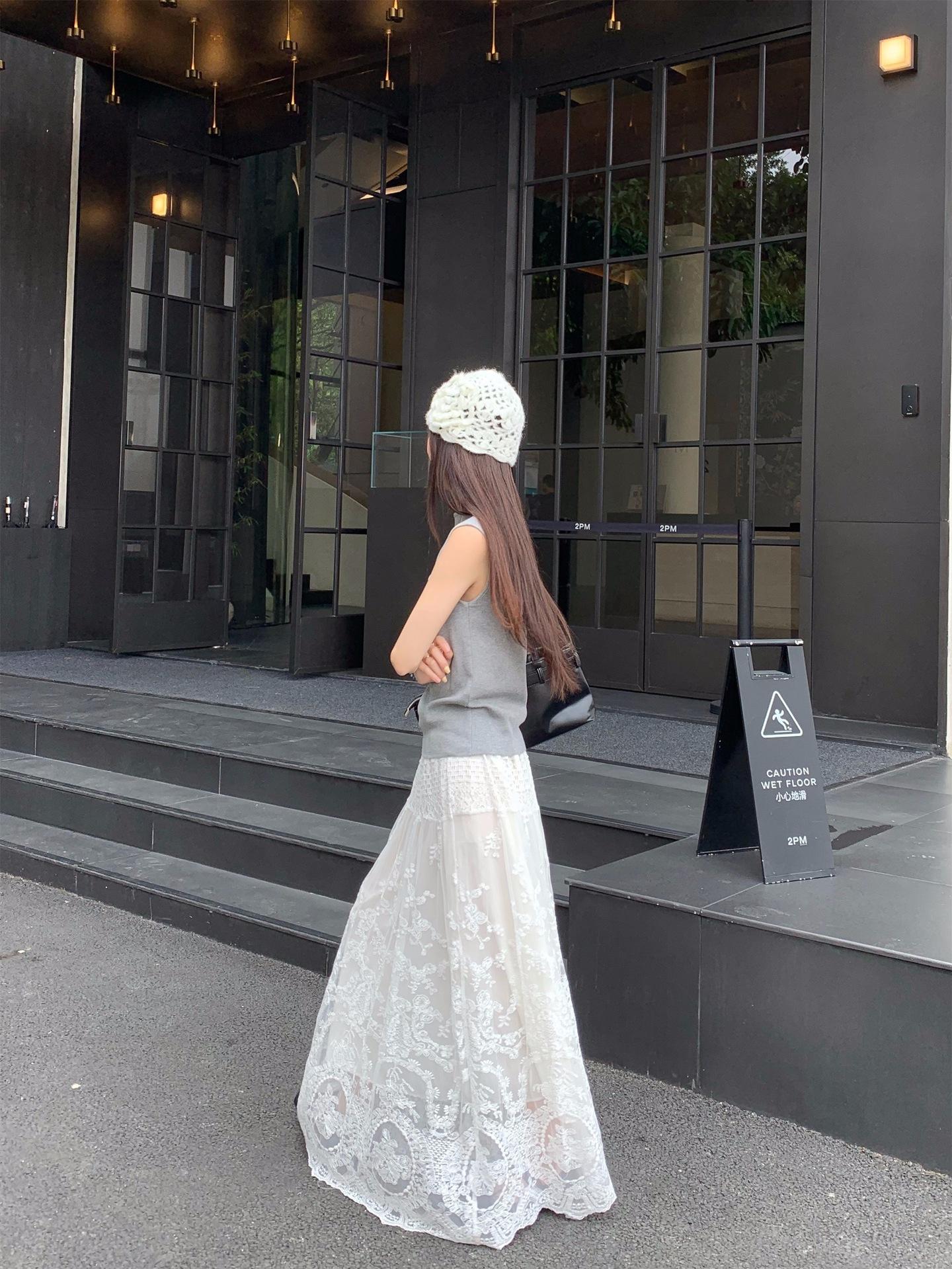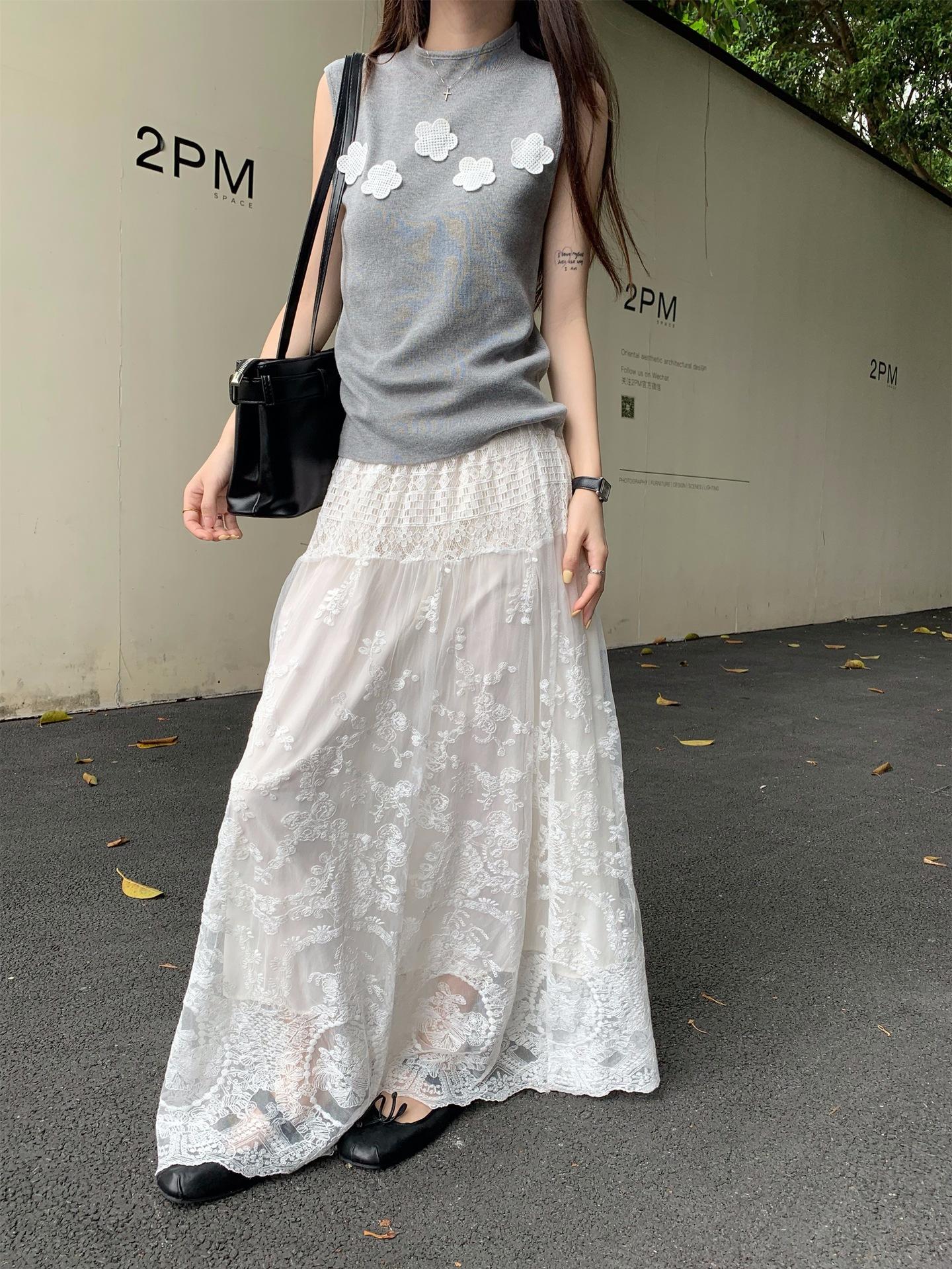 Diseño Coreano Top Chaleco Floral Falda Chic de Encaje Cintura Alta Nuevo Traje de Verano para Mujer 2025 Tendencia