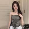 Camiseta sin mangas halter a rayas estilo coreano para mujer verano nueva top adelgazante con cintura plisada moda sentido de alta gama adelgazante