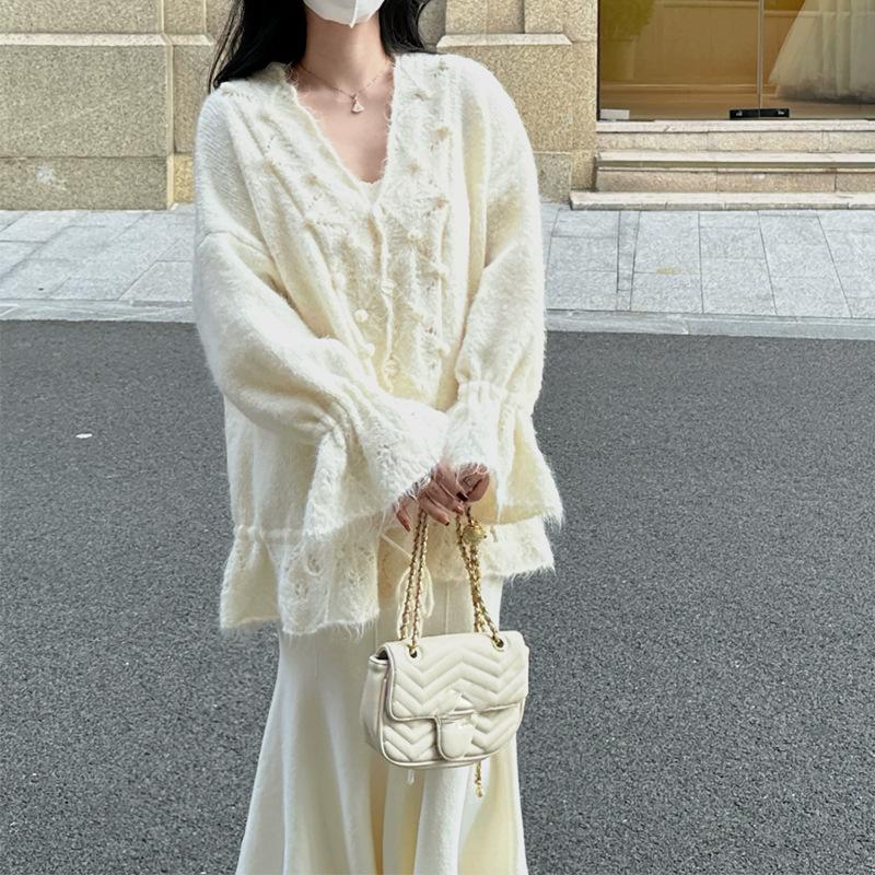 2025 Otoño/Invierno Nuevo Estilo Coreano Suéter Holgado Viento Perezoso Abrigo Cárdigan Tejido Nicho Suave y Delicado Ropa de Mujer