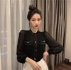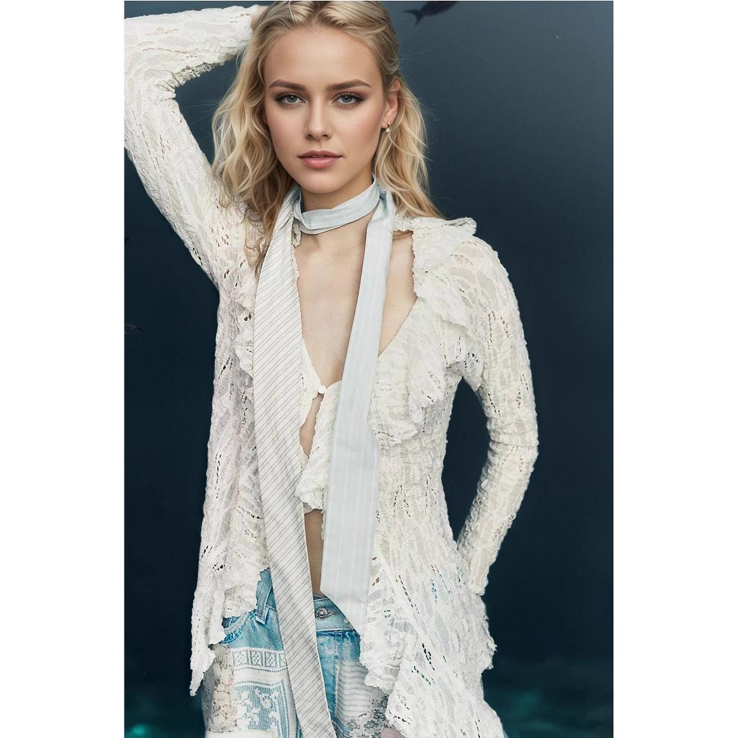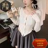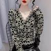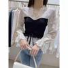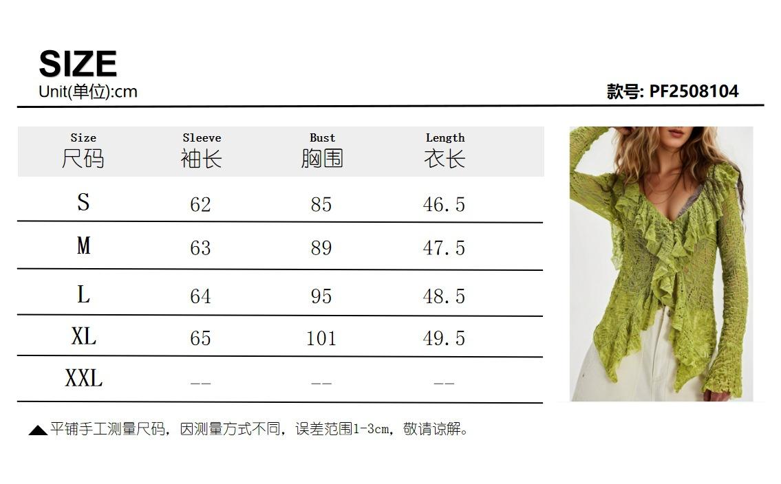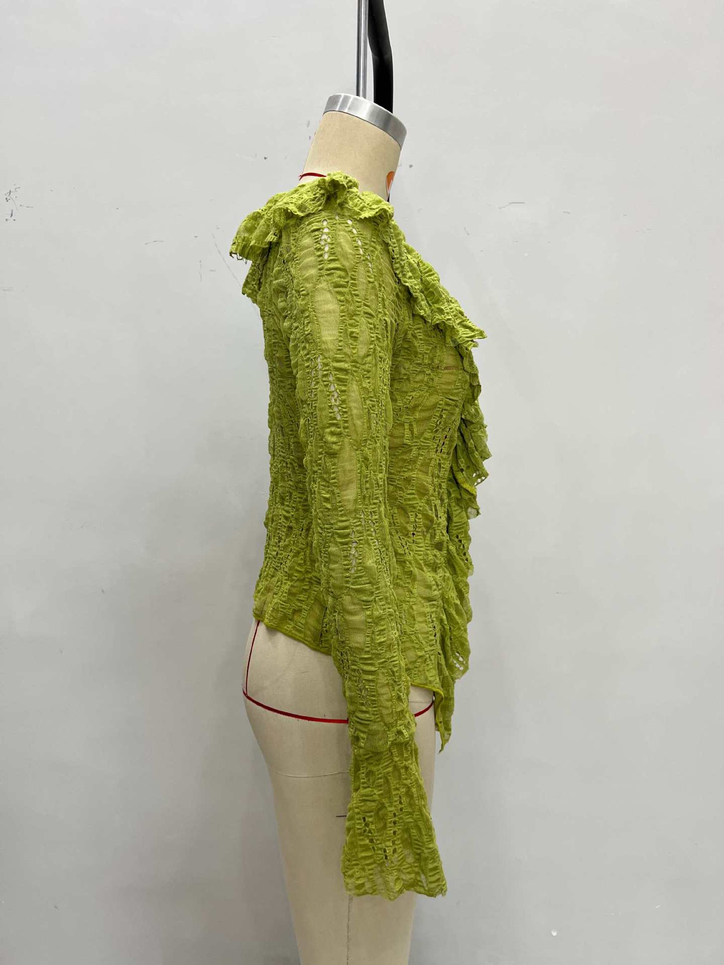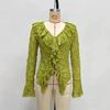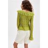 Exportación Transfronteriza Camisa de Encaje con Cuello en V para Mujer Otoño Nueva Moda Cárdigan con Volantes Manga Larga Top Corto de Punto