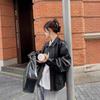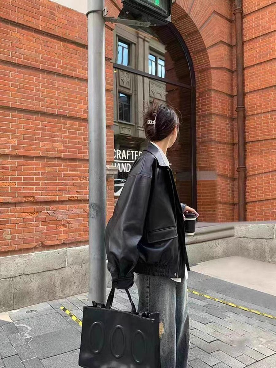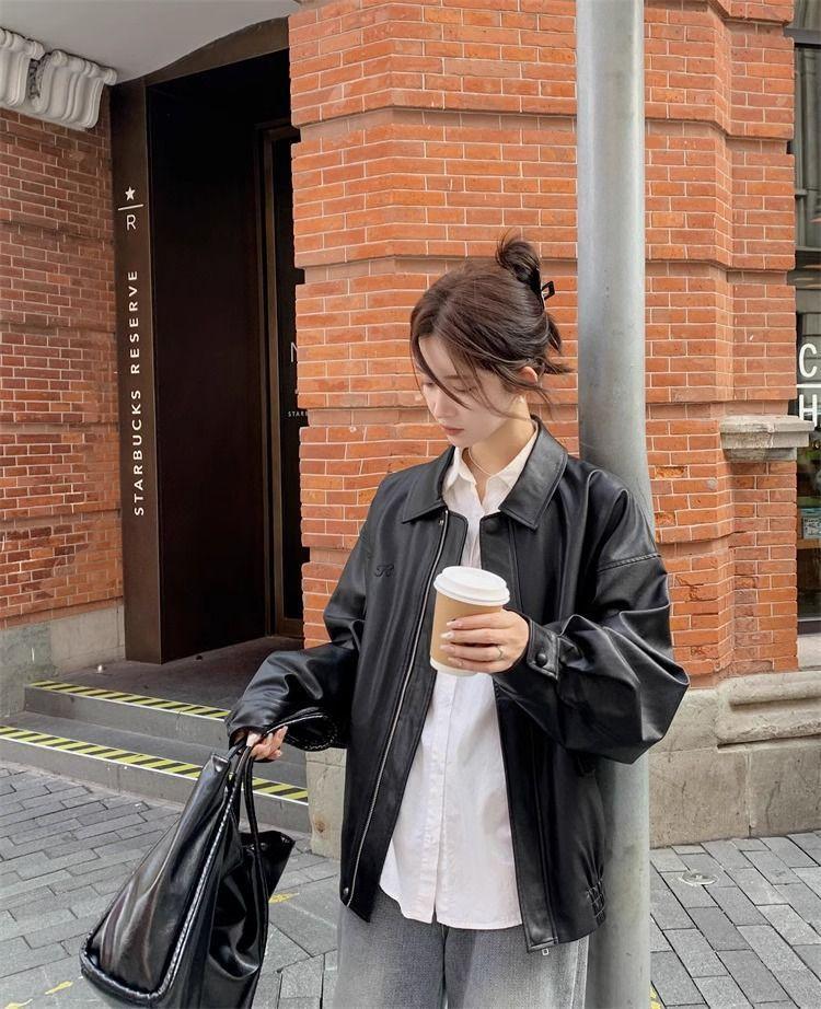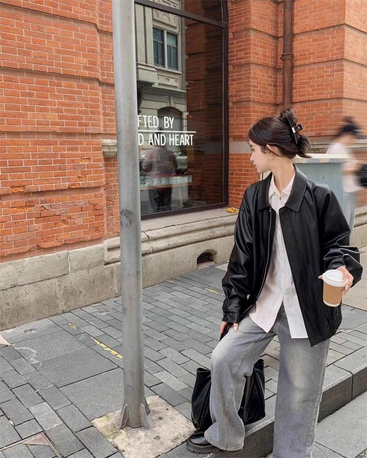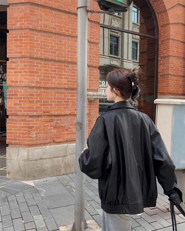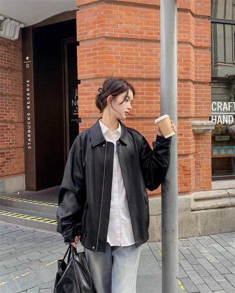 Chaqueta de Cuero para Mujer 2025 Primavera y Otoño Nuevo Estilo Popular Estilo Hong Kong Retro Petite de Alta Gama Chaqueta Biker