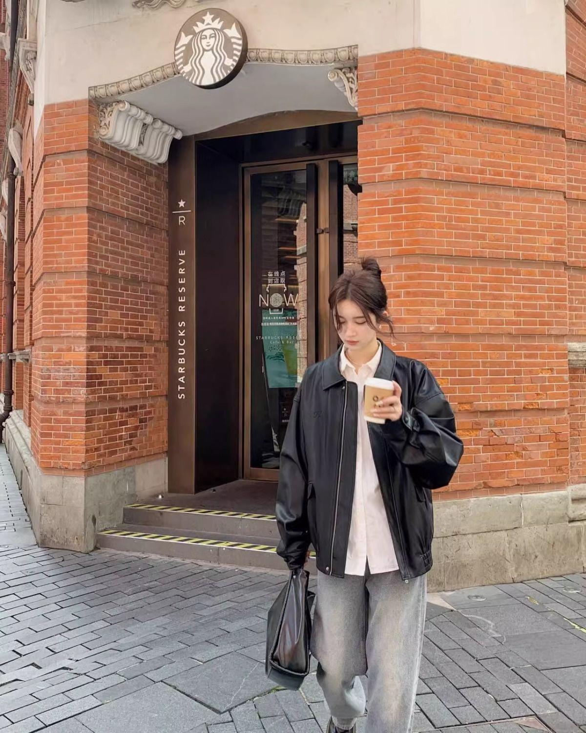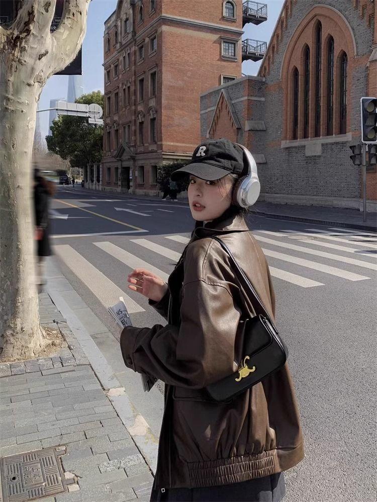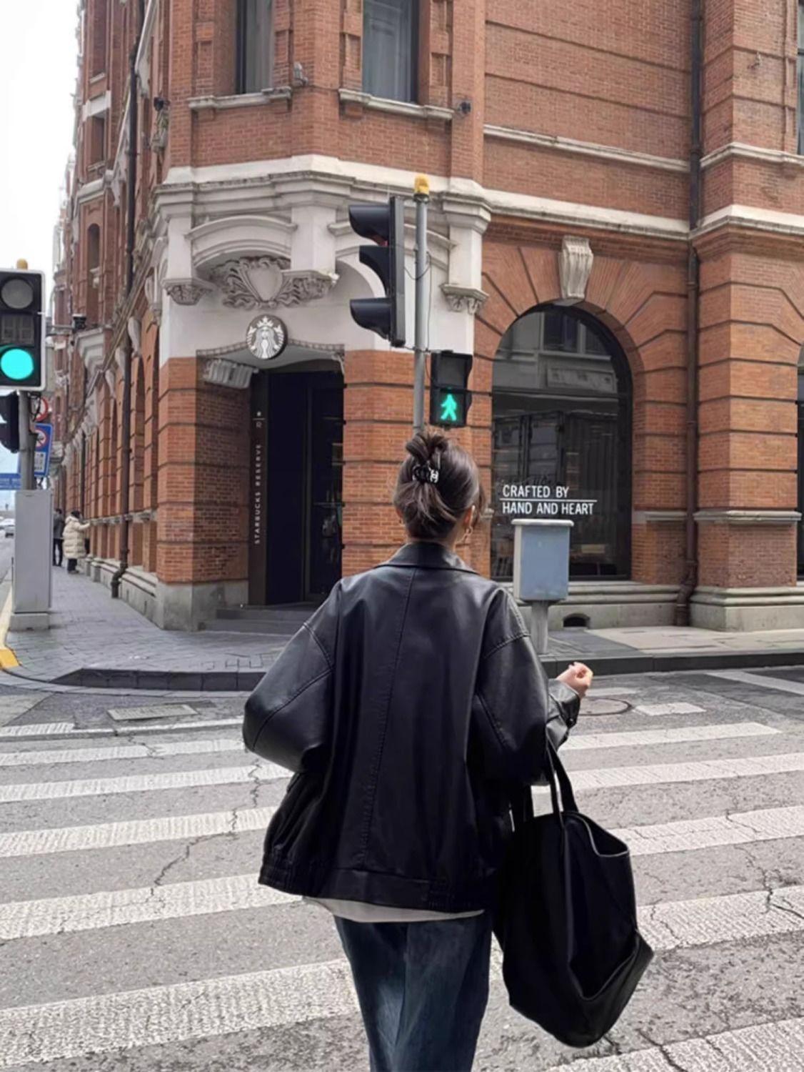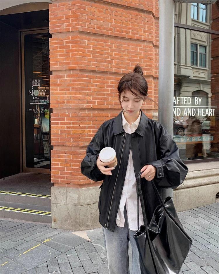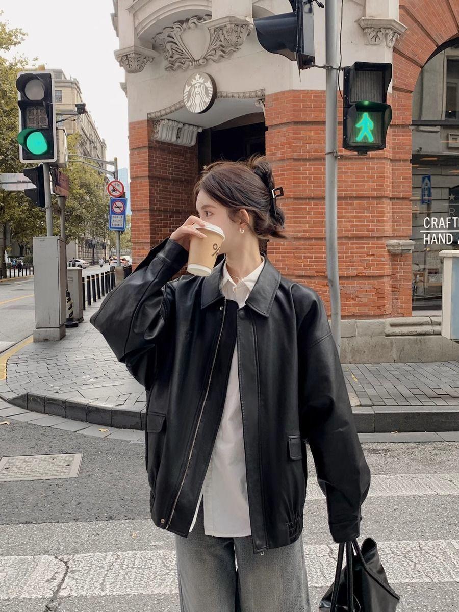 Chaqueta de Cuero para Mujer 2025 Primavera y Otoño Nuevo Estilo Popular Estilo Hong Kong Retro Petite de Alta Gama Chaqueta Biker