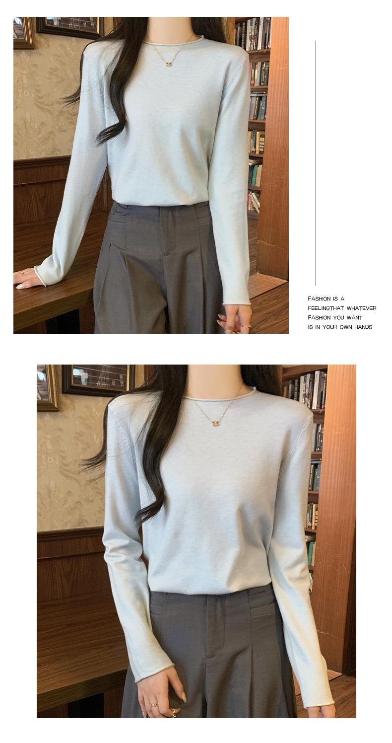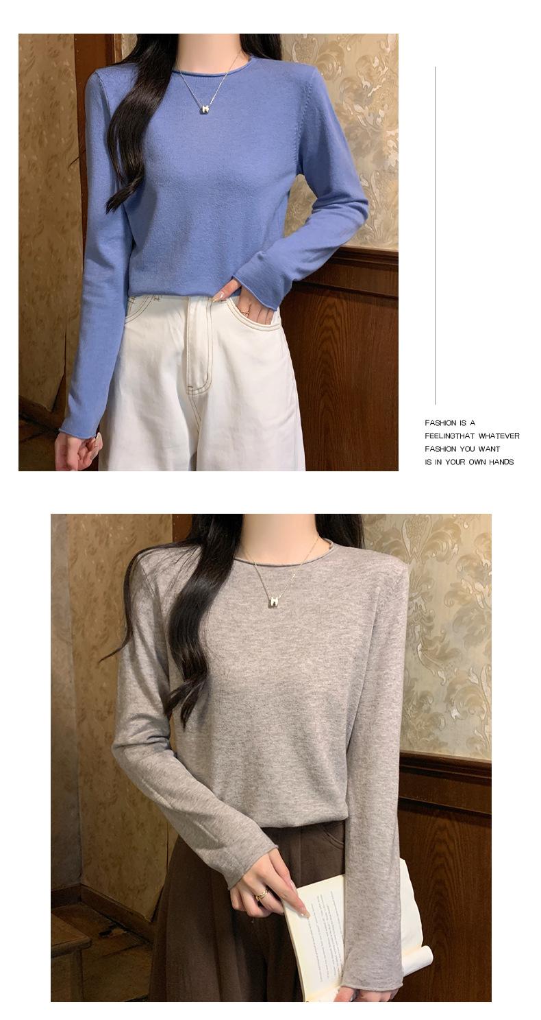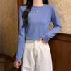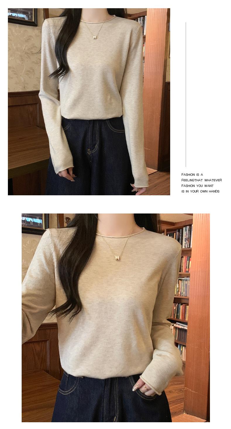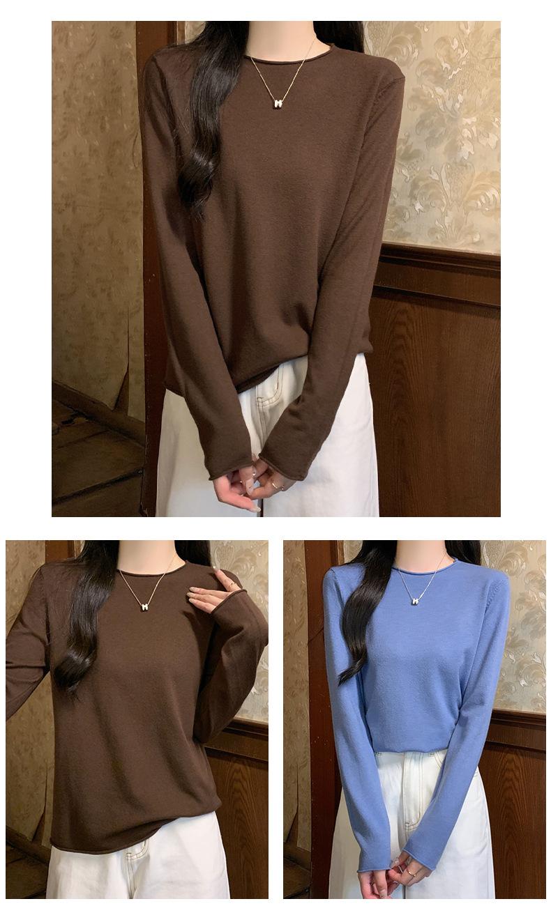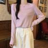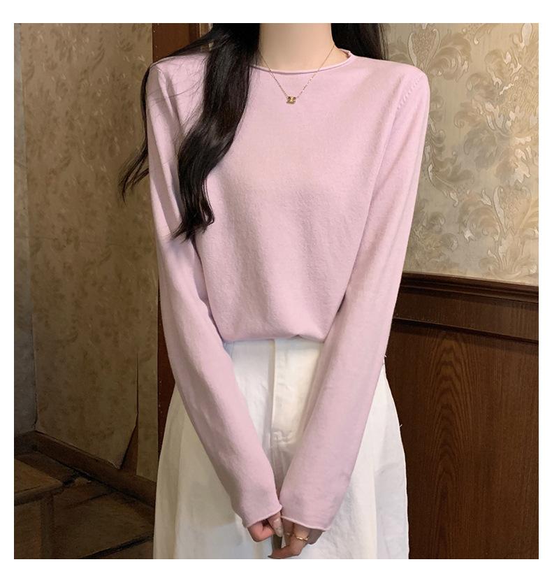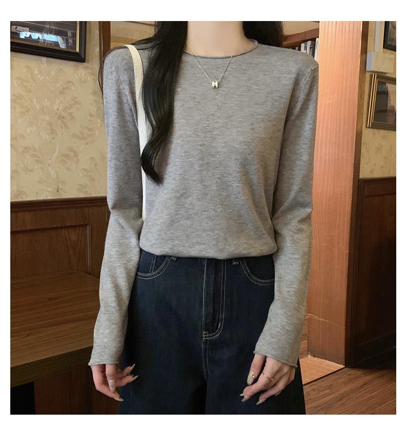 Top de Punto de Cuello Redondo con Dobladillo Enrollado para Primavera 2025 para Mujer, Suéter Casual Suave y Ceroso, Estilo Coreano Reductor de Edad, Camiseta Interior para Capas