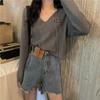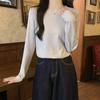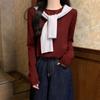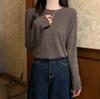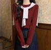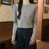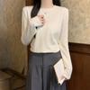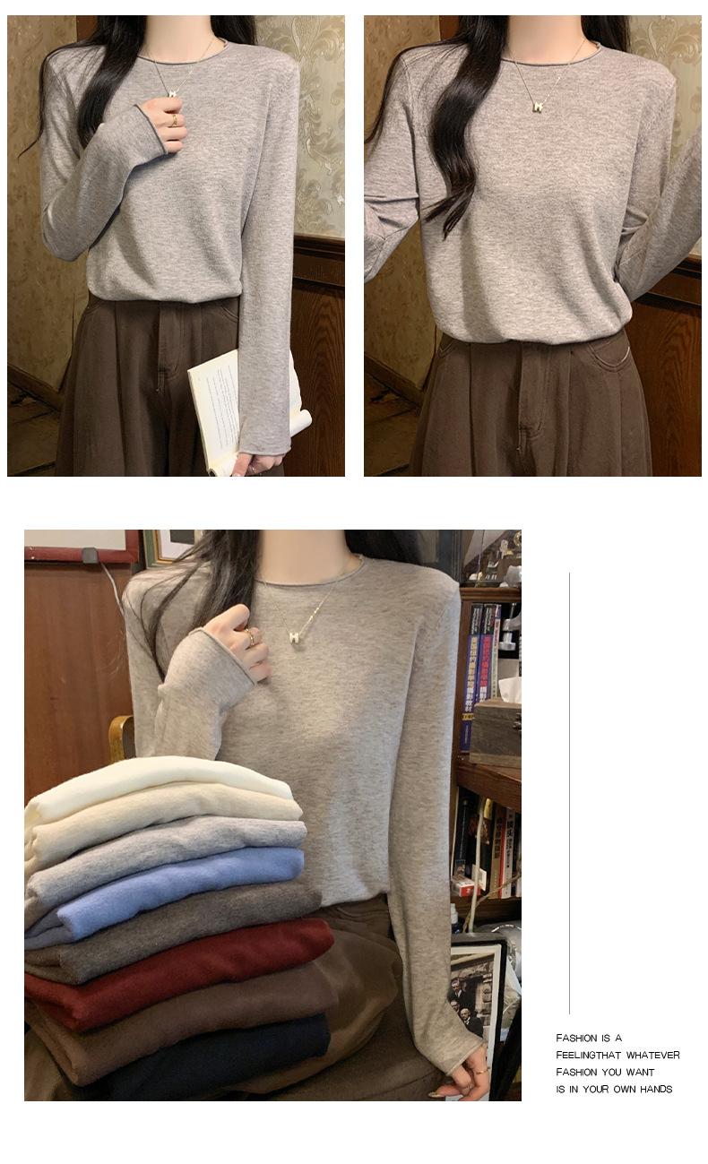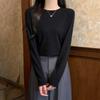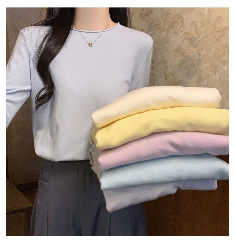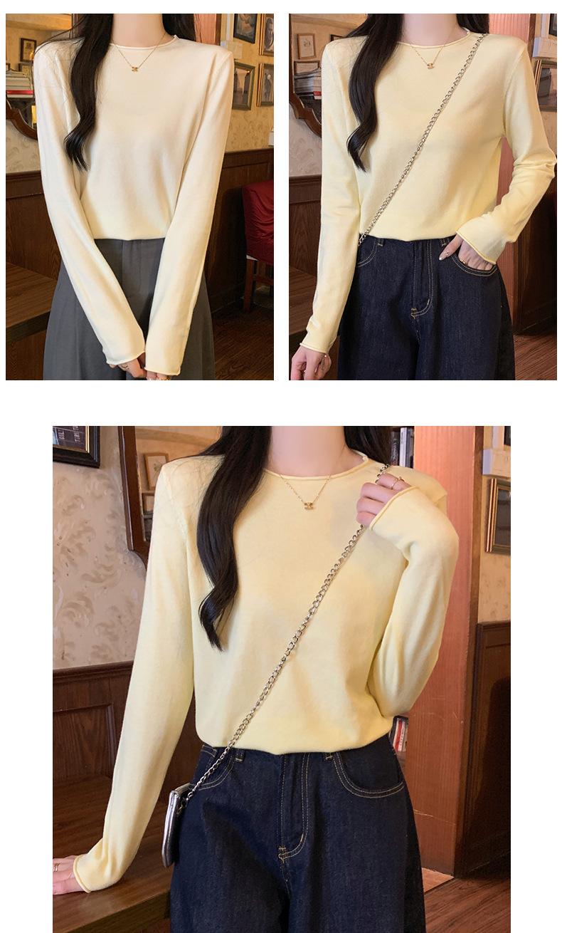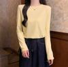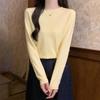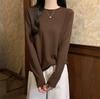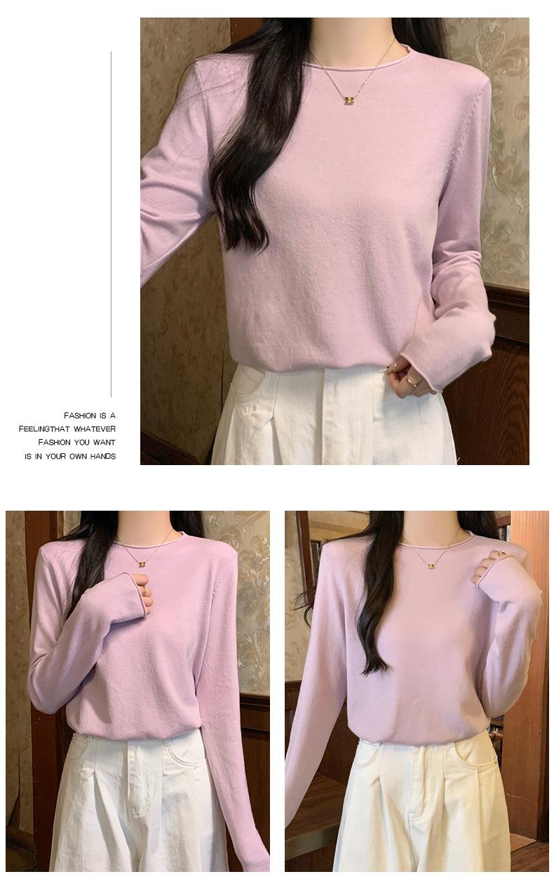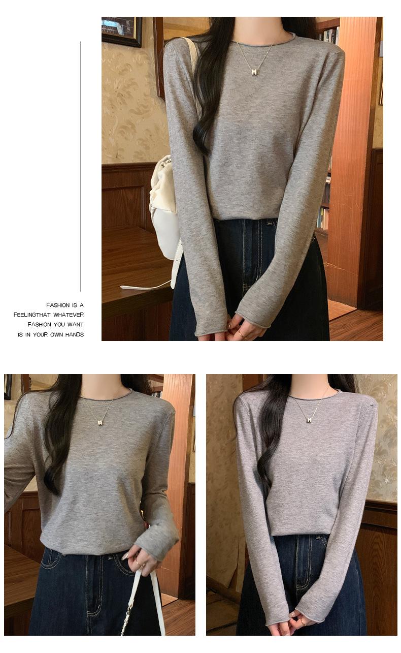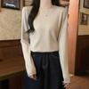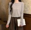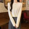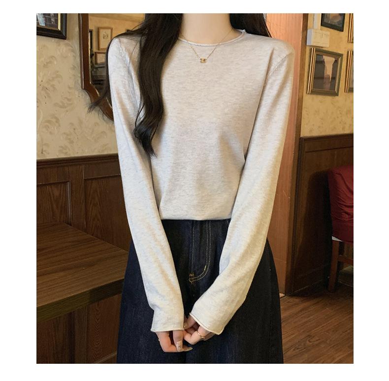 Top de Punto de Cuello Redondo con Dobladillo Enrollado para Primavera 2025 para Mujer, Suéter Casual Suave y Ceroso, Estilo Coreano Reductor de Edad, Camiseta Interior para Capas