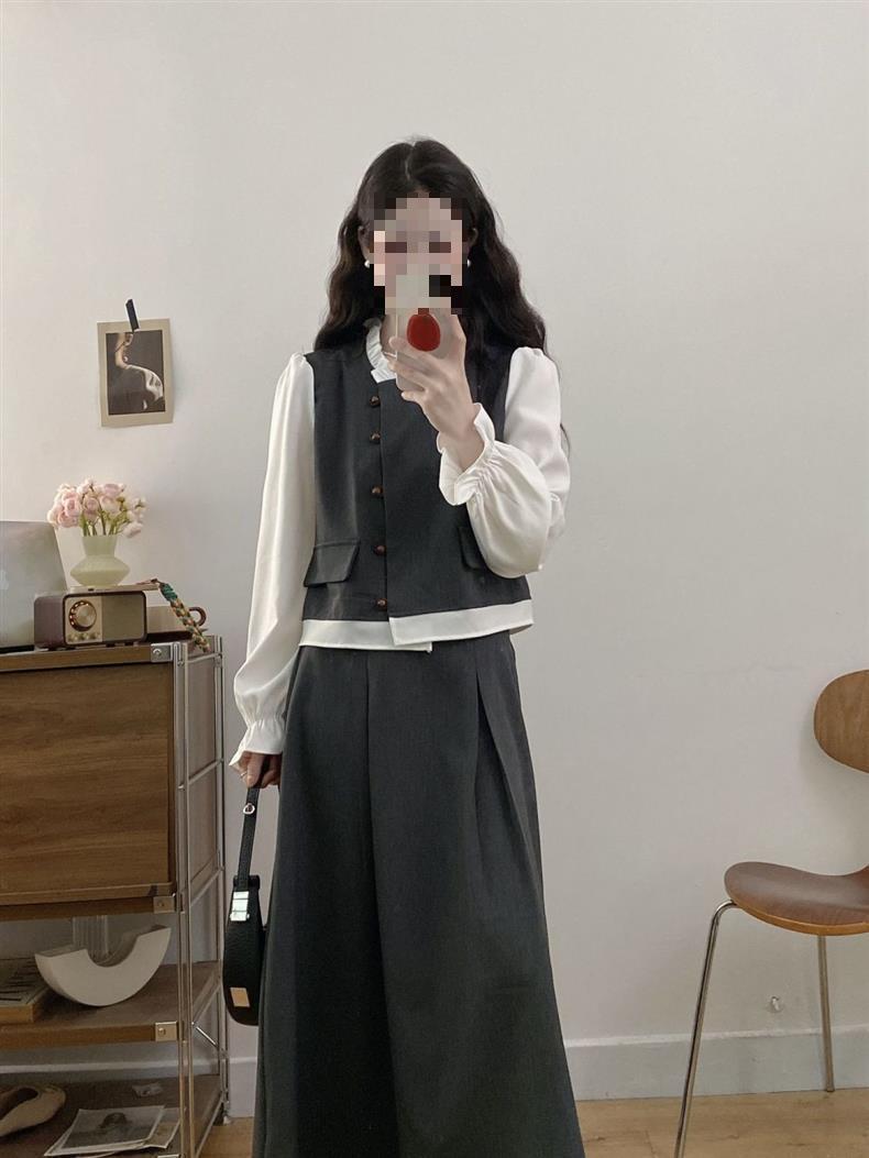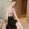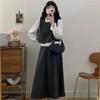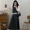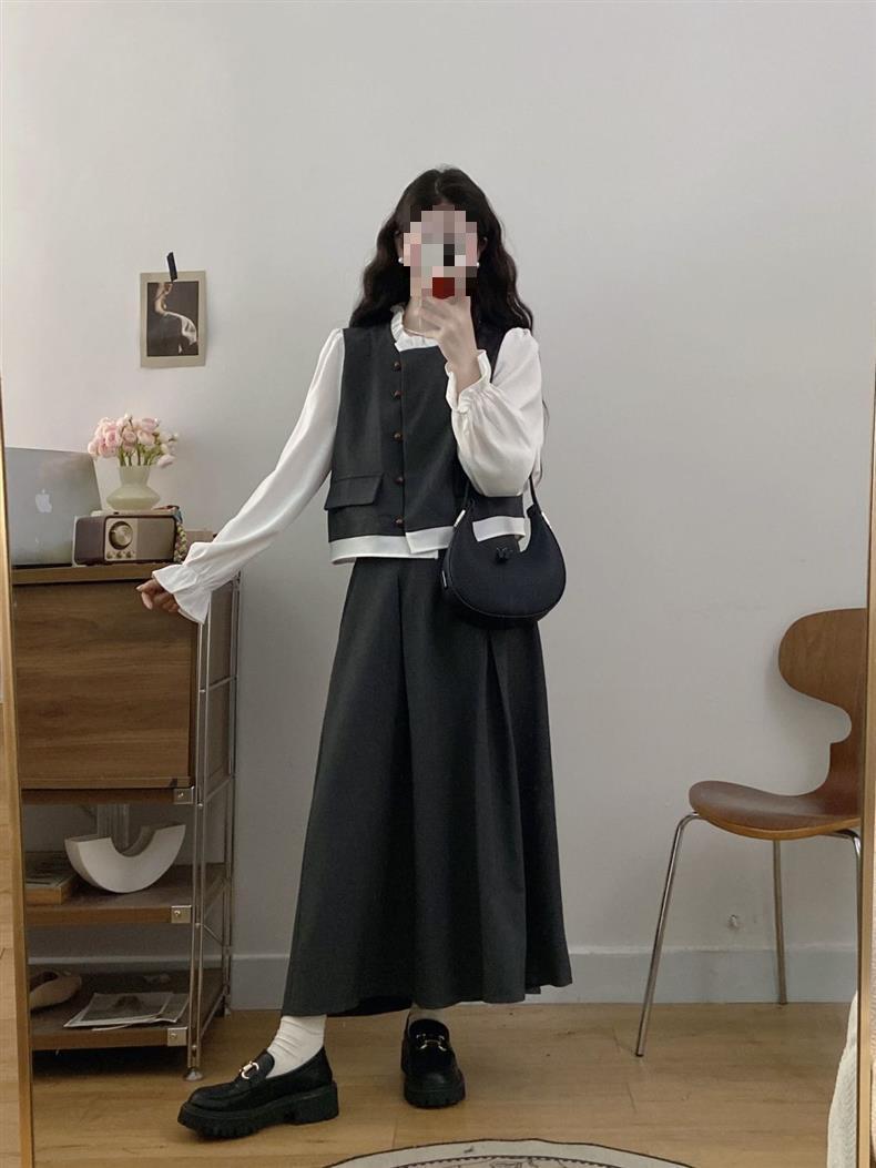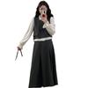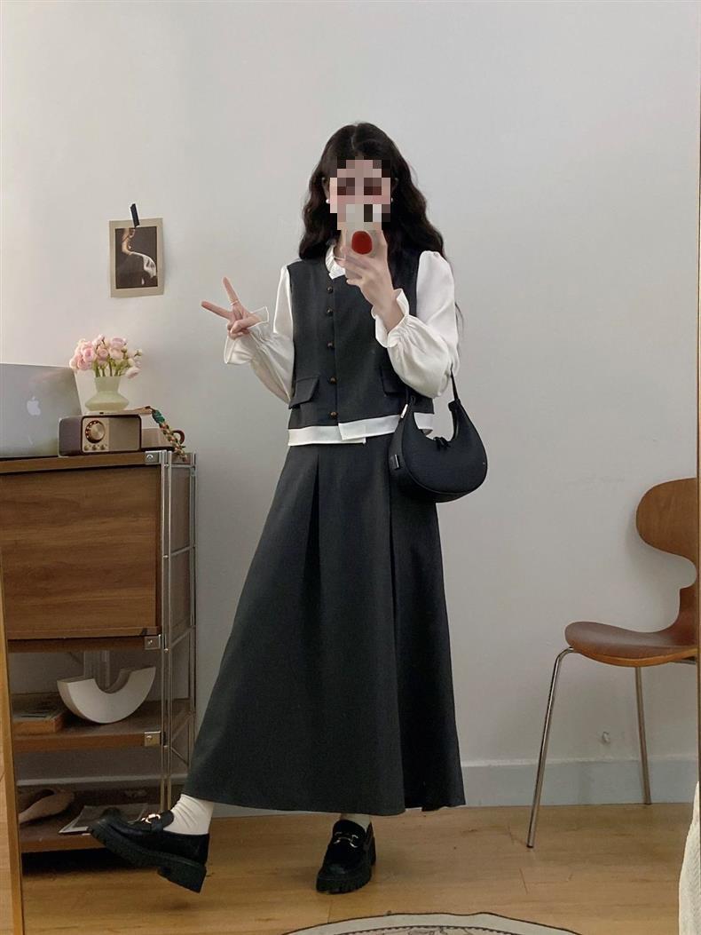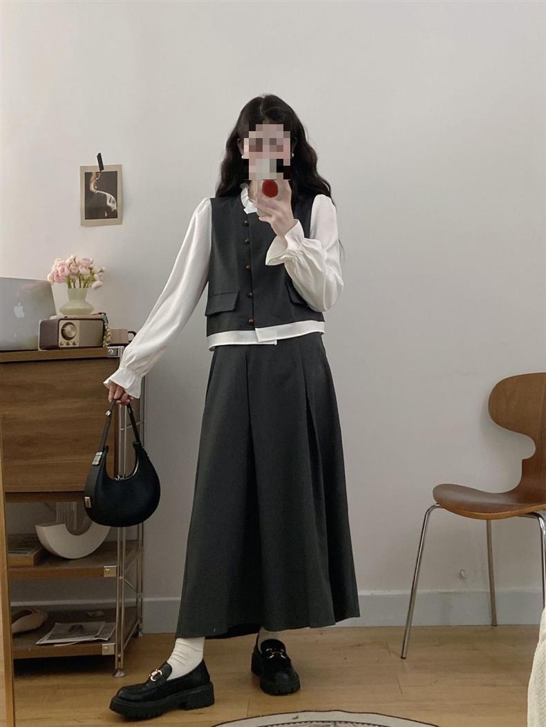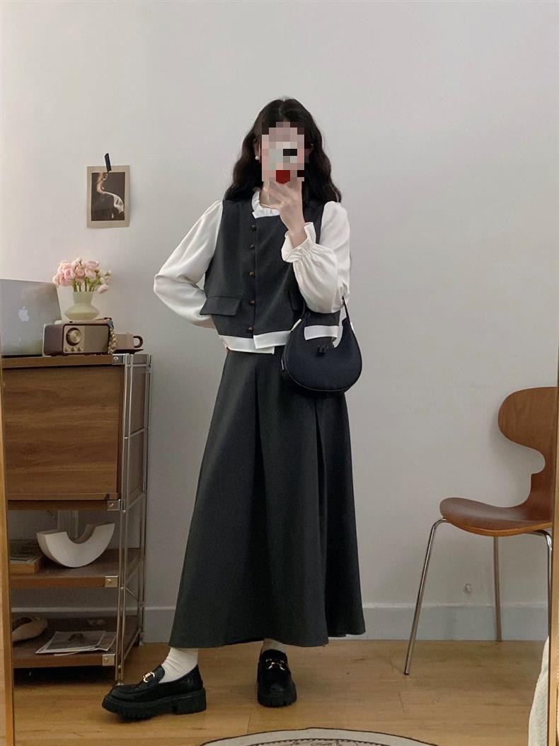 Conjunto Estilo Coreano Bloque de Color Primavera Talla Grande para Mujer Falda Media Nuevo Temperamento Top Ropa de Mujer mm Gordo Diseño Retro