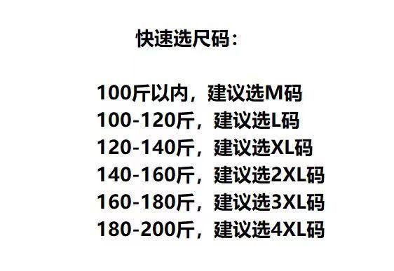 M100 jin or less, L105-120 catties, XL120-140 catties, 2XL140-160 catties, 3XL160-180 catties, 4XL180-200 catties