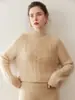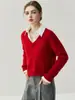 Suéter de Cachemira para Mujer Nuevo Otoño/Invierno Cuello en V Tejido de Cables Completo Tejido Holgado Ropa de Punto Cómodo Manga Larga Jersey Color Sólido Clásico