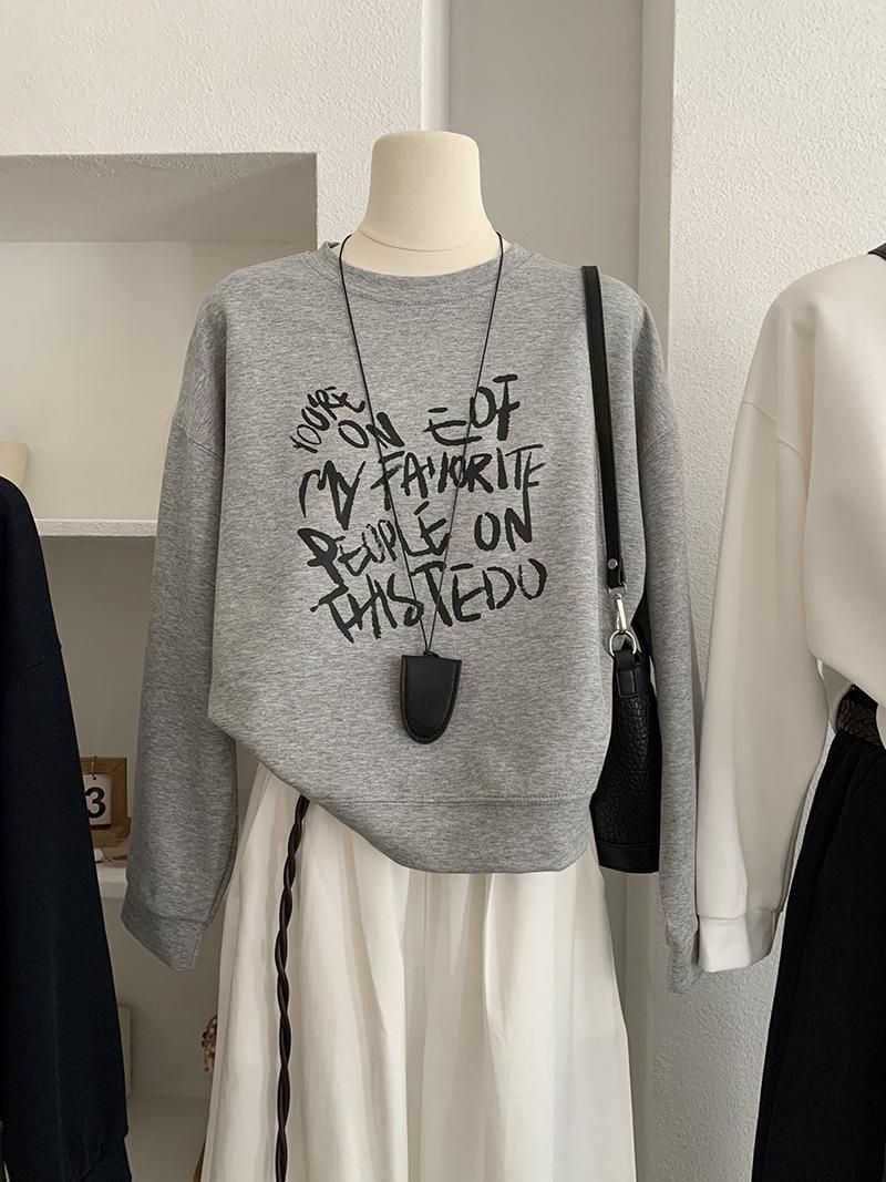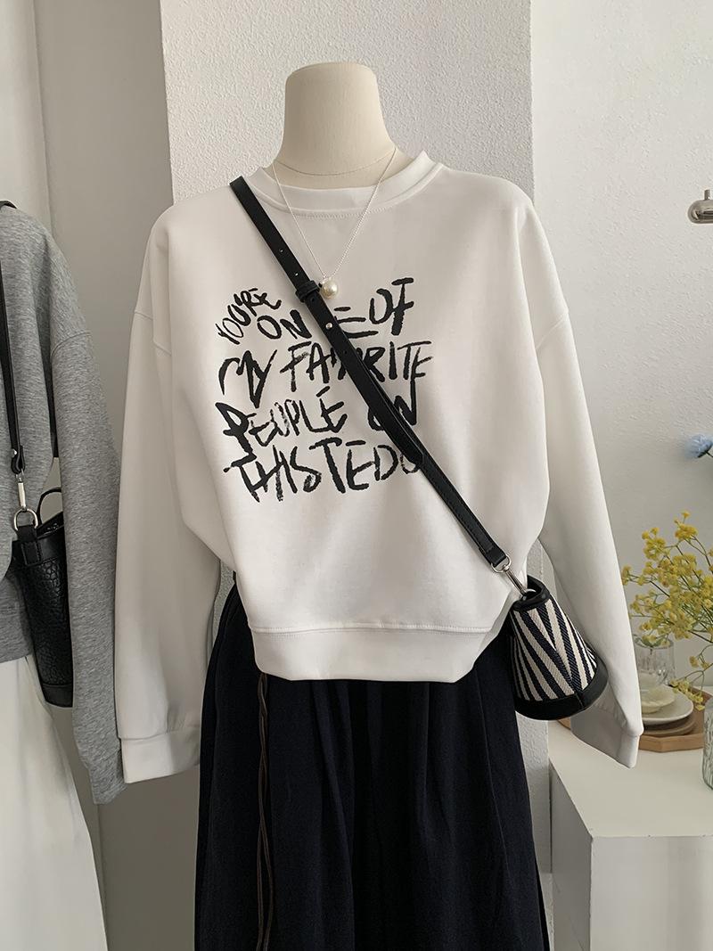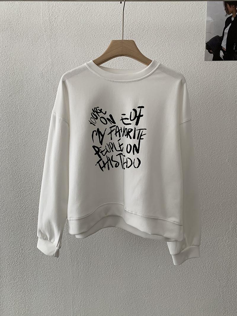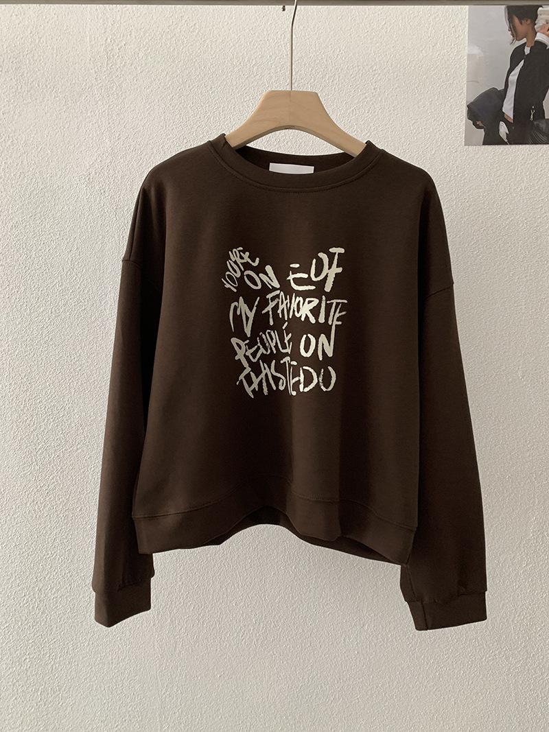 Oumaile Sudadera de Manga Larga Estilo Coreano Casual Versátil con Estampado de Letras para Mujer Otoño Nuevo Top Versátil Tendencia 4598