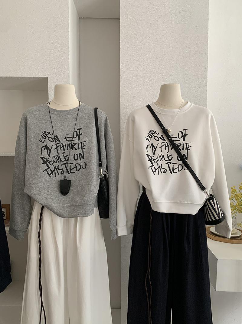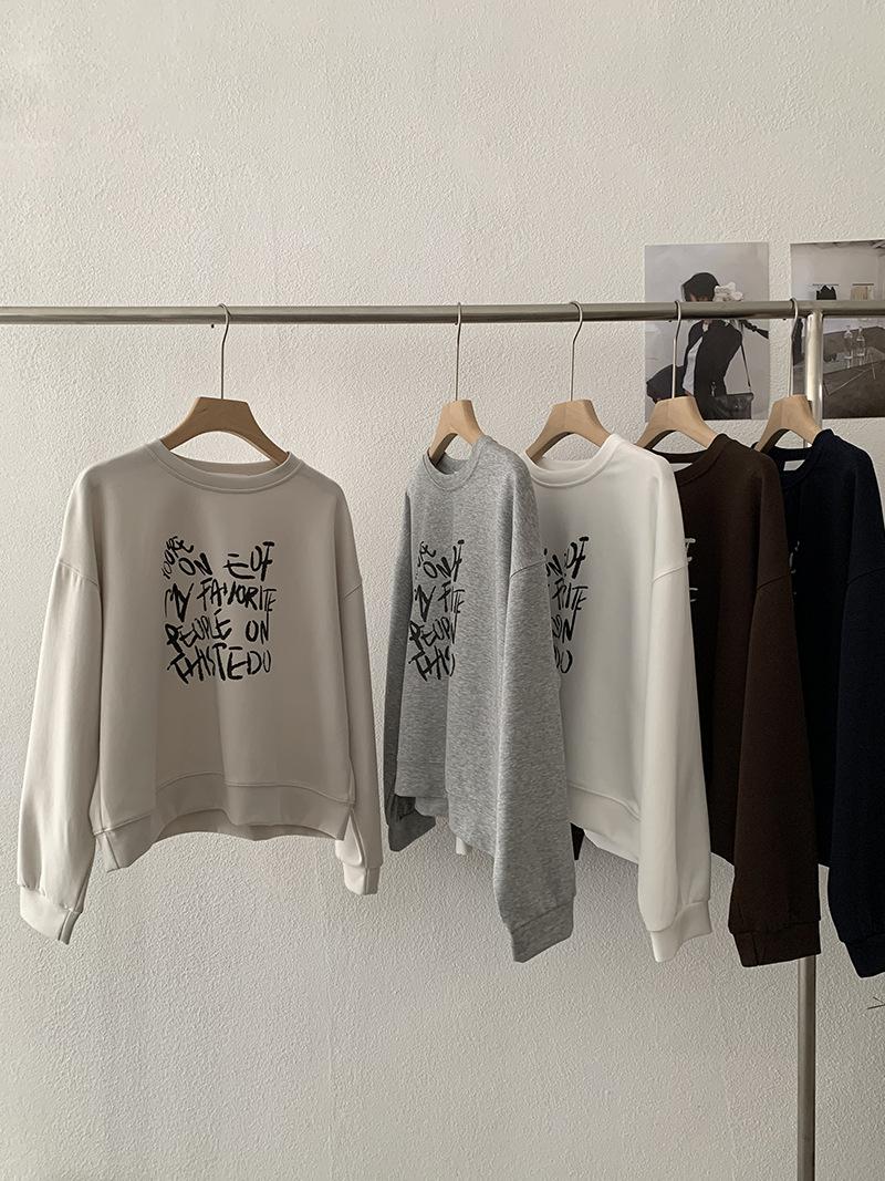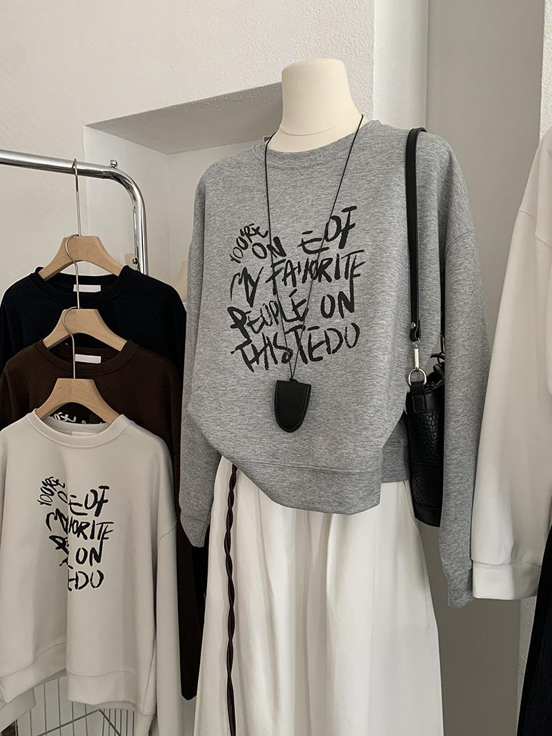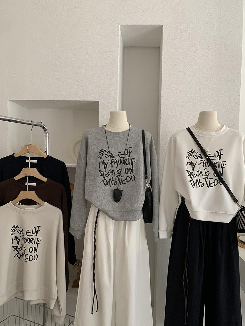 Oumaile Sudadera de Manga Larga Estilo Coreano Casual Versátil con Estampado de Letras para Mujer Otoño Nuevo Top Versátil Tendencia 4598
