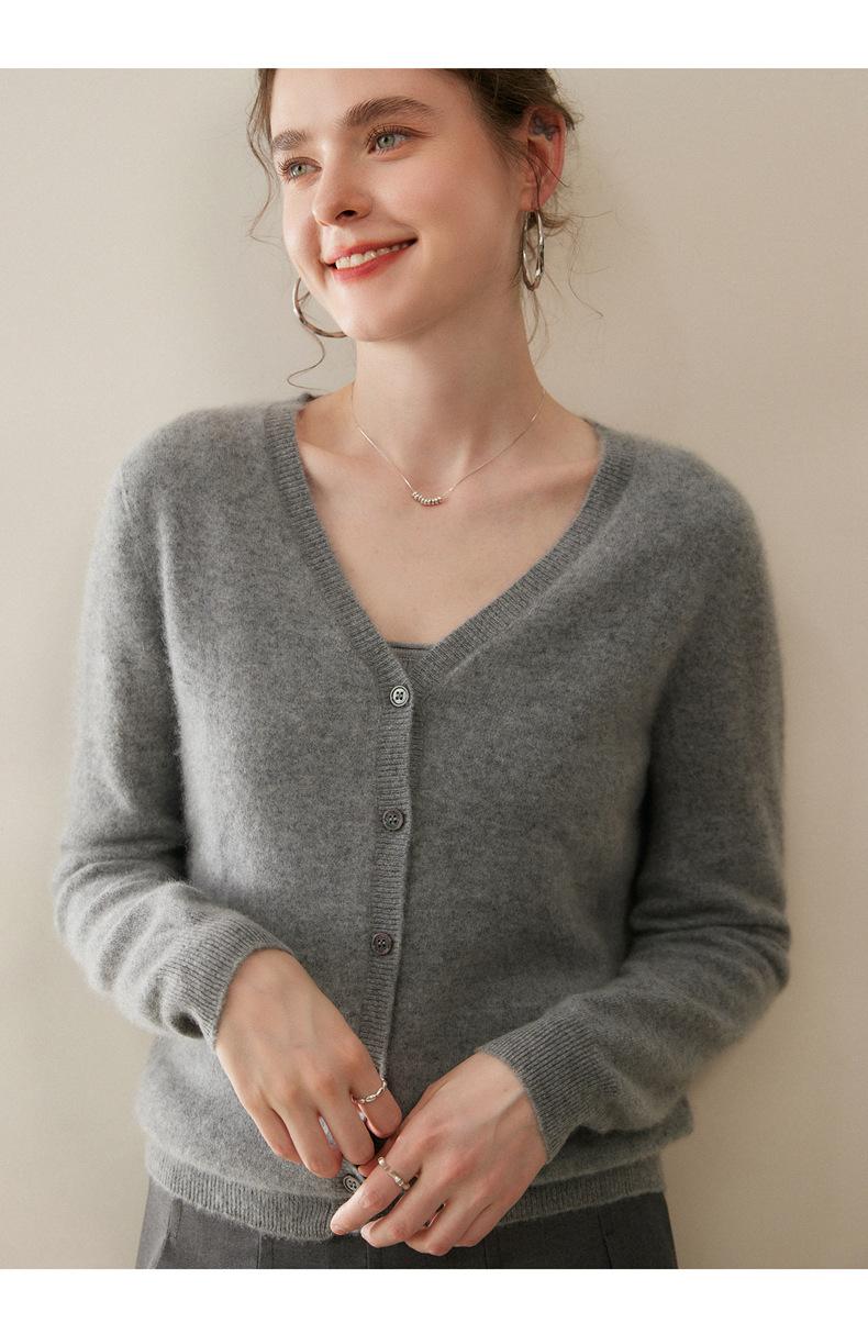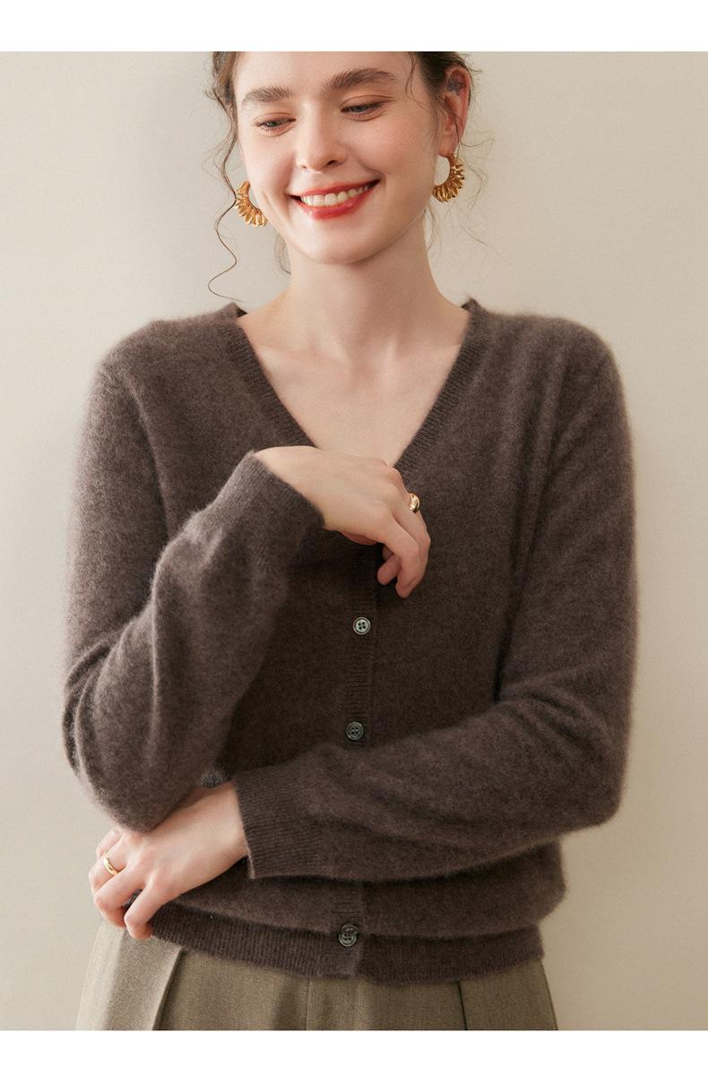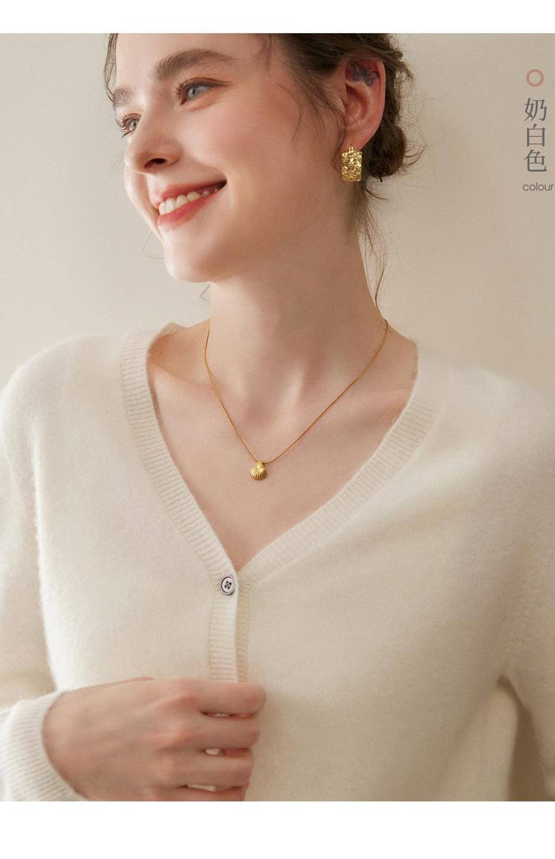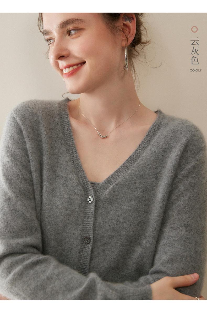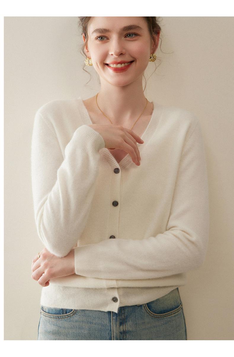 Cárdigan de Punto de Cachemira para Mujer Otoño/Invierno 2025 Nuevo Manga Larga Suelto Versátil Cuello en V Un Botón Top Prenda Exterior
