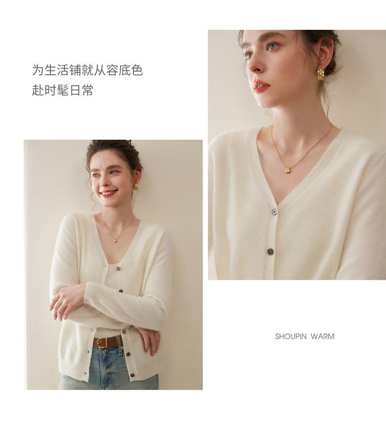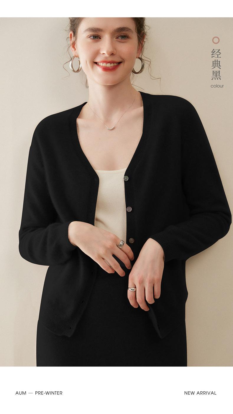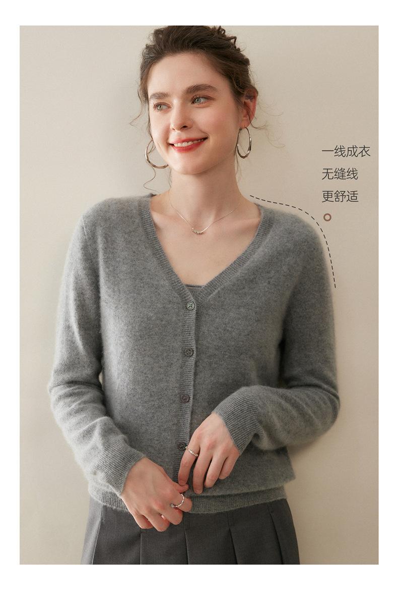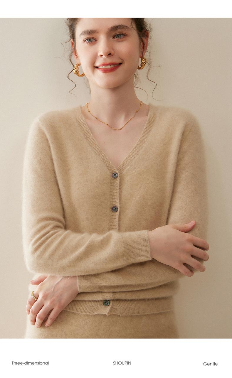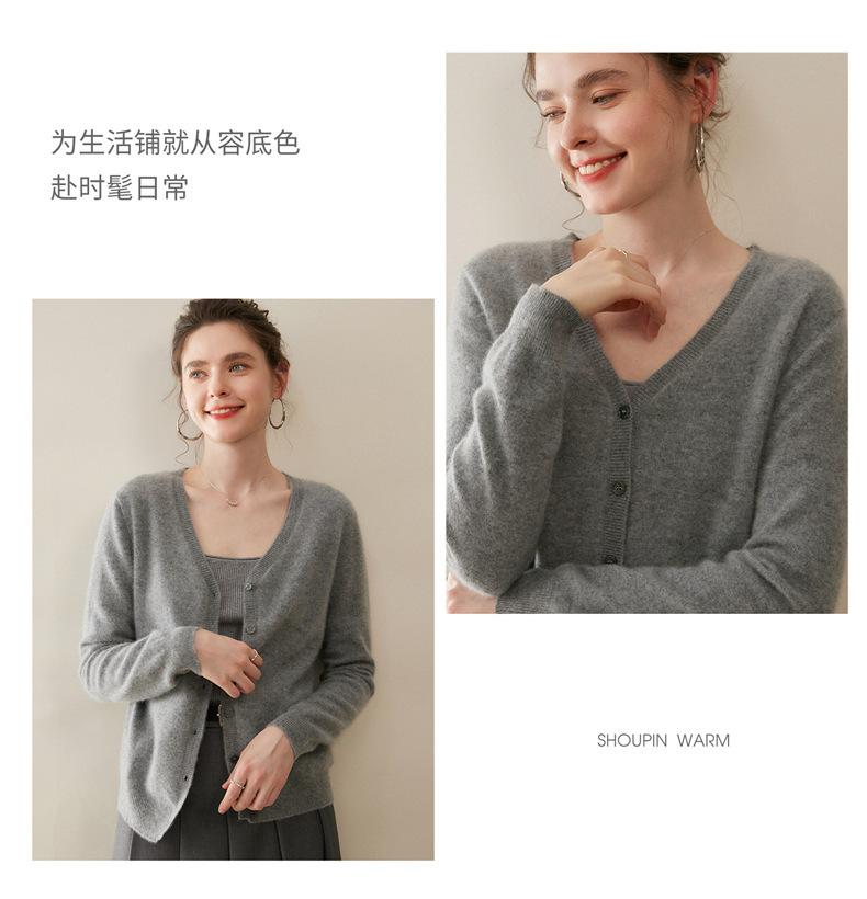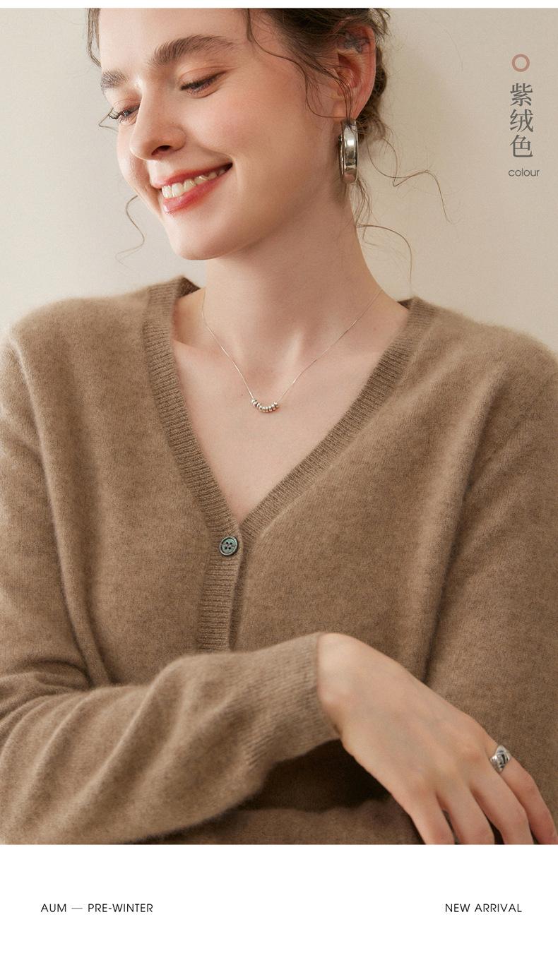 Cárdigan de Punto de Cachemira para Mujer Otoño/Invierno 2025 Nuevo Manga Larga Suelto Versátil Cuello en V Un Botón Top Prenda Exterior