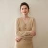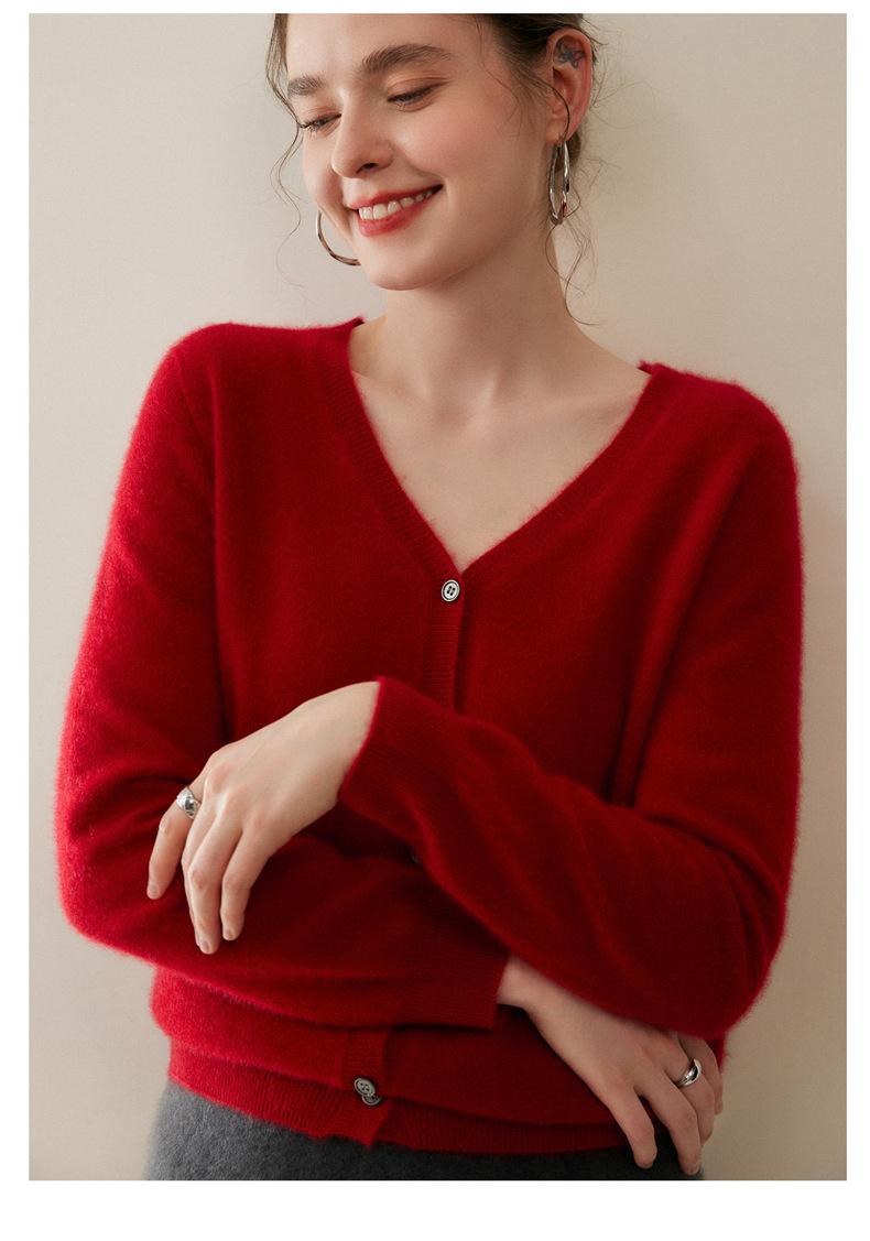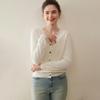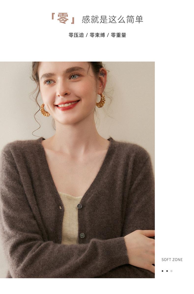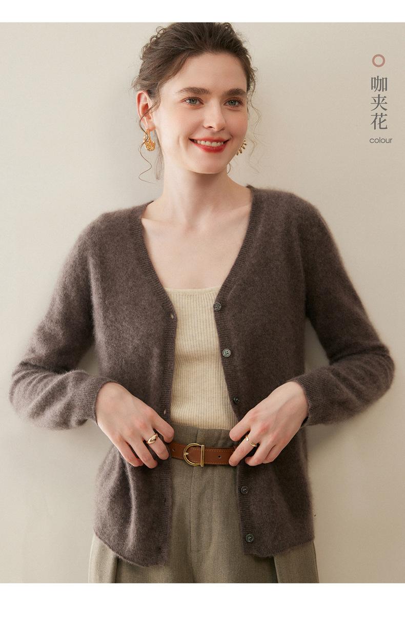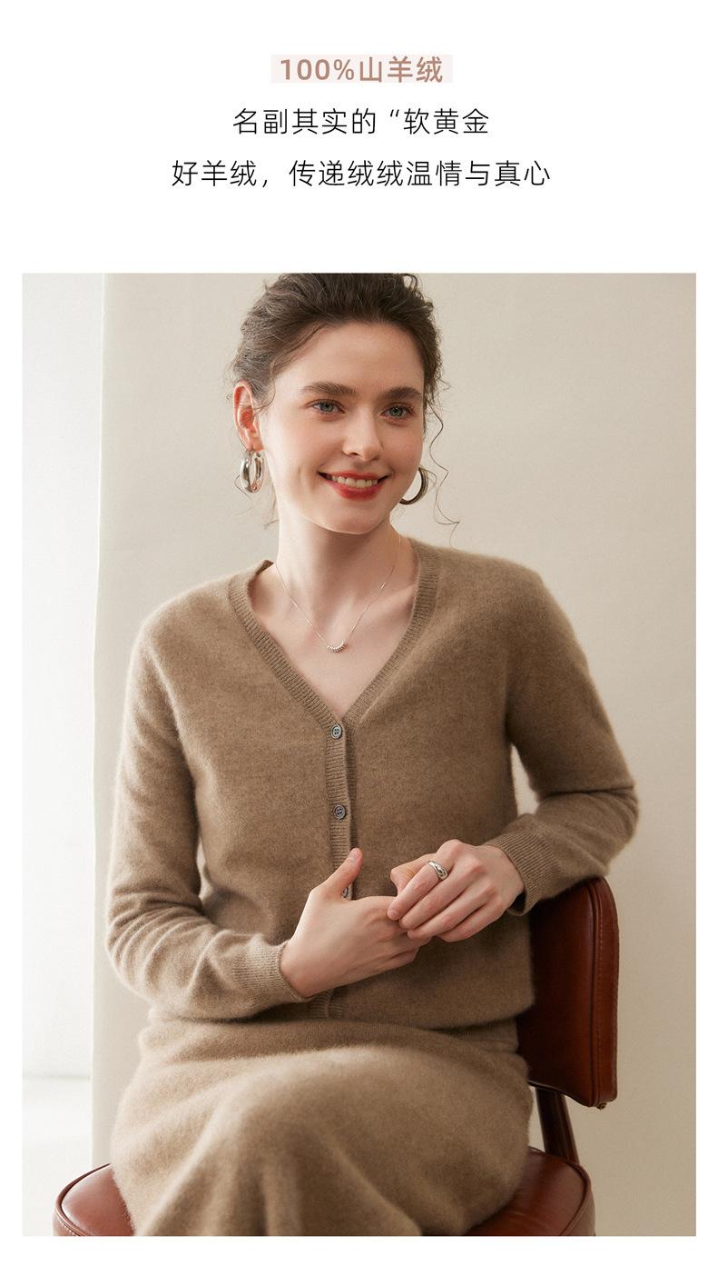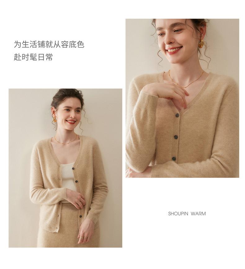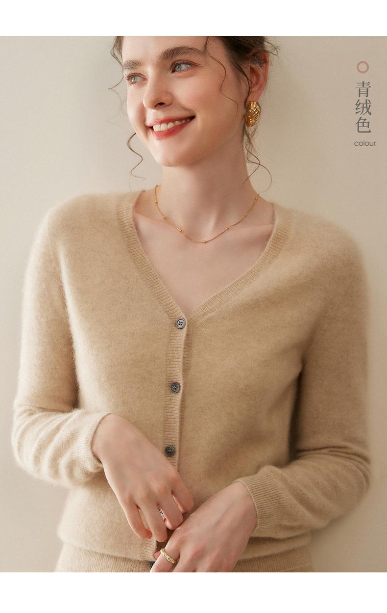 Cárdigan de Punto de Cachemira para Mujer Otoño/Invierno 2025 Nuevo Manga Larga Suelto Versátil Cuello en V Un Botón Top Prenda Exterior