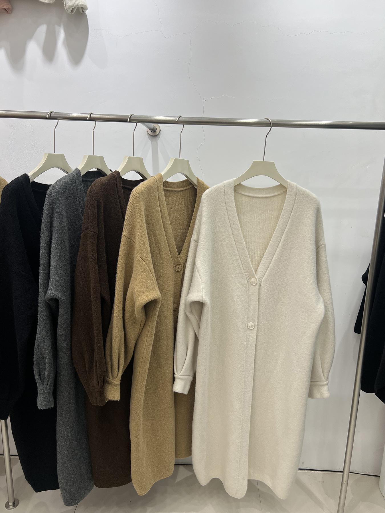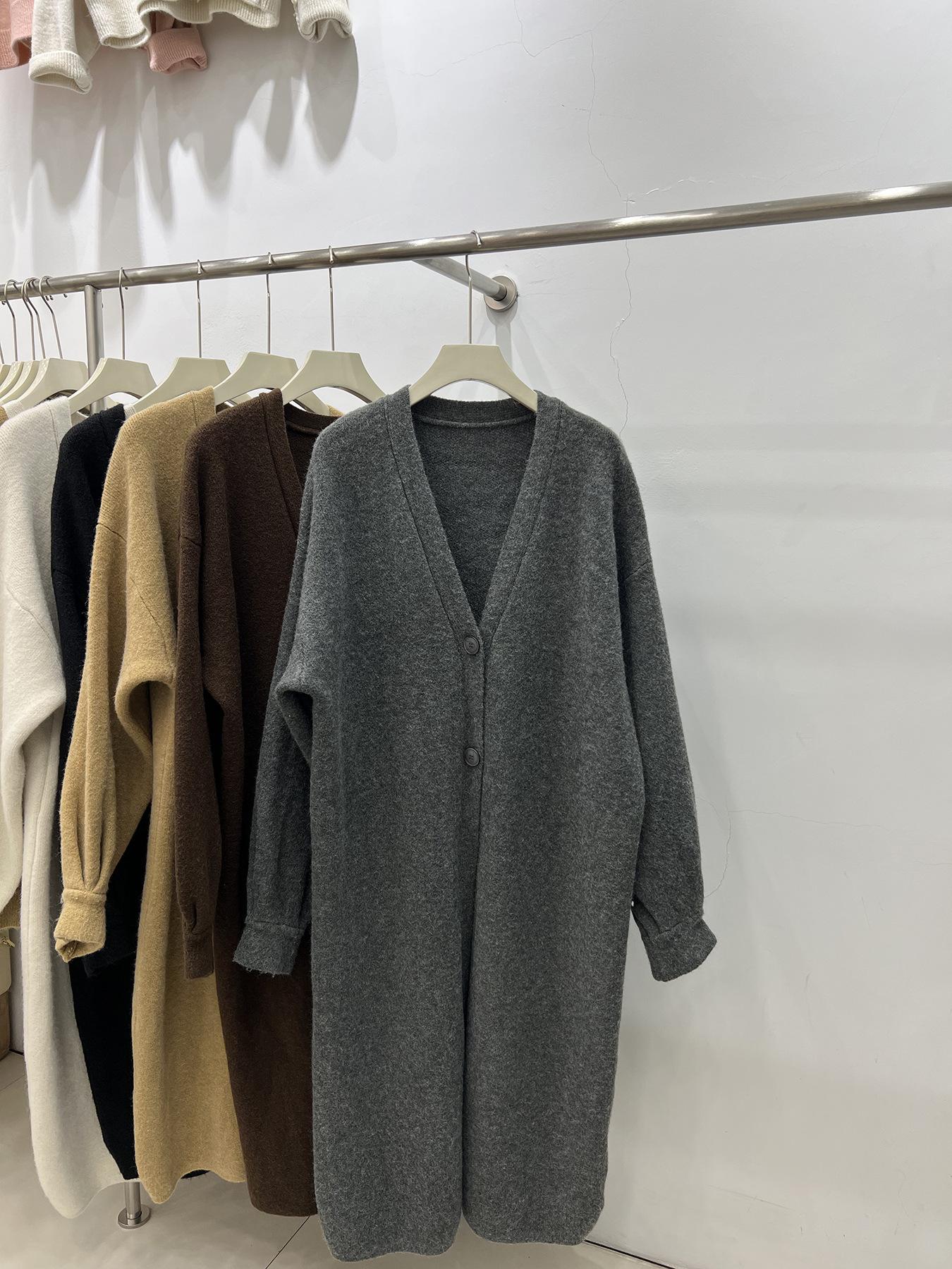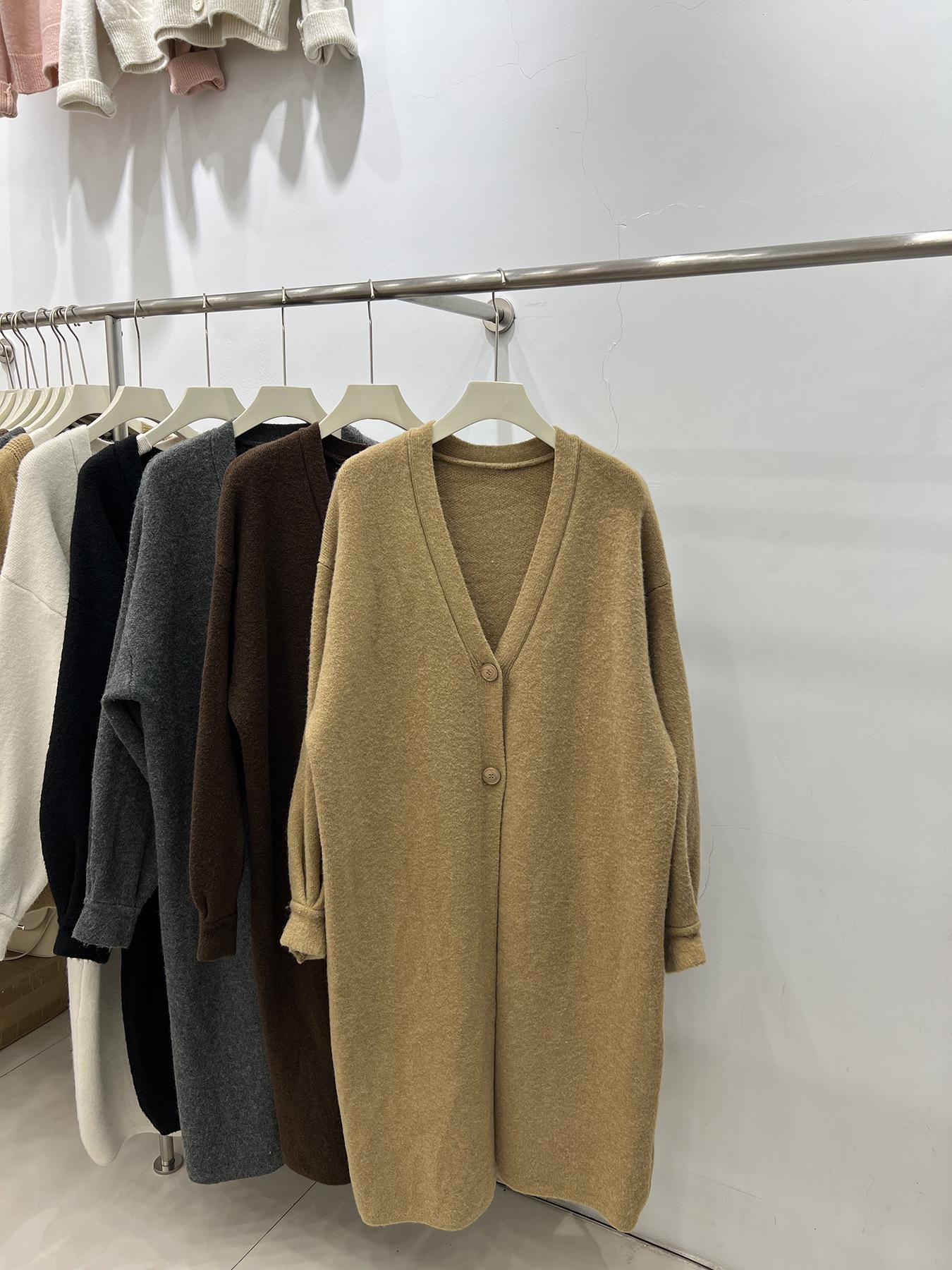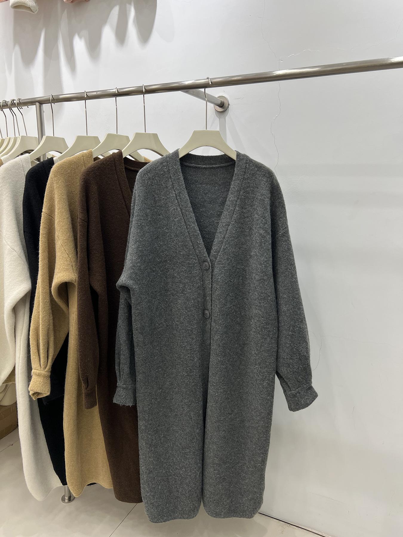 Abrigo Cárdigan Largo hasta la Rodilla de Estilo Holgazán para Mujer Otoño e Invierno Nuevo Cárdigan Tejido Holgado de Versión Coreana para Mujer