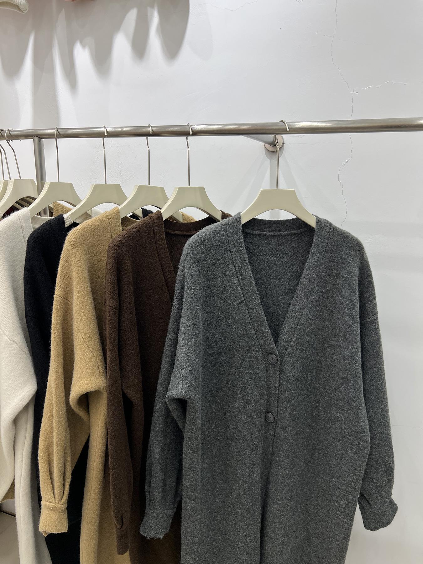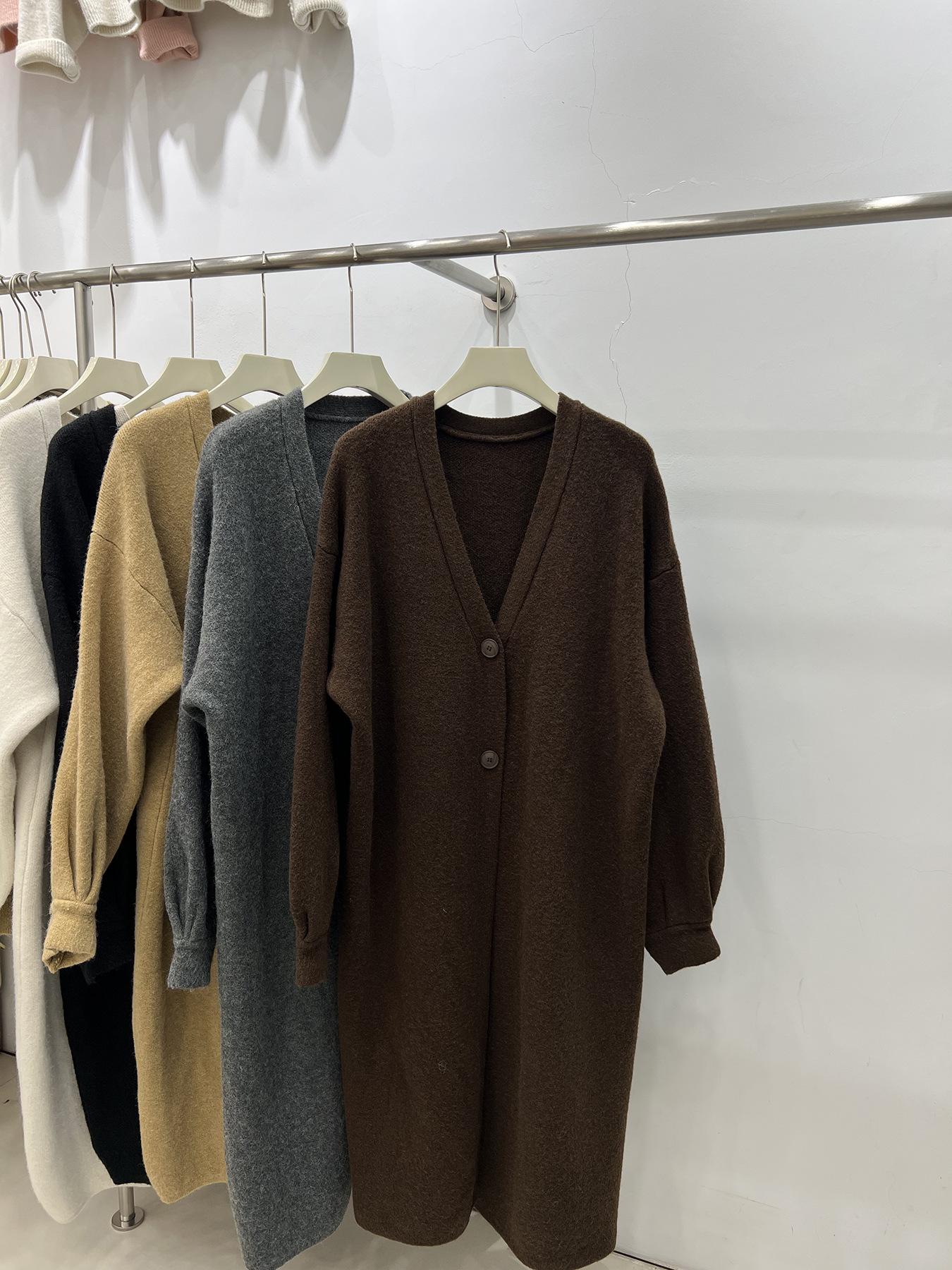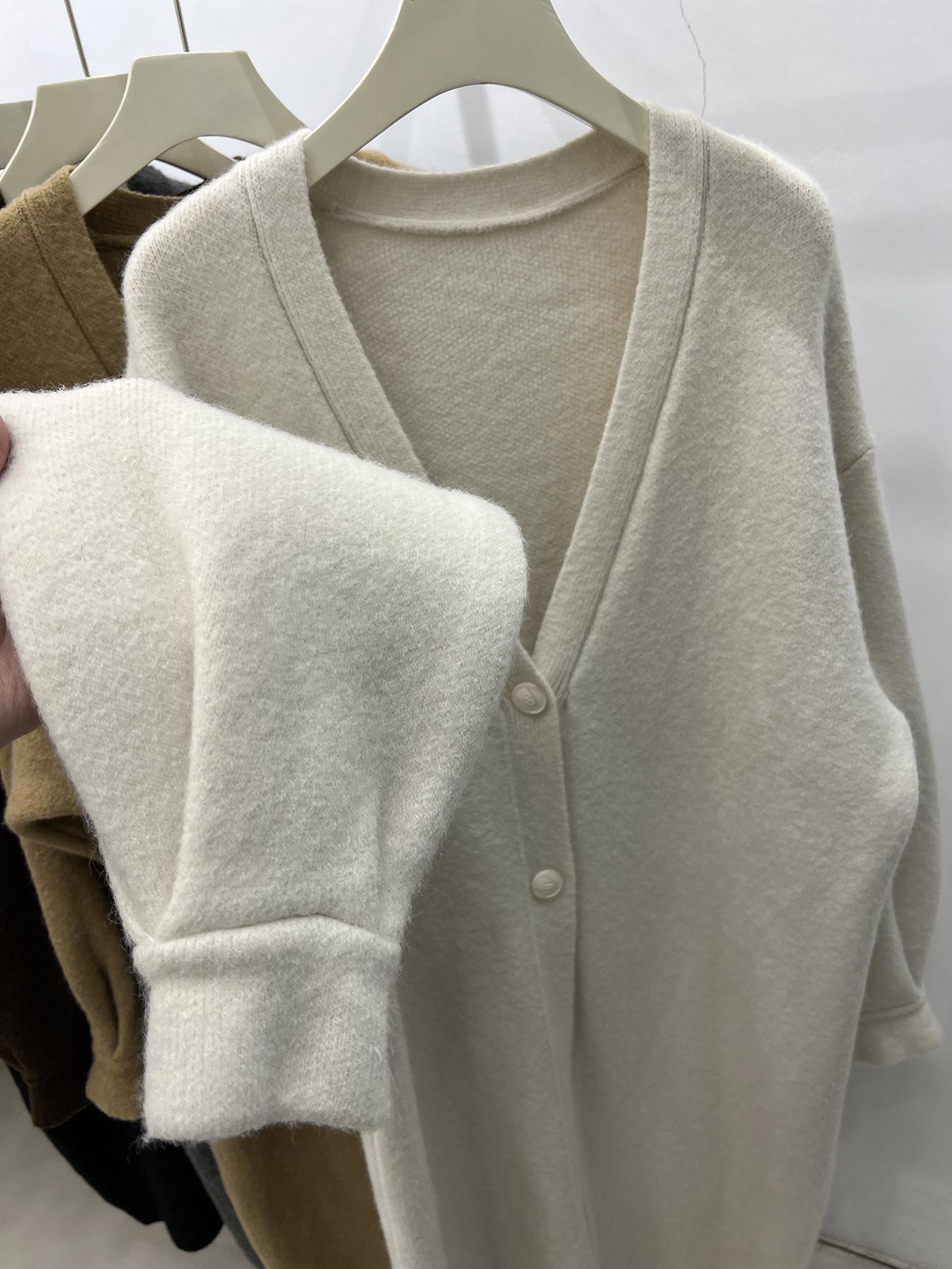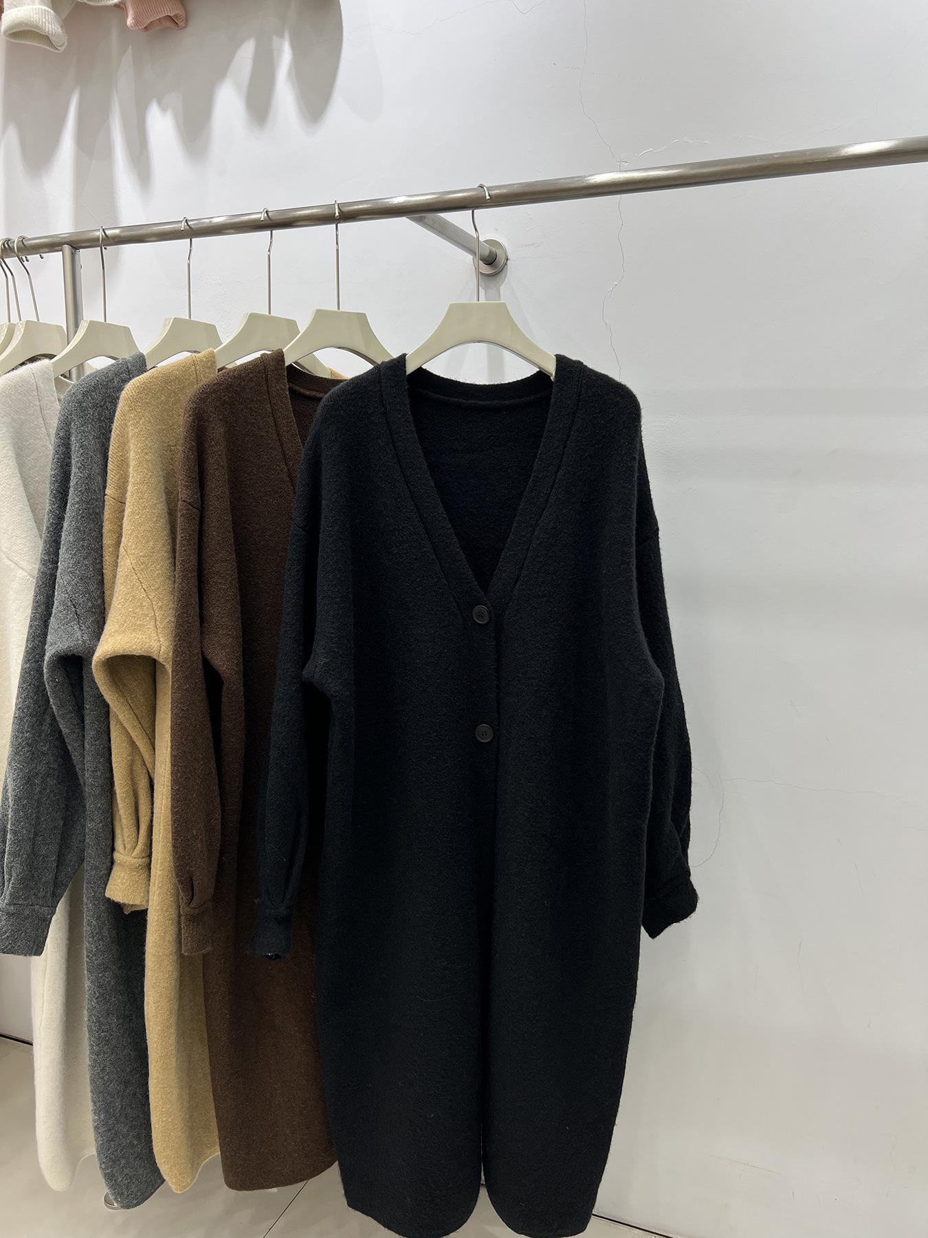 Abrigo Cárdigan Largo hasta la Rodilla de Estilo Holgazán para Mujer Otoño e Invierno Nuevo Cárdigan Tejido Holgado de Versión Coreana para Mujer