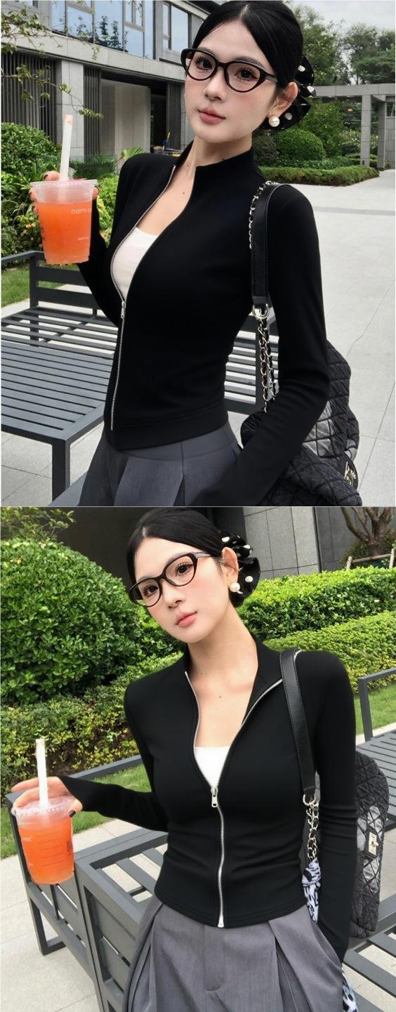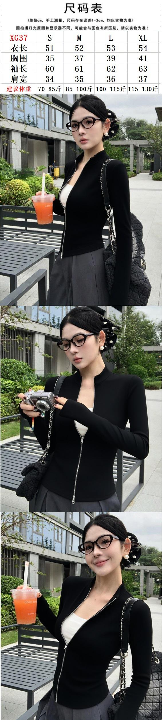 Chaqueta Sudadera de Moda con Doble Cremallera para Mujer 2025 Nuevo Otoño Top Antirayas Cuello Alto Entallado Cárdigan Ajustado a la Cintura