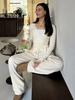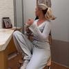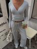 Traje de dos piezas para mujer europeo y americano, elegante diseño cruzado en la cintura, lazo lateral en la cintura, top de manga larga, pantalones holgados.