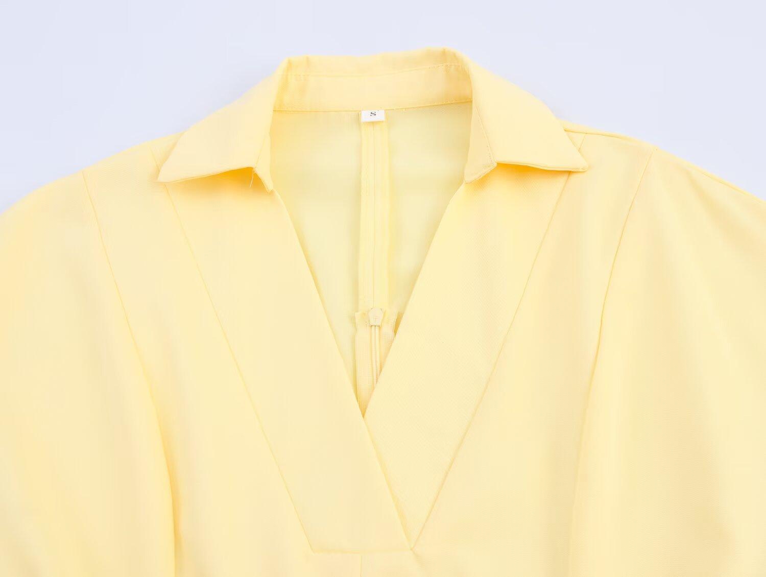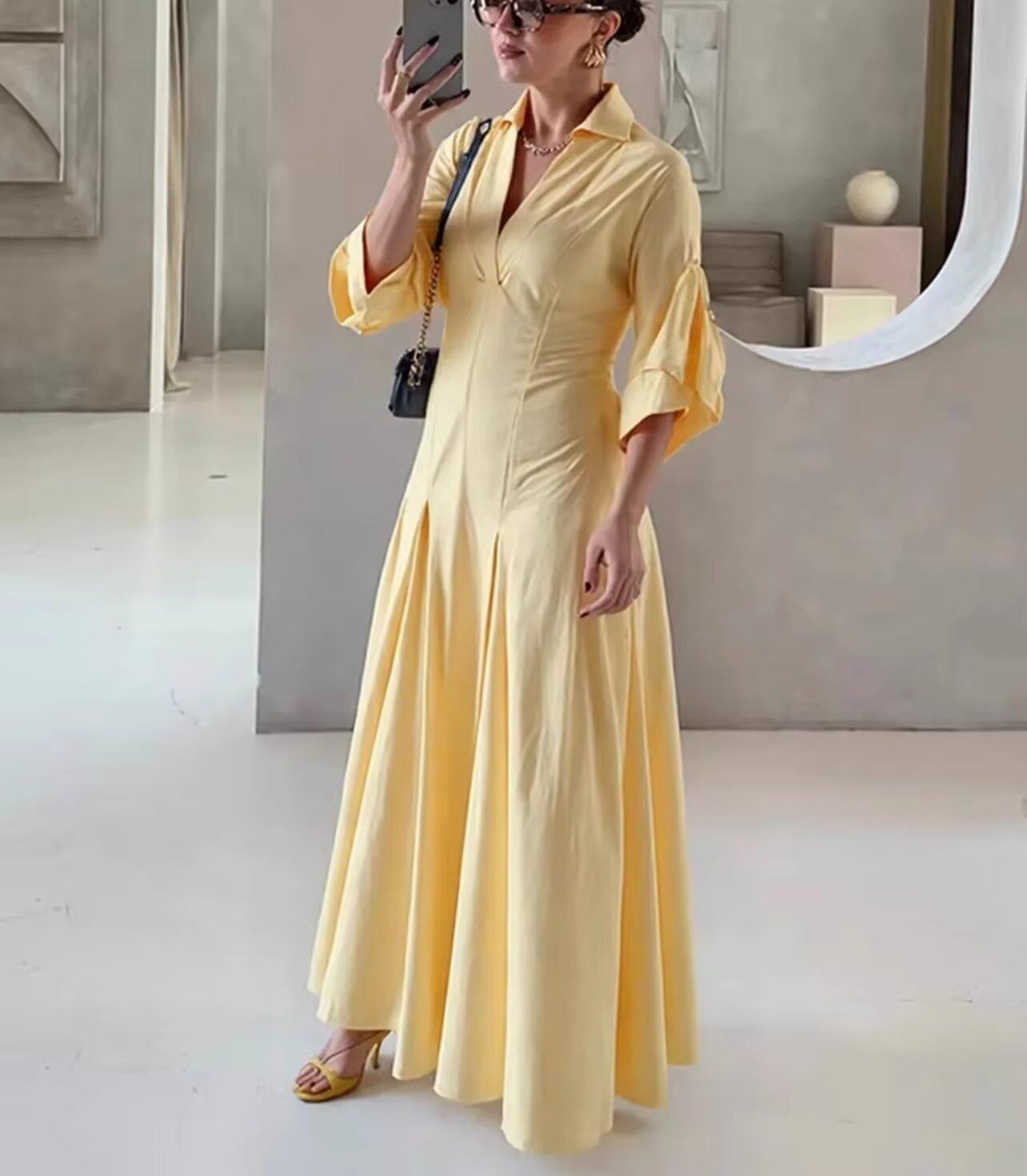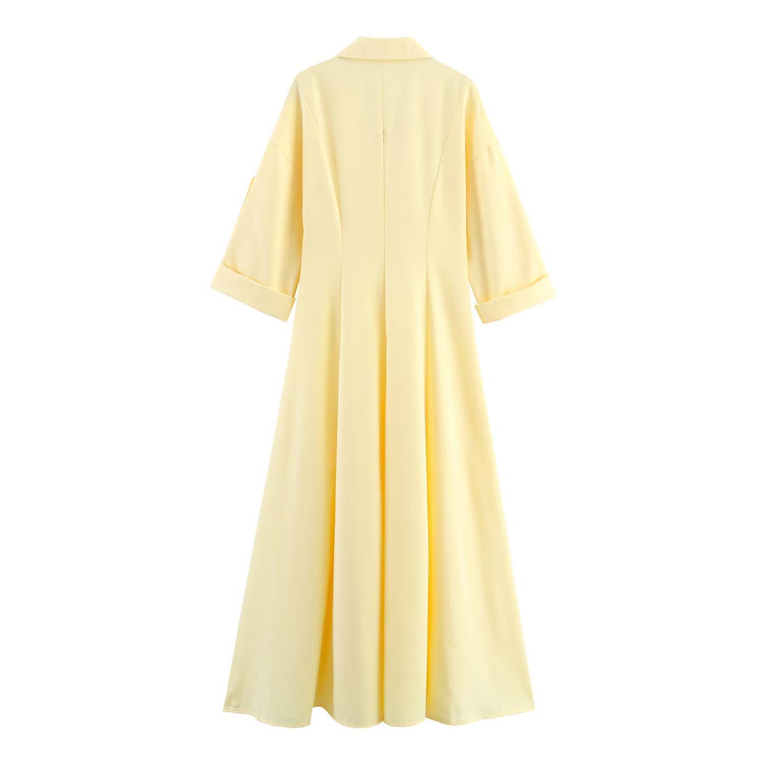 Ropa de Mujer Transfronteriza Europea y Americana 2025 Principios de Otoño Nuevo Versátil Moda Simple Suelto Estilo Camisa Solapa Vestido Color Sólido
