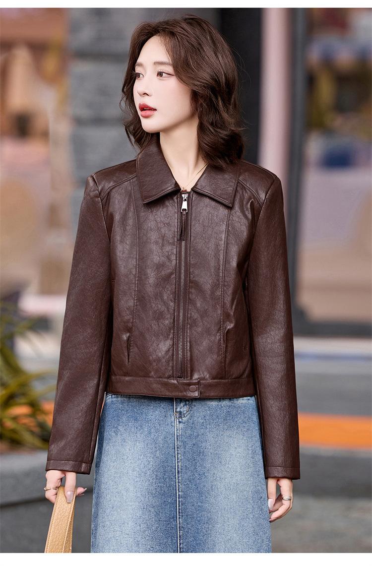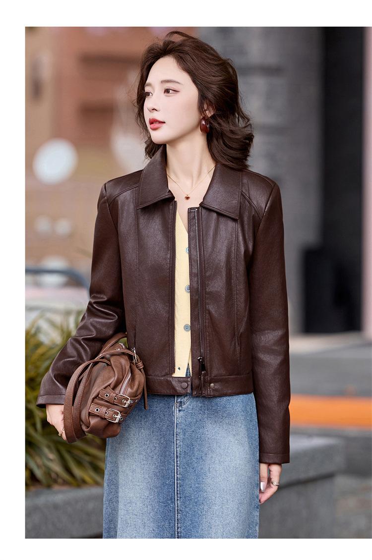 Chaqueta Corta de Cuero Estilo Cool y Guapo Otoño 2025 Nuevo Casual de Moda para Mujer con Textura Suave de Cuero PU Chaqueta Top