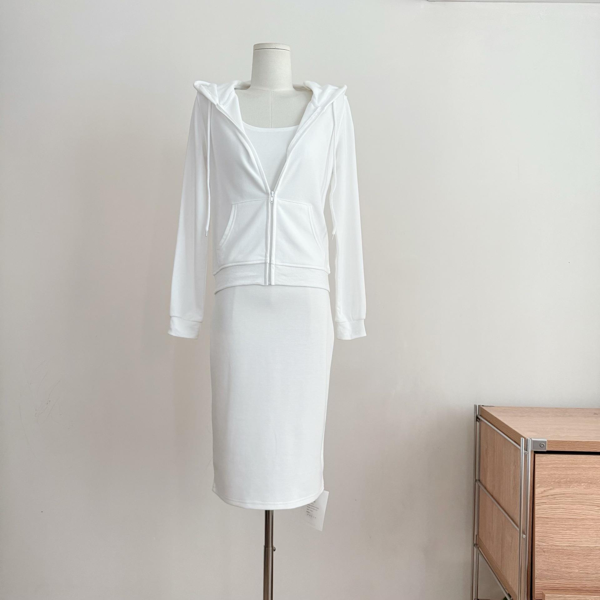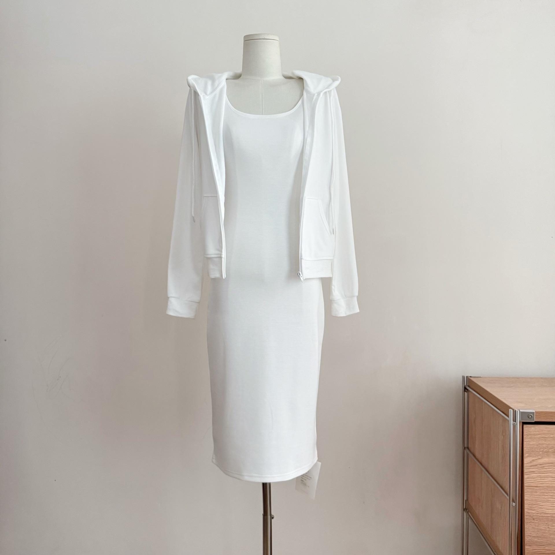 Vestido bodycon muy favorecedor blanco casual de alta elasticidad con tirantes finos vestido largo conjunto cárdigan