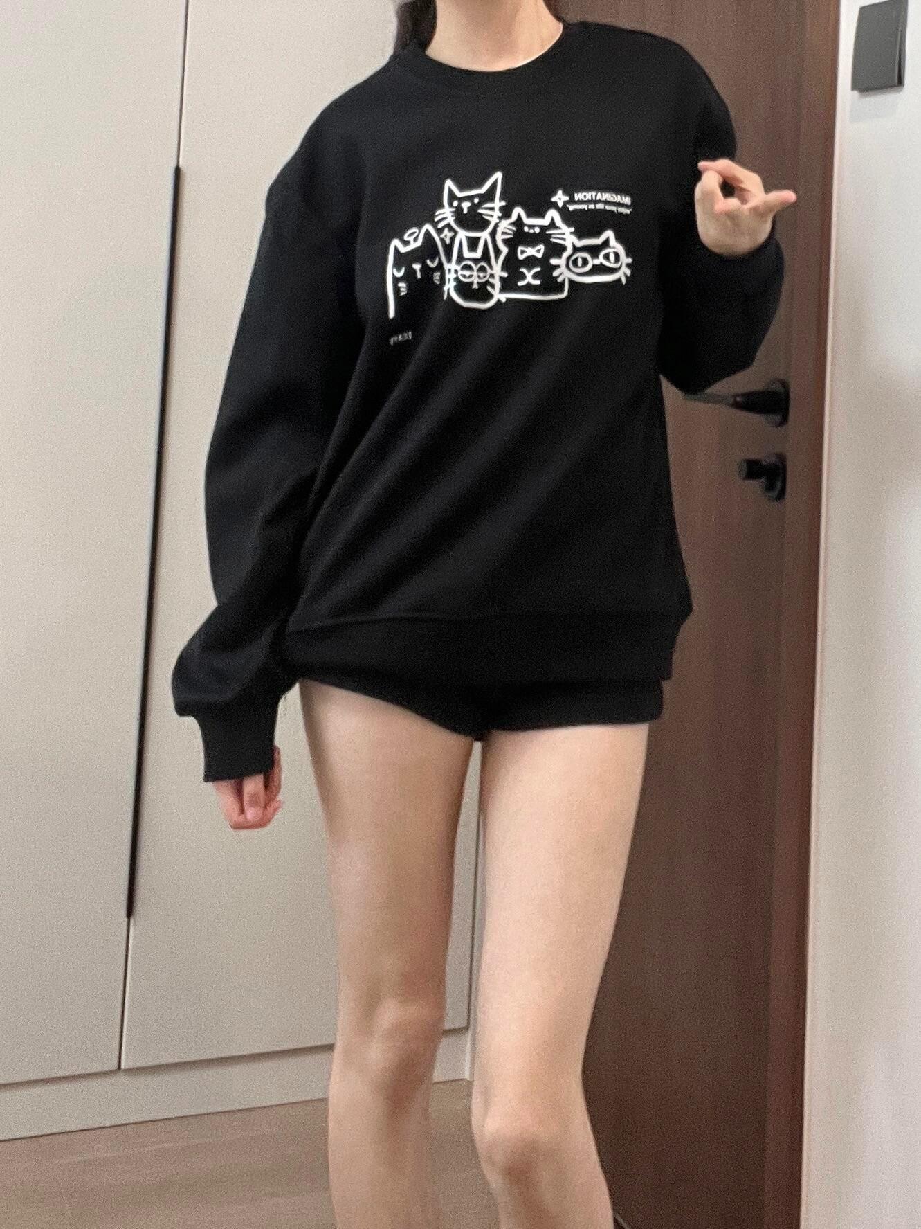 Sudadera Graffiti Sexy Casual Hip-Hop de Cuello Redondo para Mujer, Top Versátil sin Capucha con Estampado Estilo Bf Trendy y Versátil