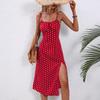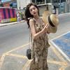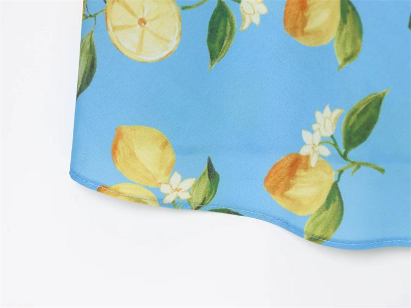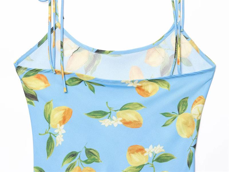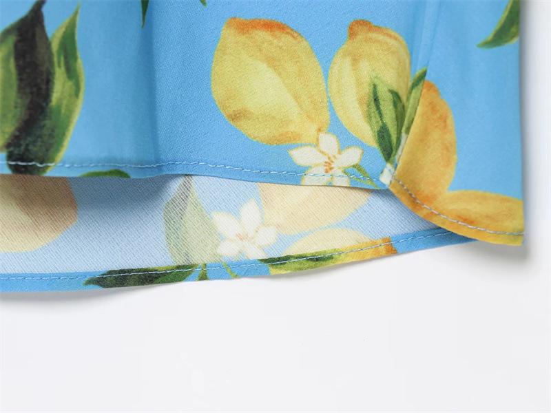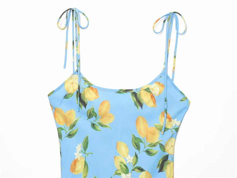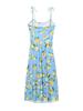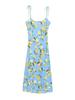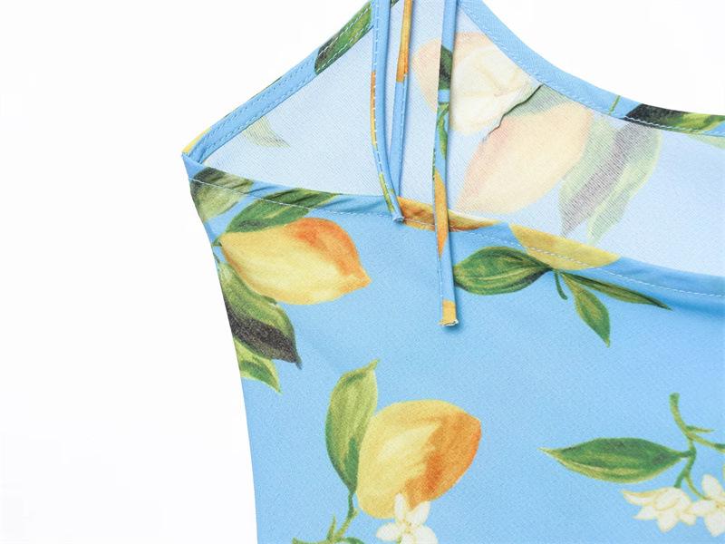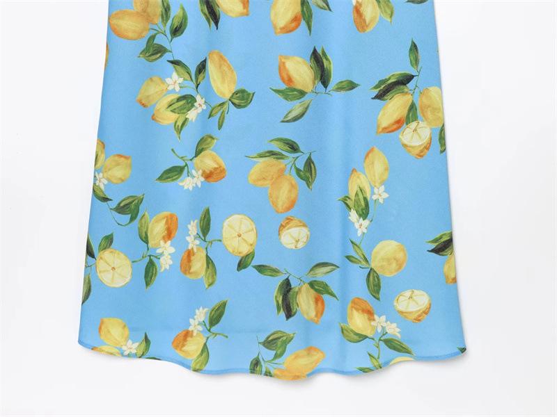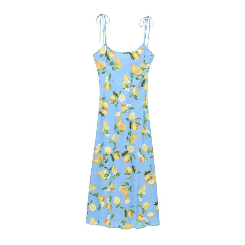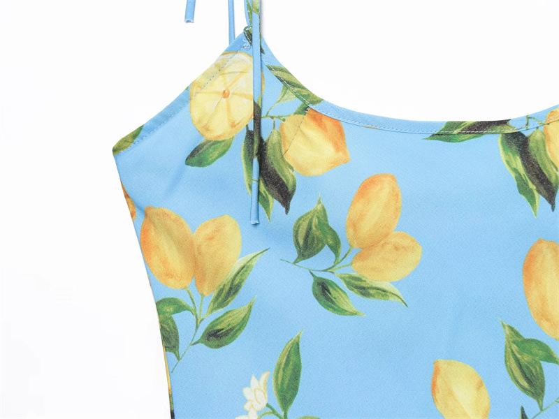 Vestido de Tirantes Estilo Europeo y Americano con Estampado de Limones para Mujer Verano Nuevo Look Adelgazante Falda Midi para Vacaciones
