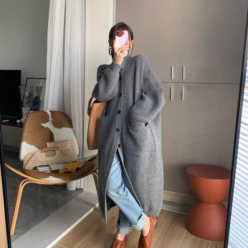 Nuevo Otoño e Invierno Sentido del Diseño Grueso Versátil Suelto Temperamento Cárdigan Suéter Largo Mujer