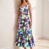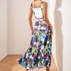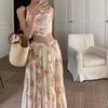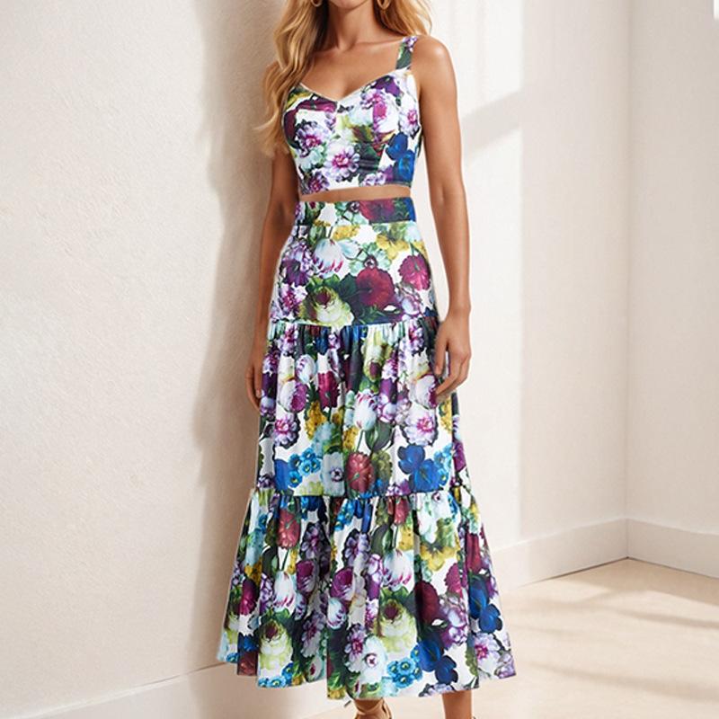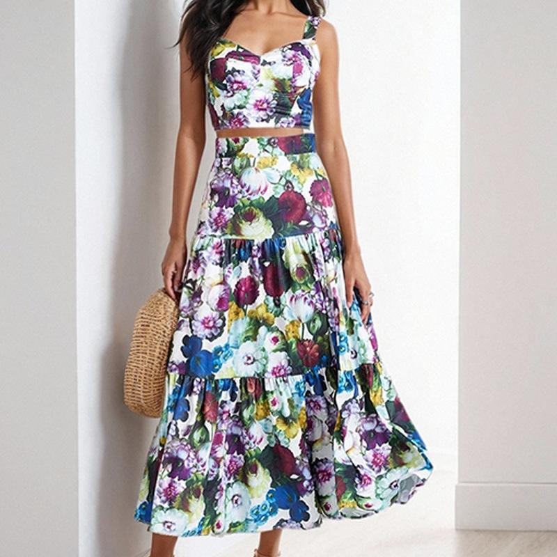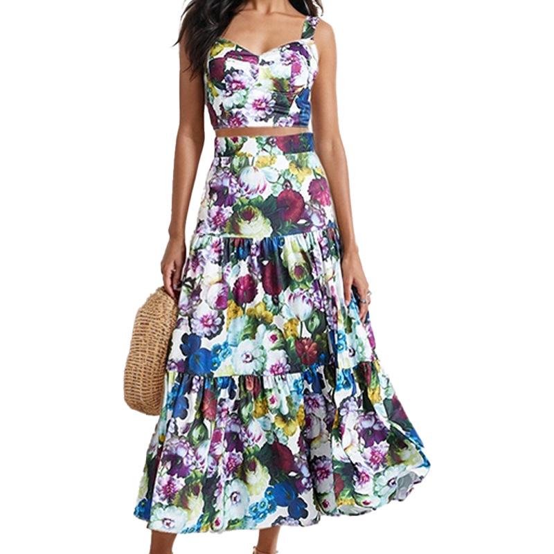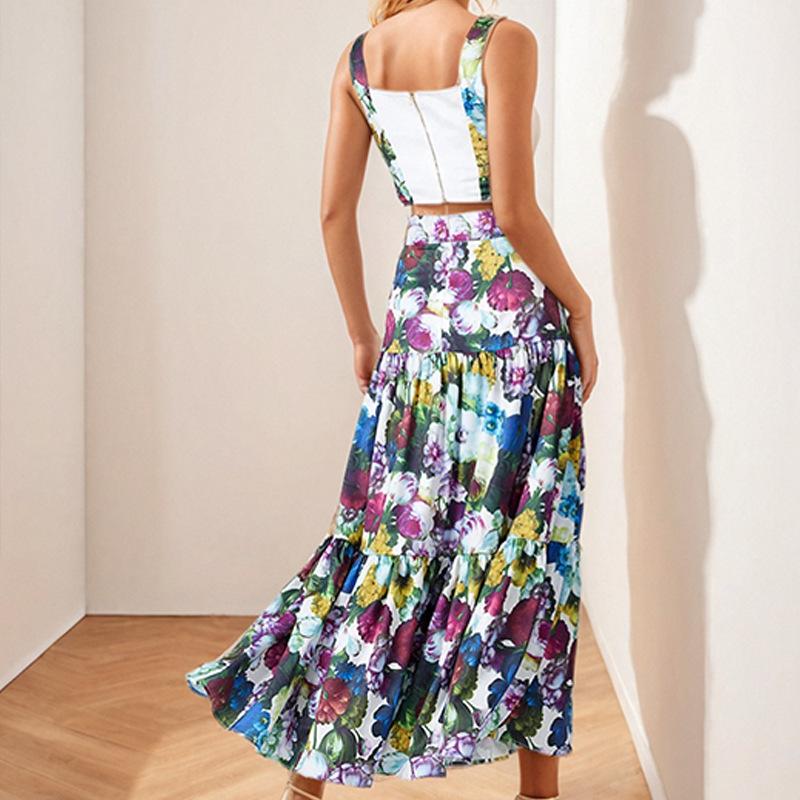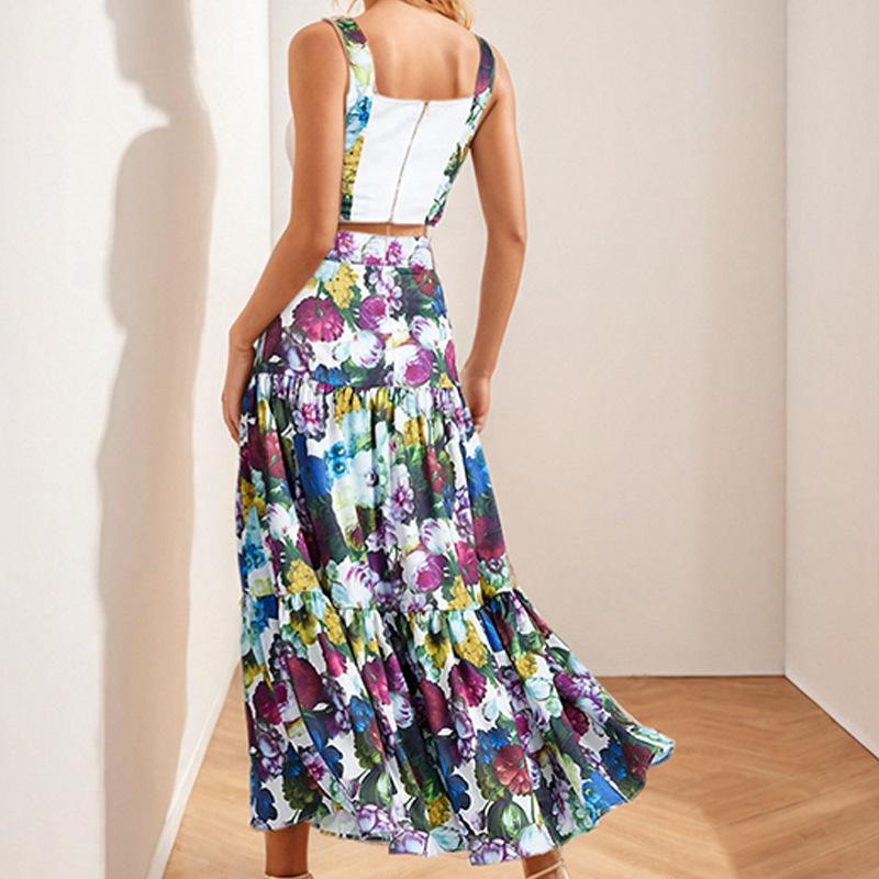 Traje Estilo Vacacional Camisola Top Corto de Tubo para Mujer Falda Larga en A Estampada Retro Conjunto de Moda de Dos Piezas