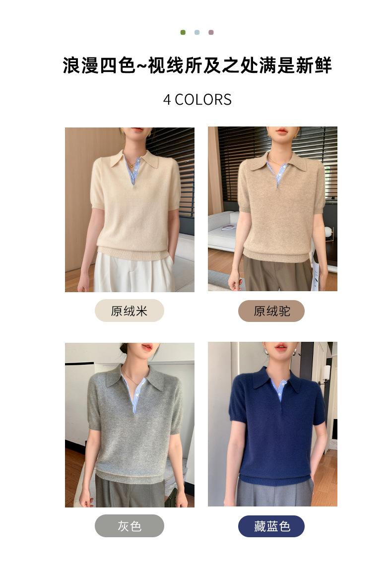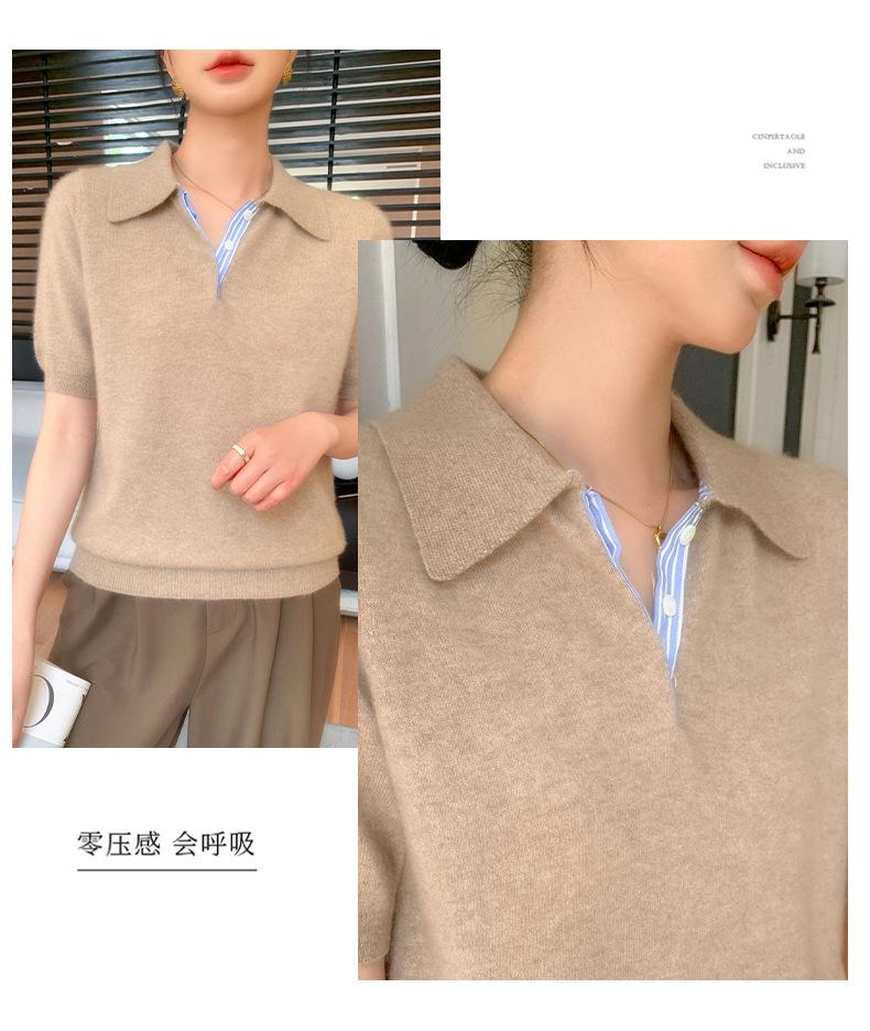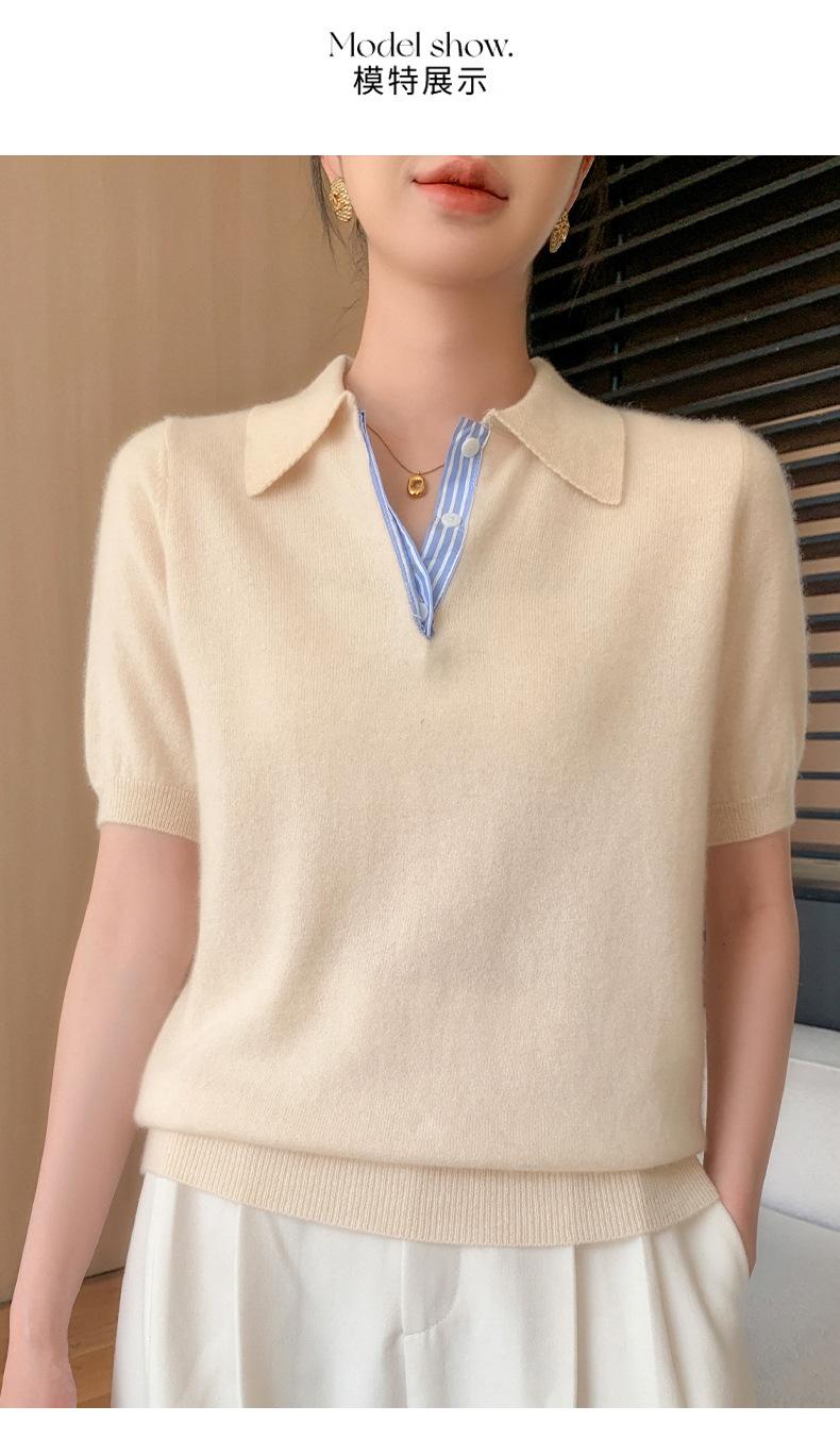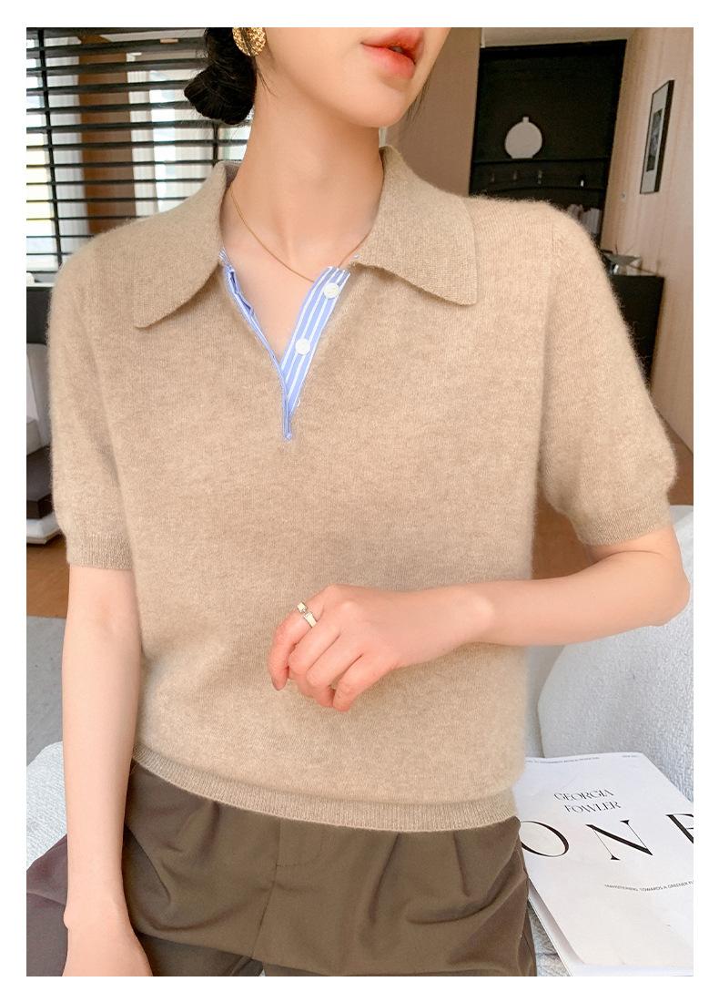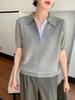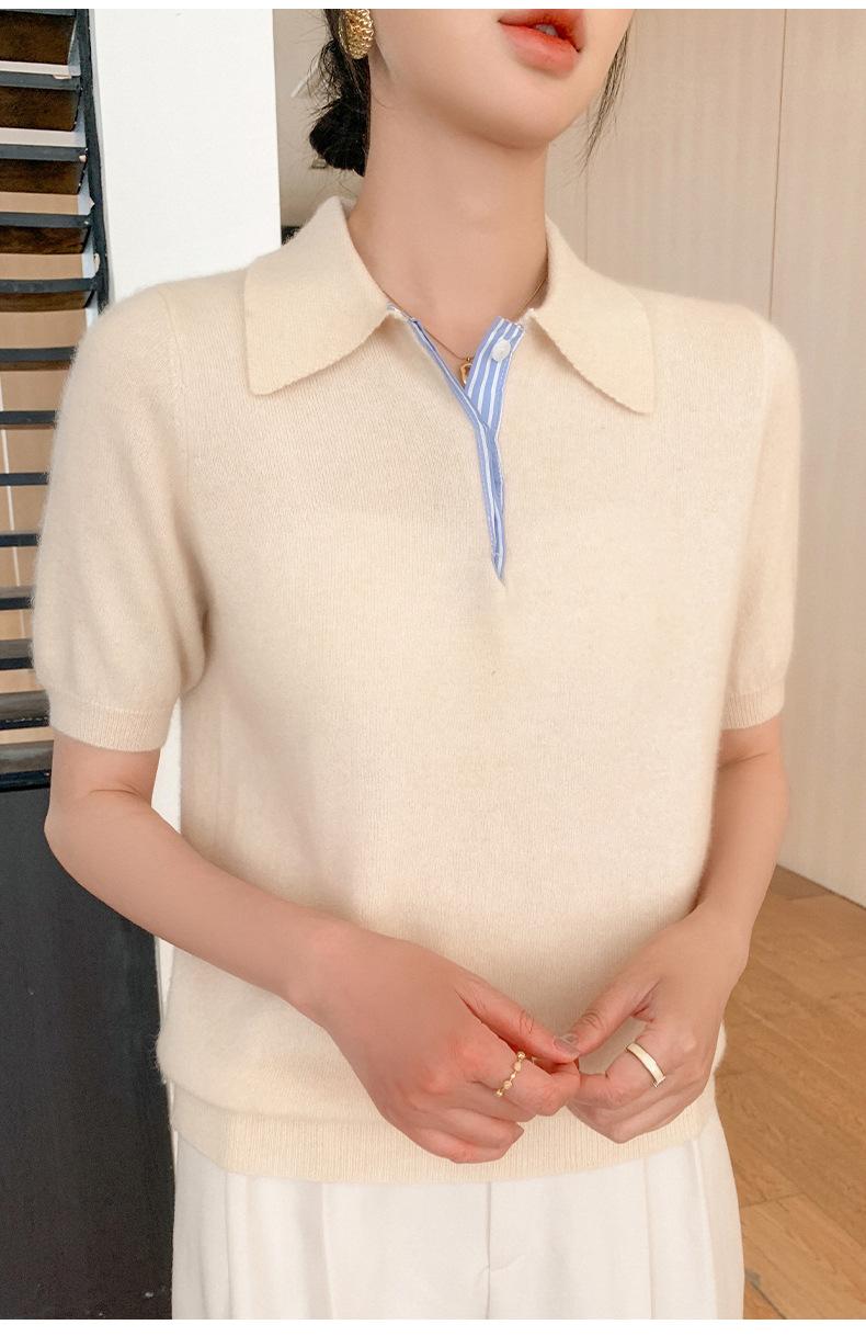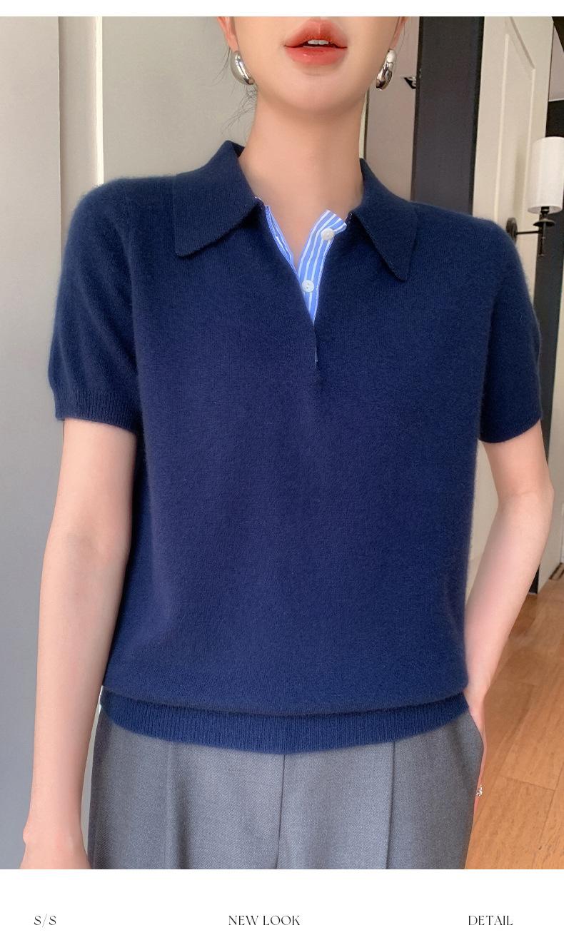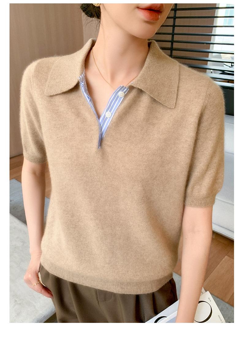 Sentido del diseño de empalme de bloques de color POLO cuello punto 2025 otoño casual simple versátil adelgazante manga corta top mujer