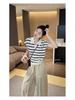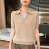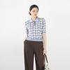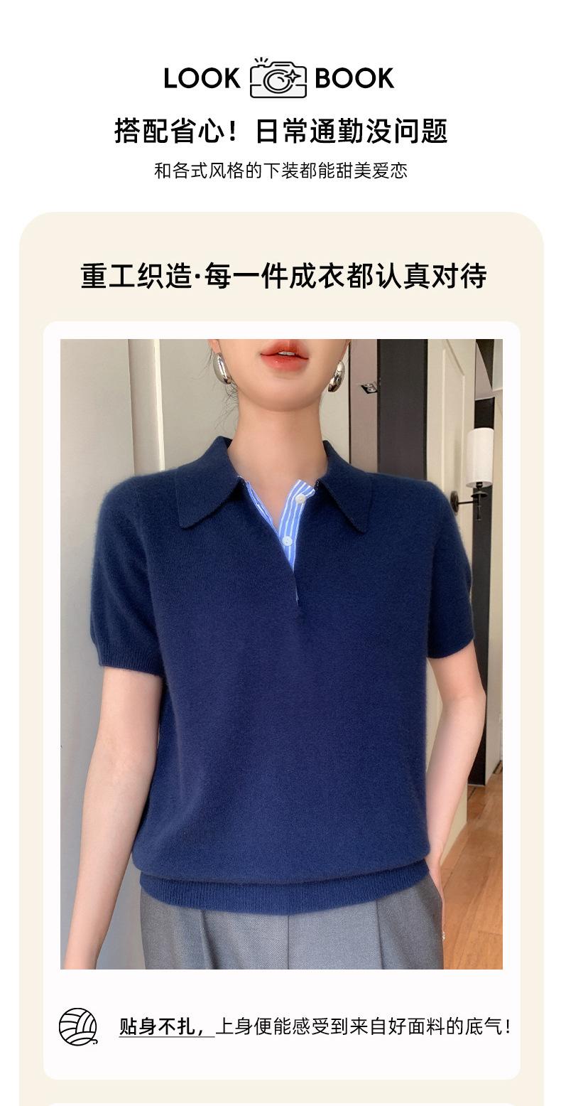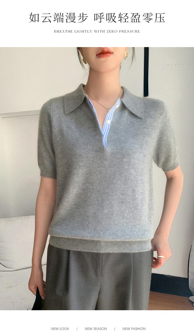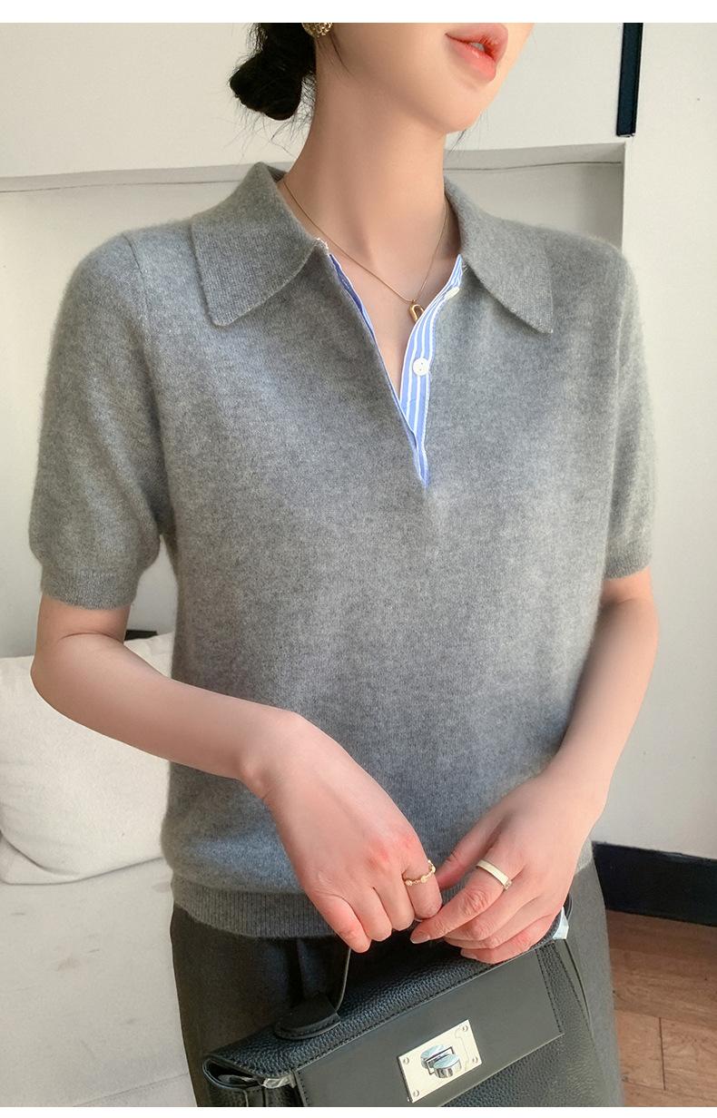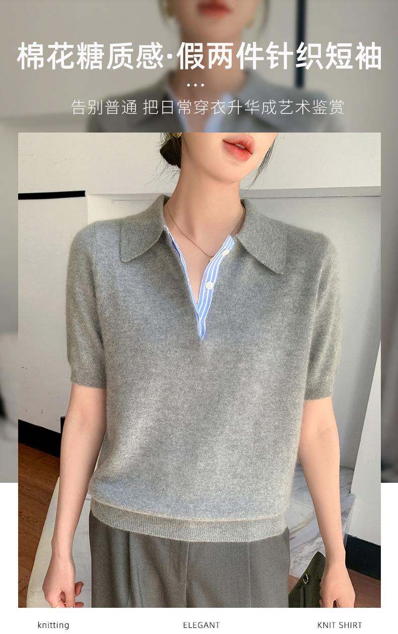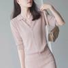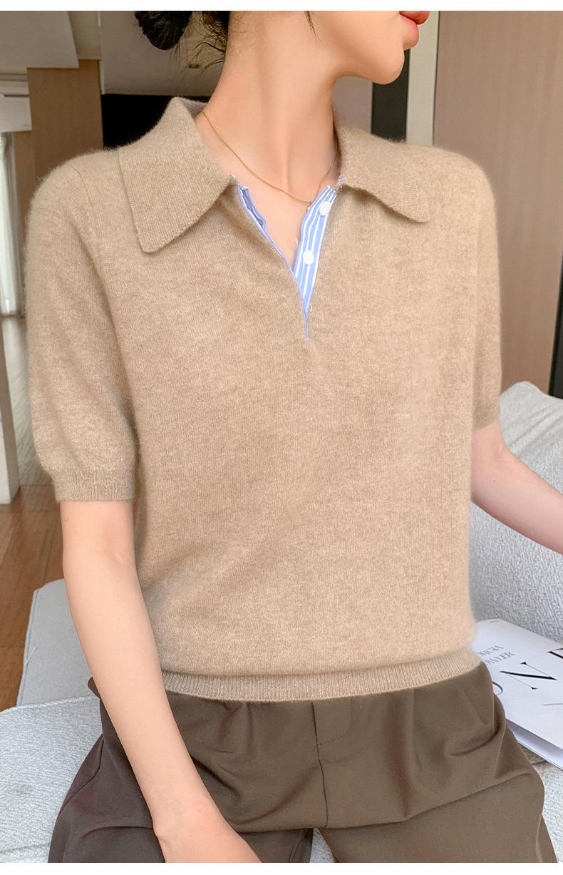 Sentido del diseño de empalme de bloques de color POLO cuello punto 2025 otoño casual simple versátil adelgazante manga corta top mujer