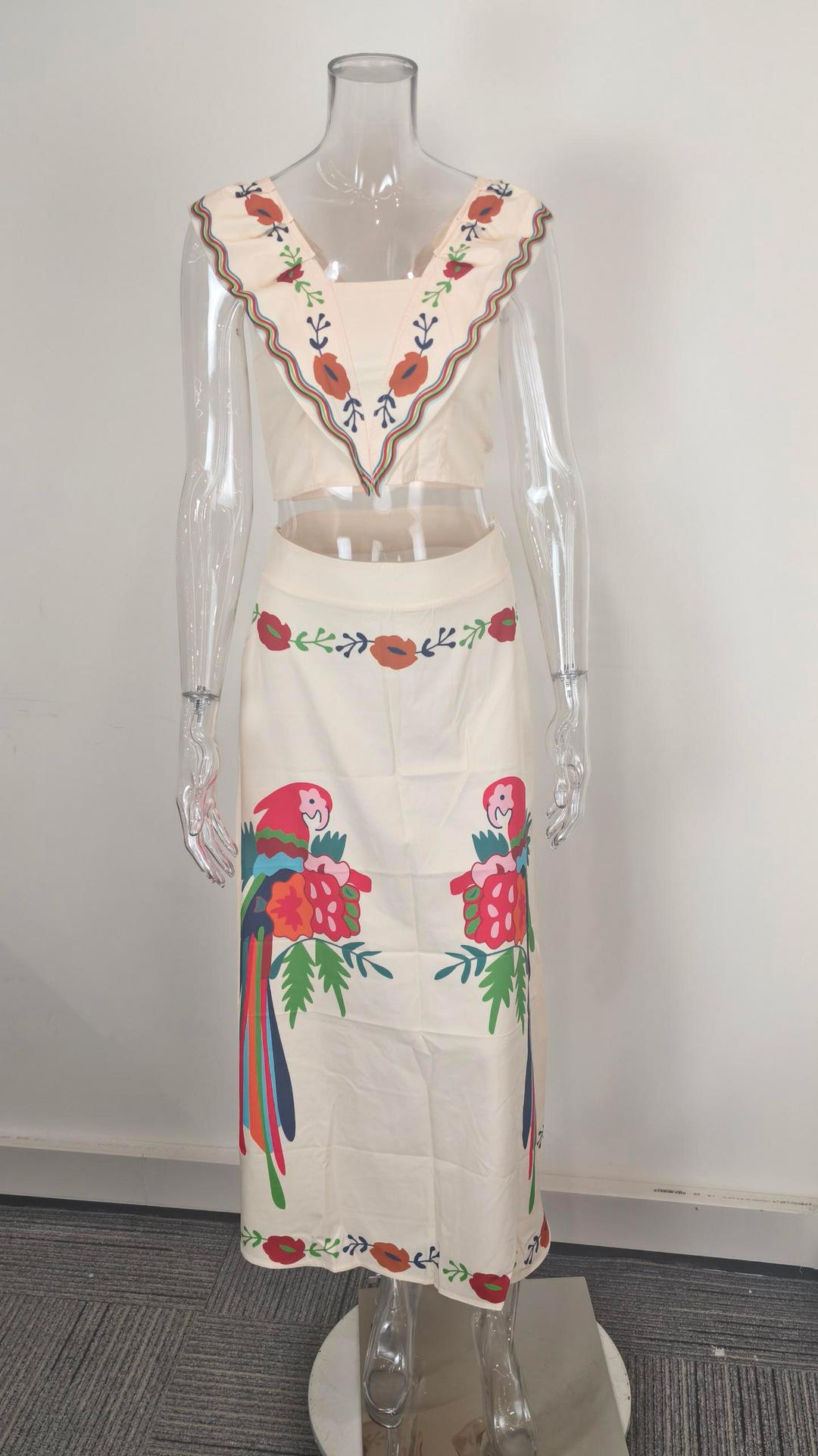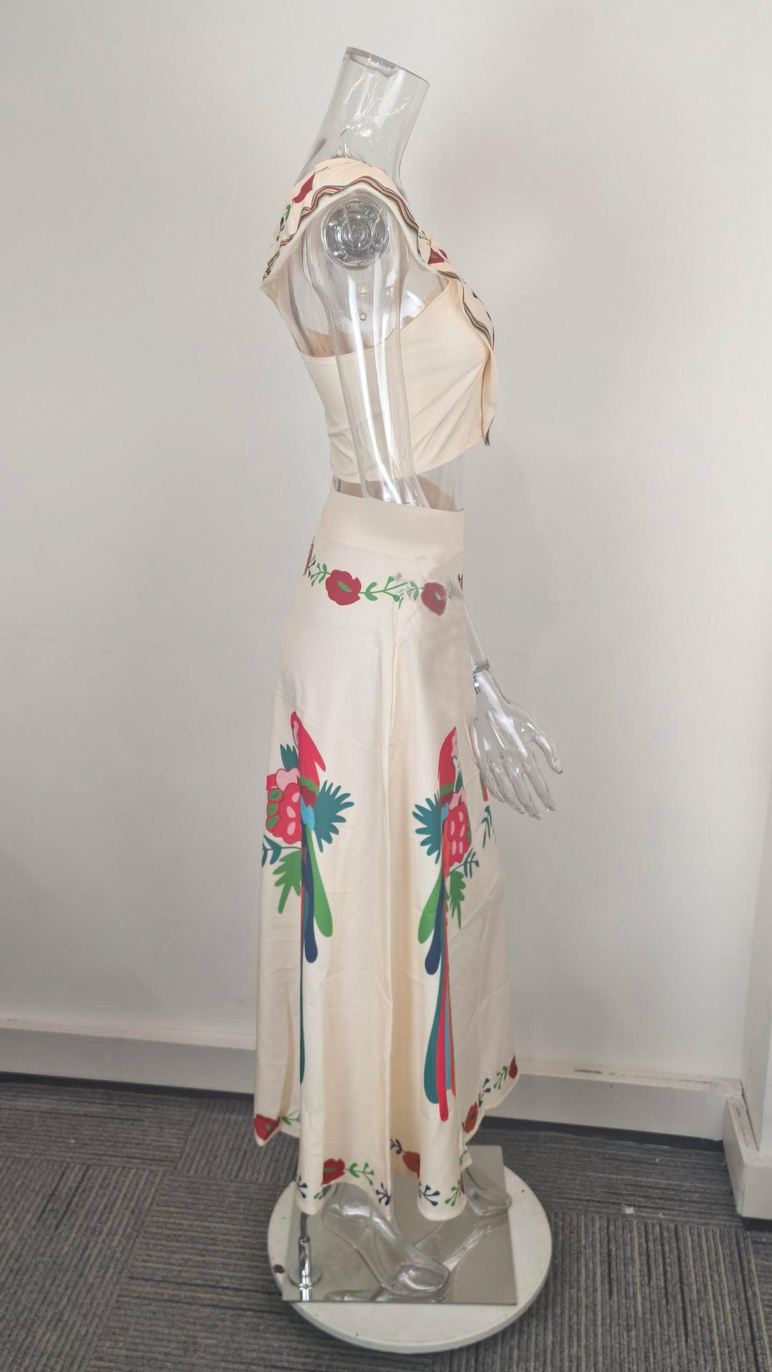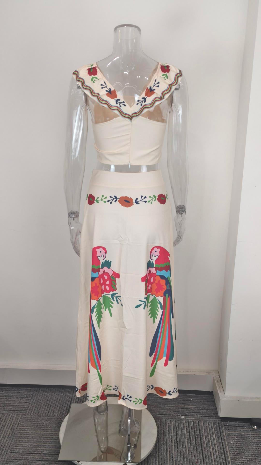 Amazon ropa de mujer transfronteriza europea y americana 2025 primavera nuevo ins estampado top con volantes sobrefalda traje de moda