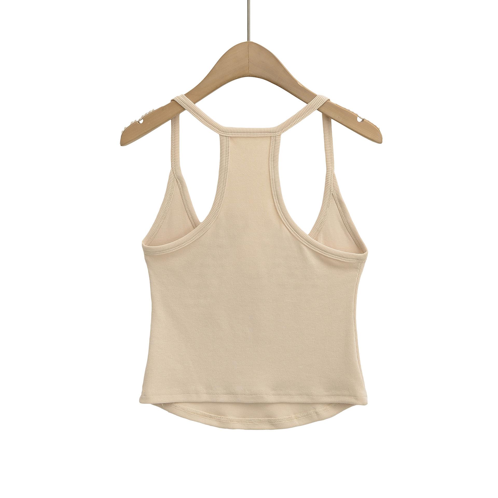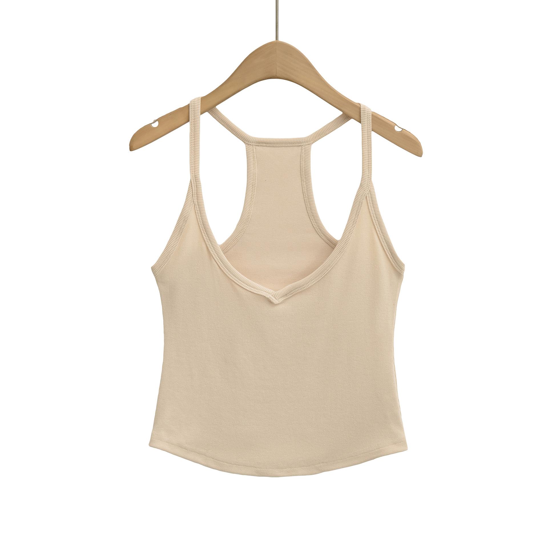 Chica Caliente Americana Delgada Sexy Cuello en V Deportivo Casual Camisola 2025 Verano Nuevo Top Elástico