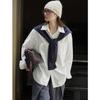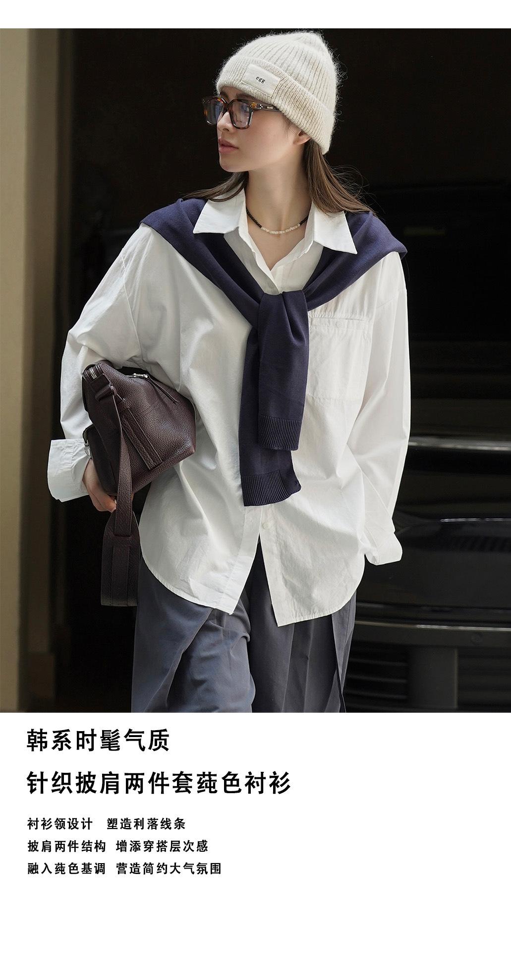 Principios de Otoño Nuevo Temperamento de Moda Coreana Chal Tejido Conjunto de Dos Piezas Diseño de Camisa Top Casual Chic
