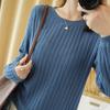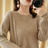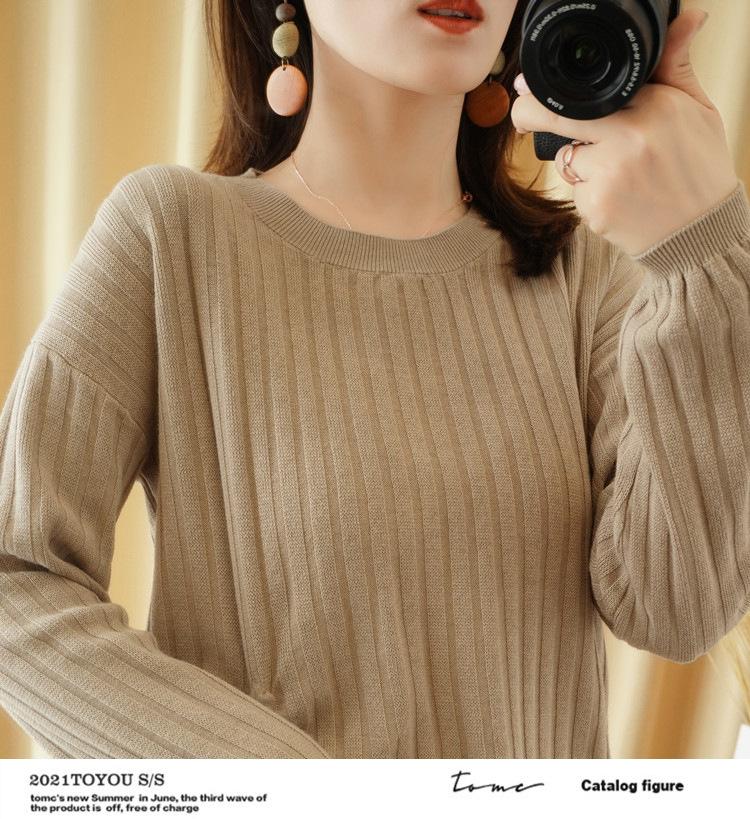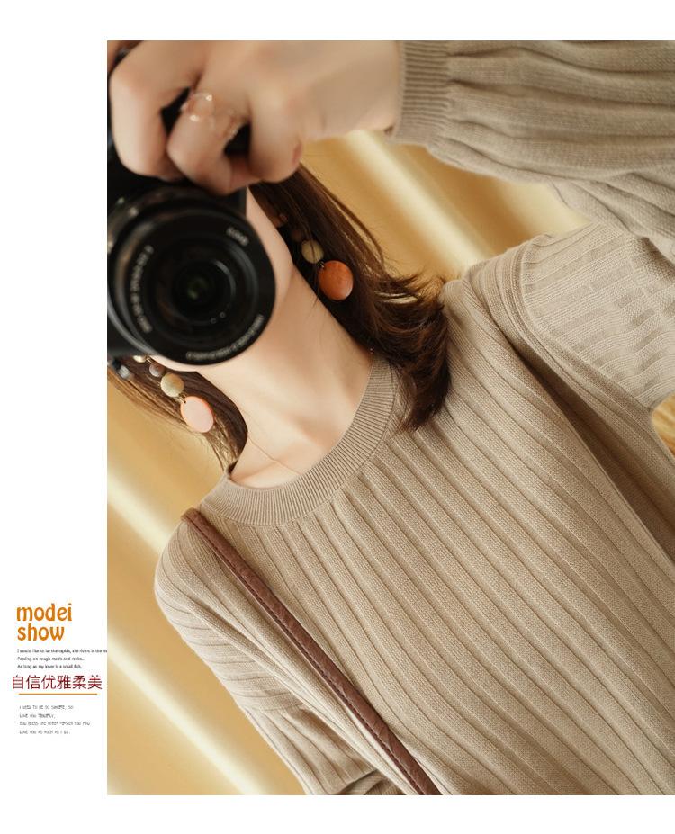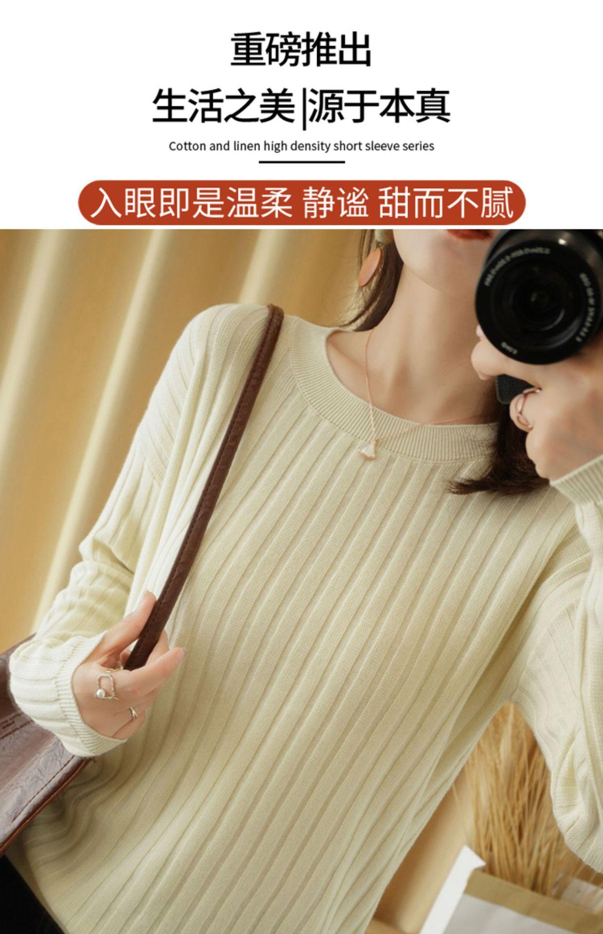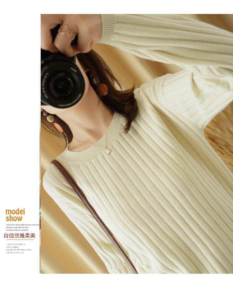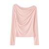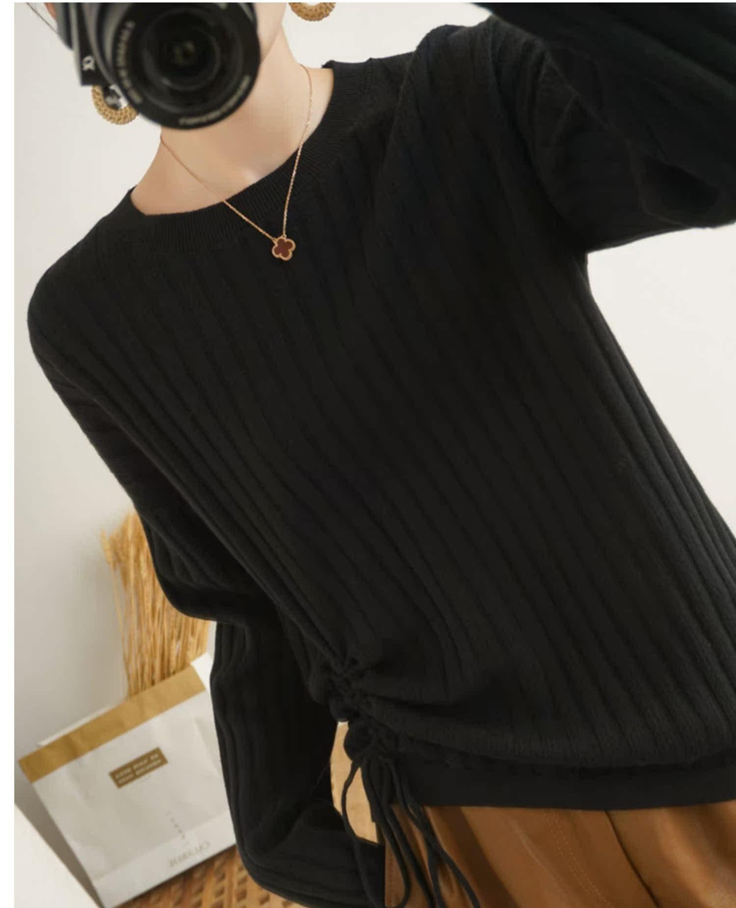 2025 primavera y verano nuevo suéter de algodón puro de cuello redondo manga larga con cordón lateral en la sisa color sólido jersey camiseta básica mujer