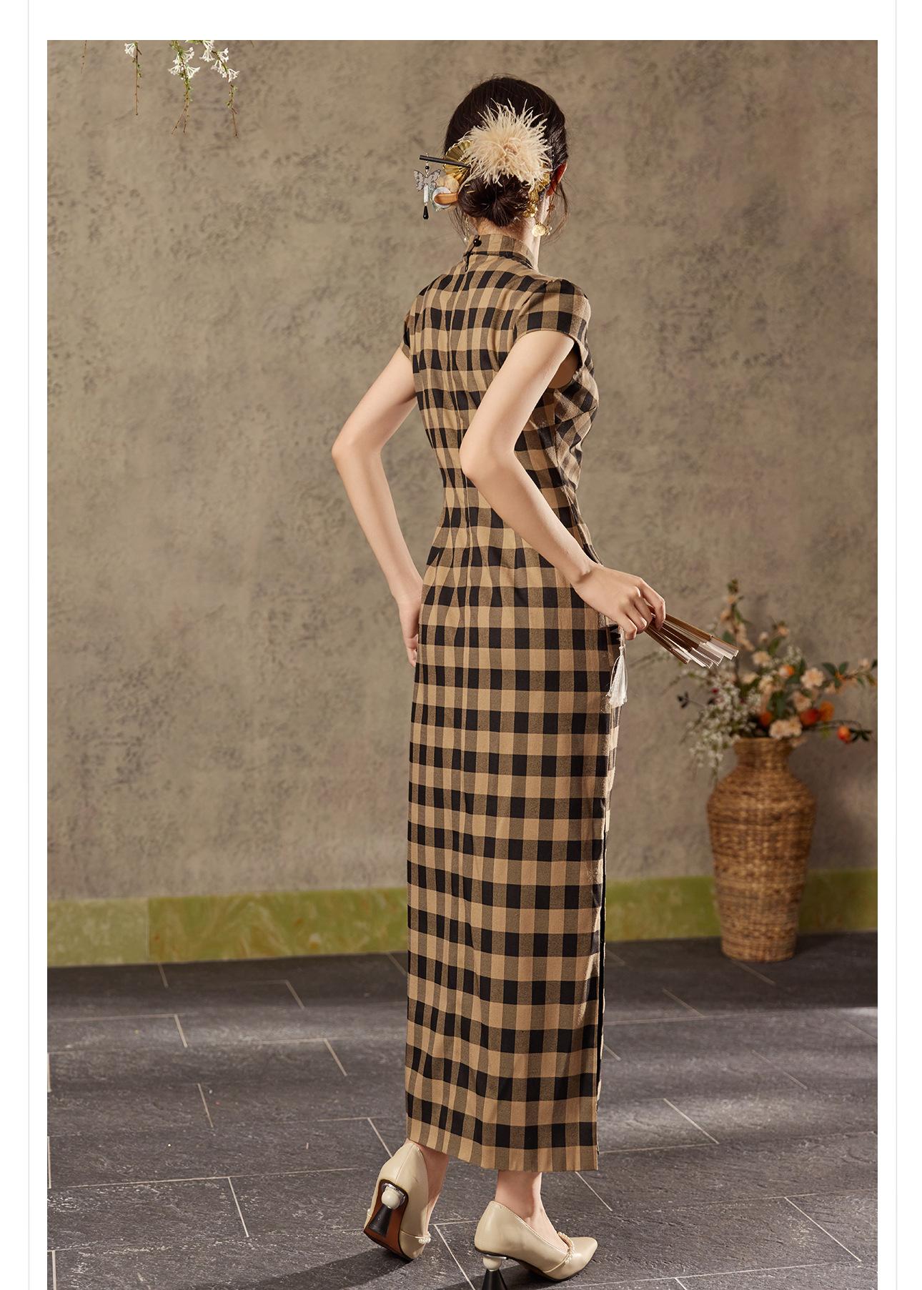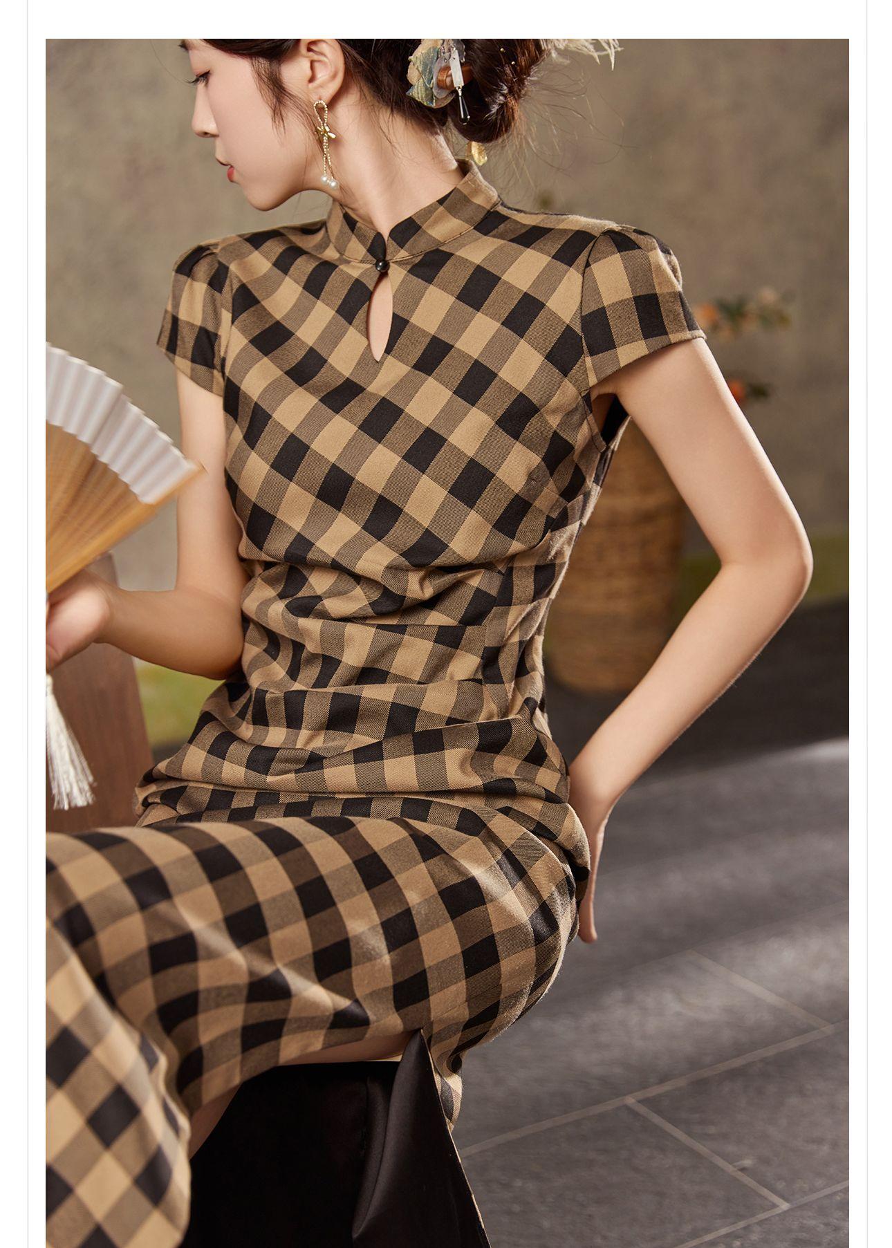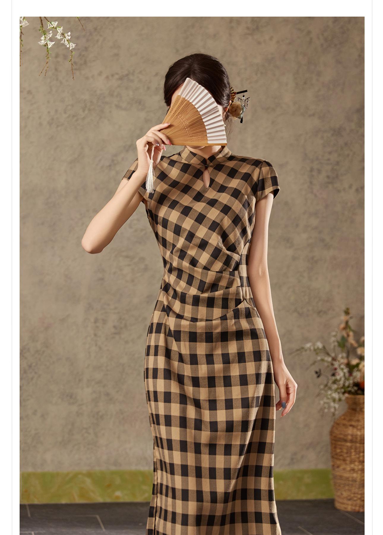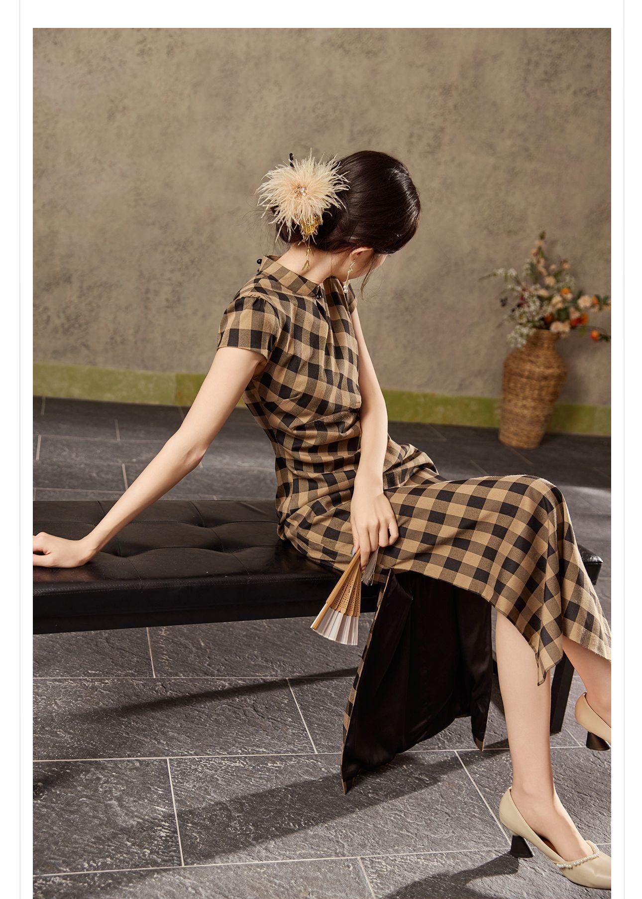 Nuevo Estilo Chino Marea Nacional Modificado Vestido de Cuello Mao para Mujer Moda de Principios de Otoño Nuevo Vestido Cheongsam Bordado a Cuadros N8040