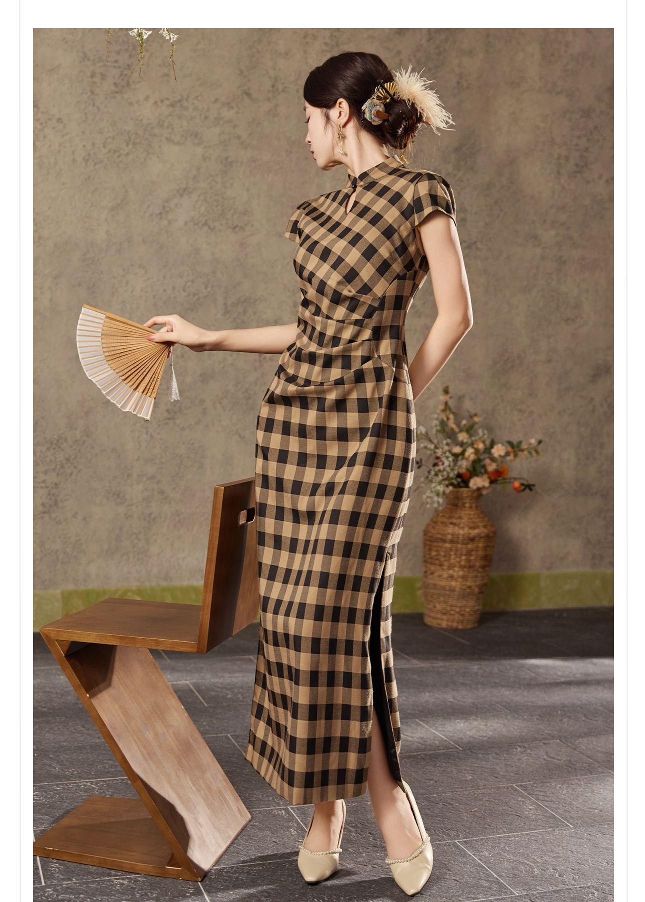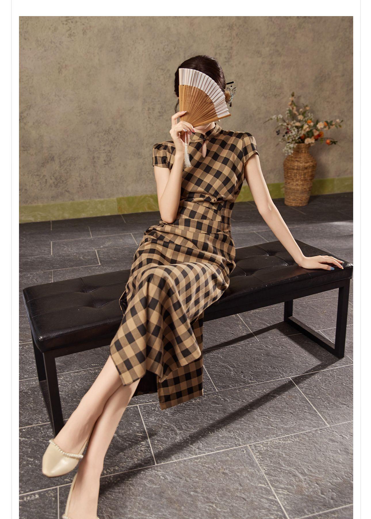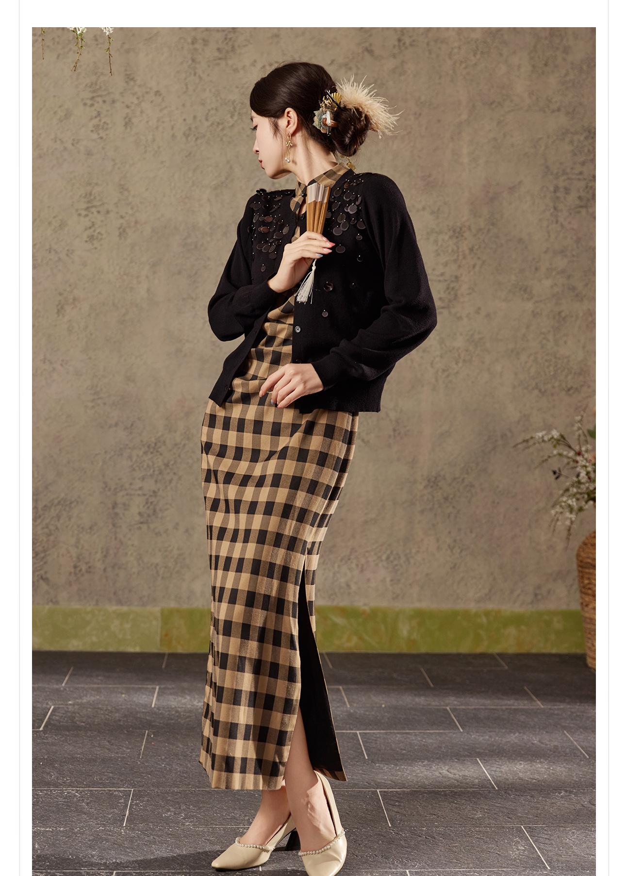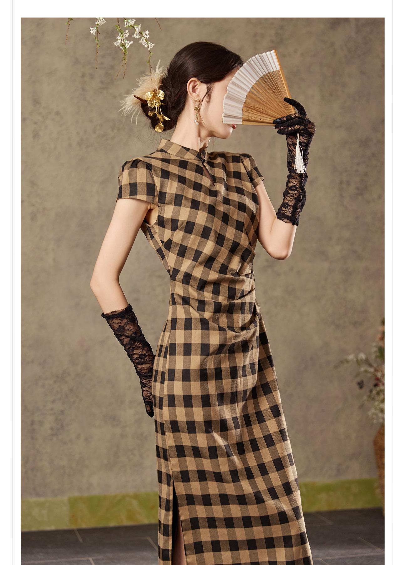 Nuevo Estilo Chino Marea Nacional Modificado Vestido de Cuello Mao para Mujer Moda de Principios de Otoño Nuevo Vestido Cheongsam Bordado a Cuadros N8040