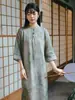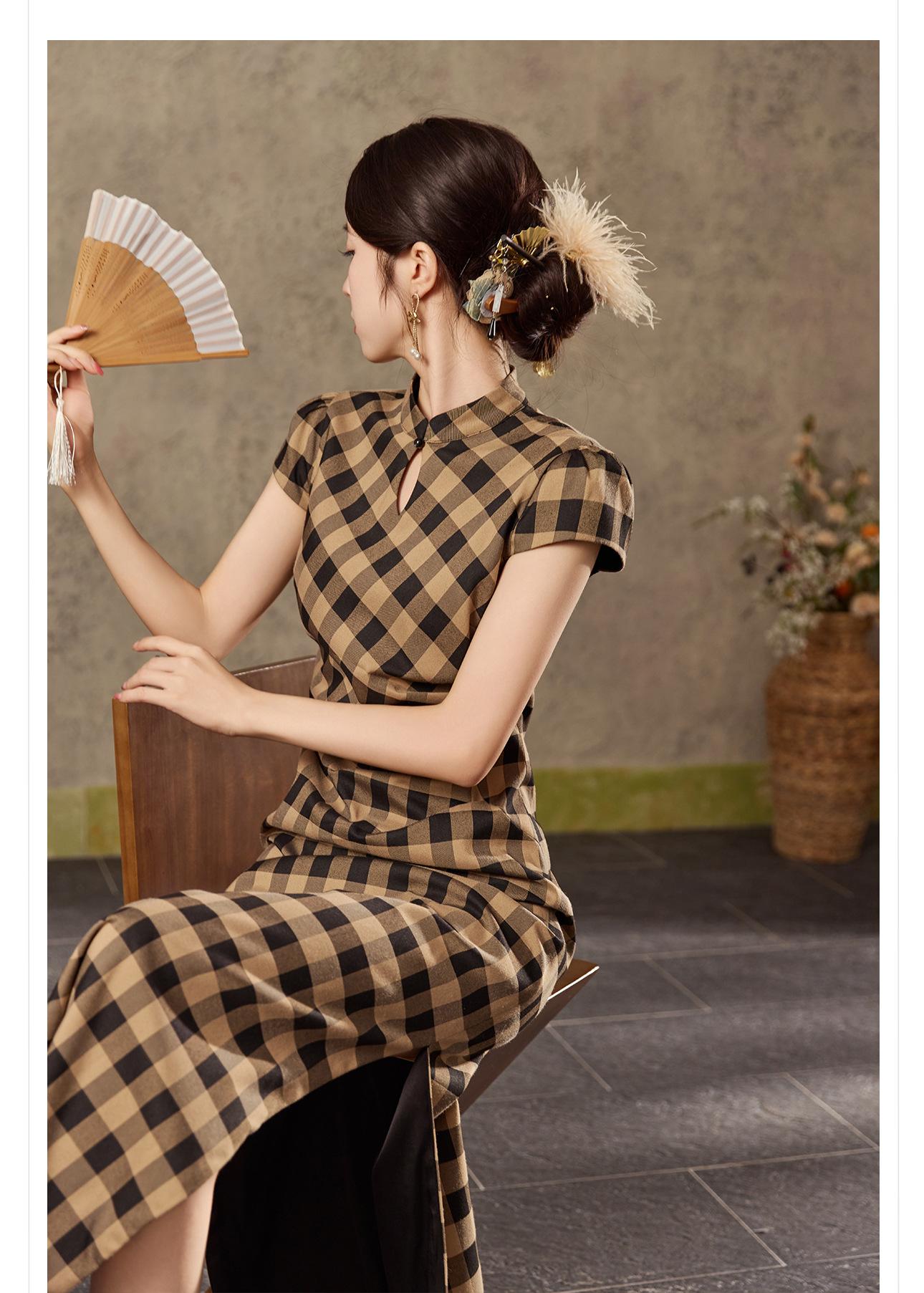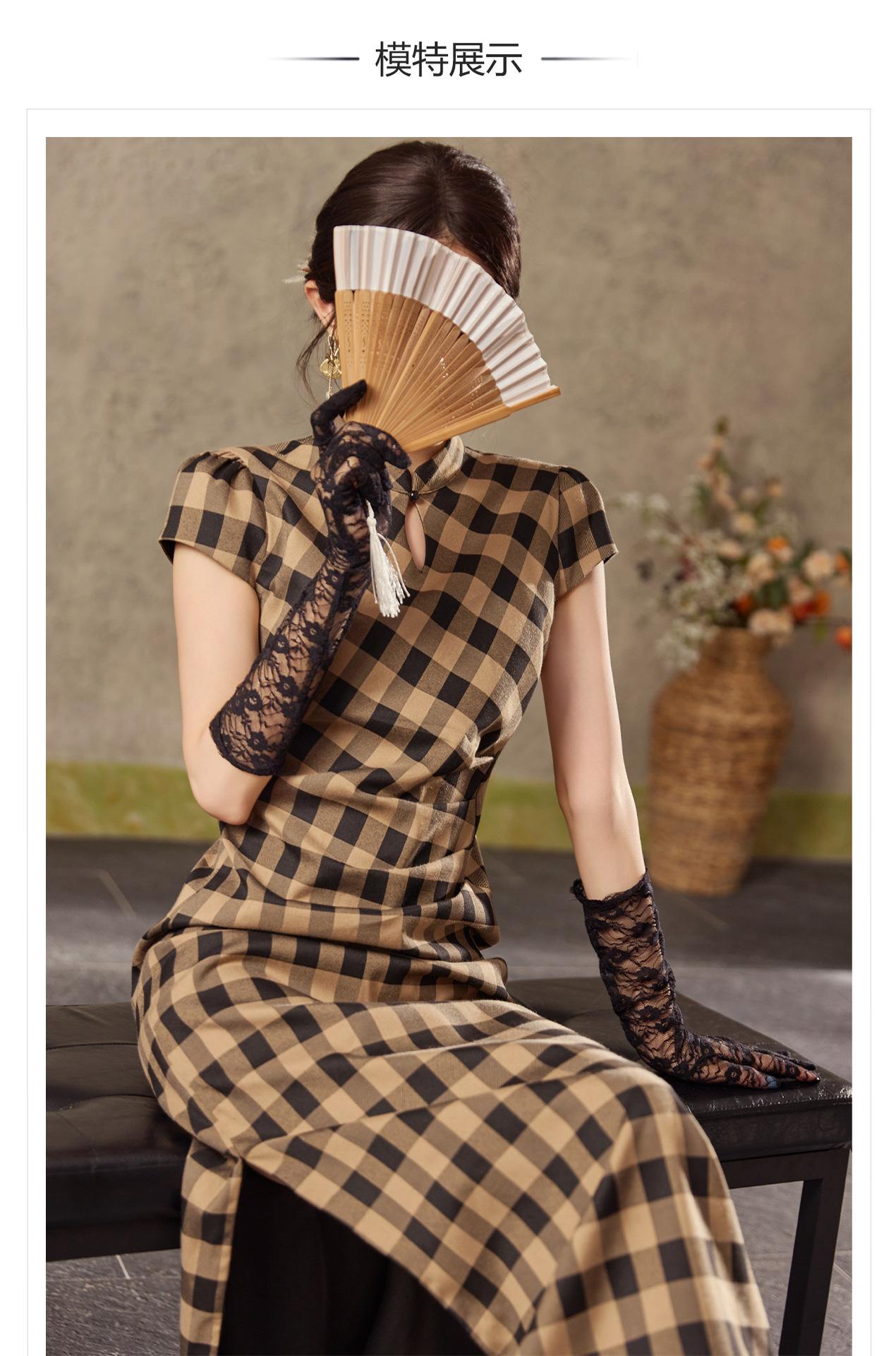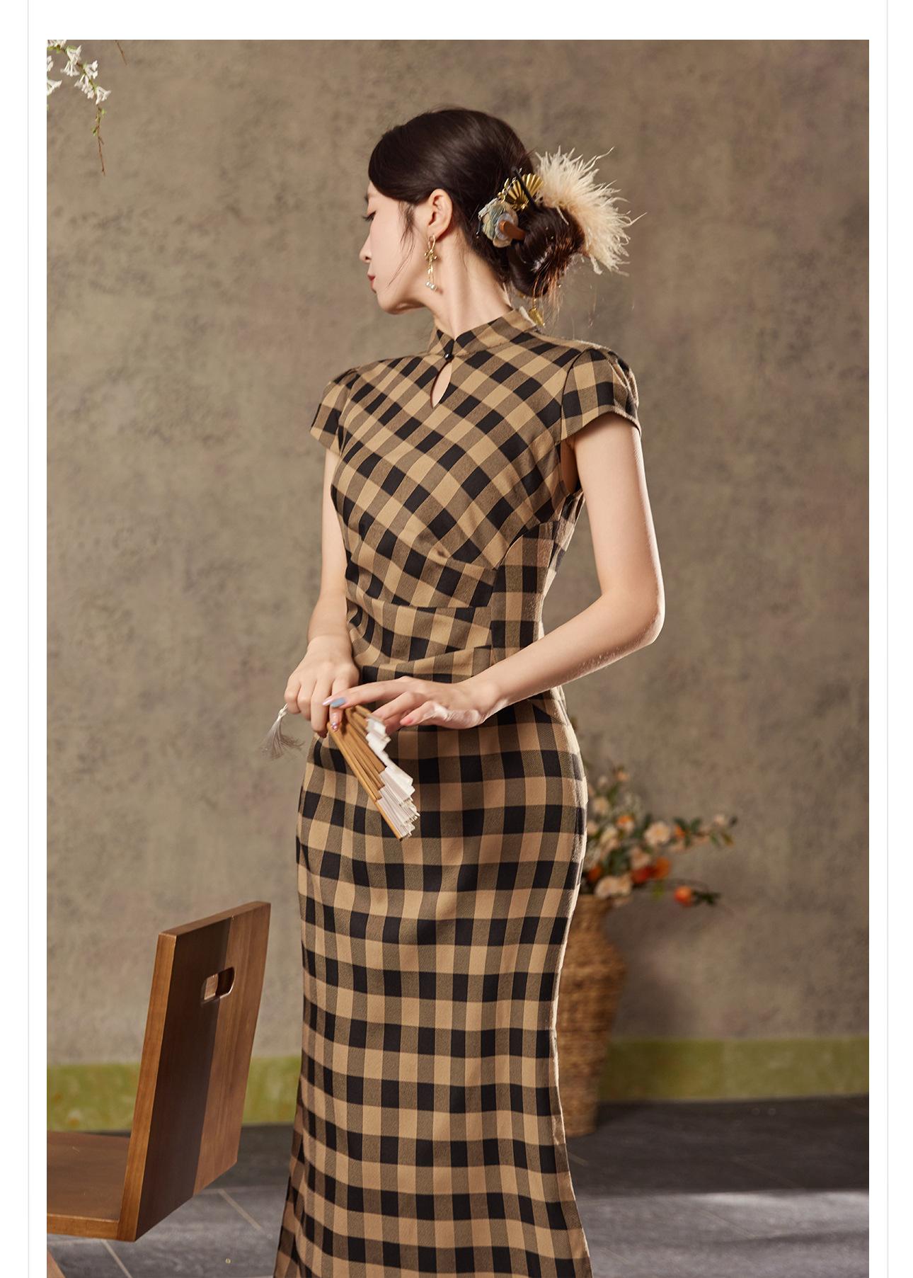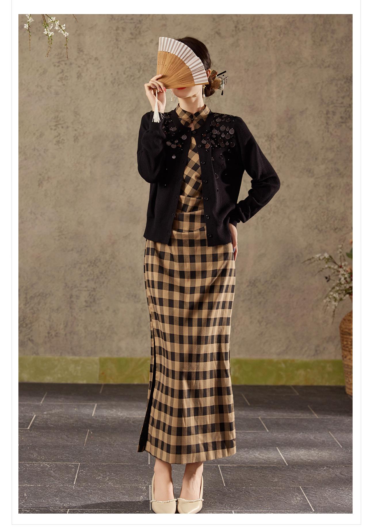 Nuevo Estilo Chino Marea Nacional Modificado Vestido de Cuello Mao para Mujer Moda de Principios de Otoño Nuevo Vestido Cheongsam Bordado a Cuadros N8040