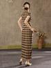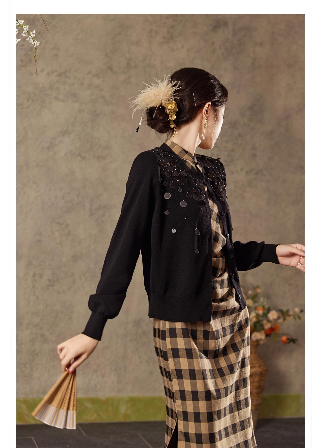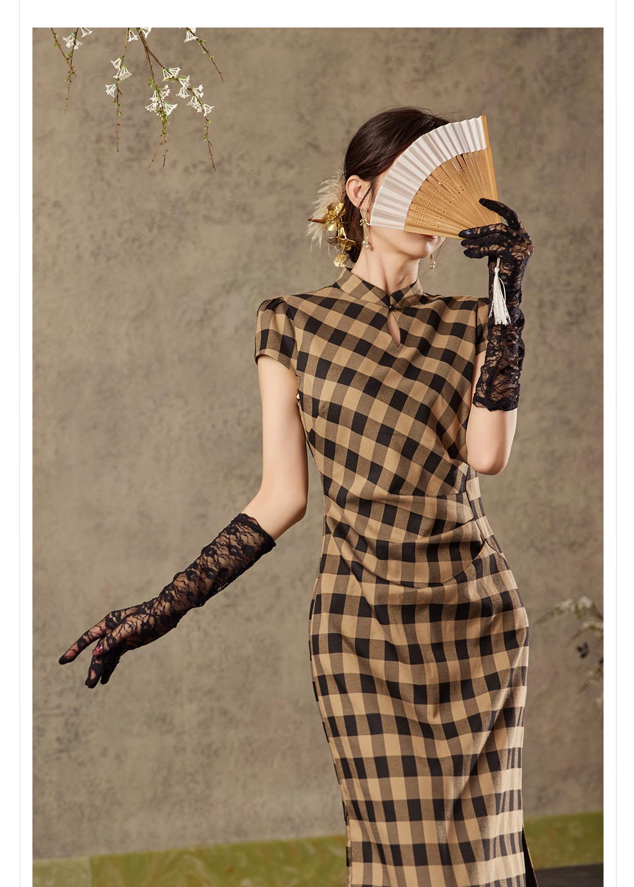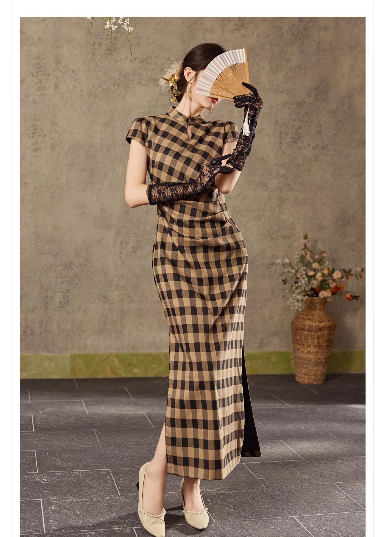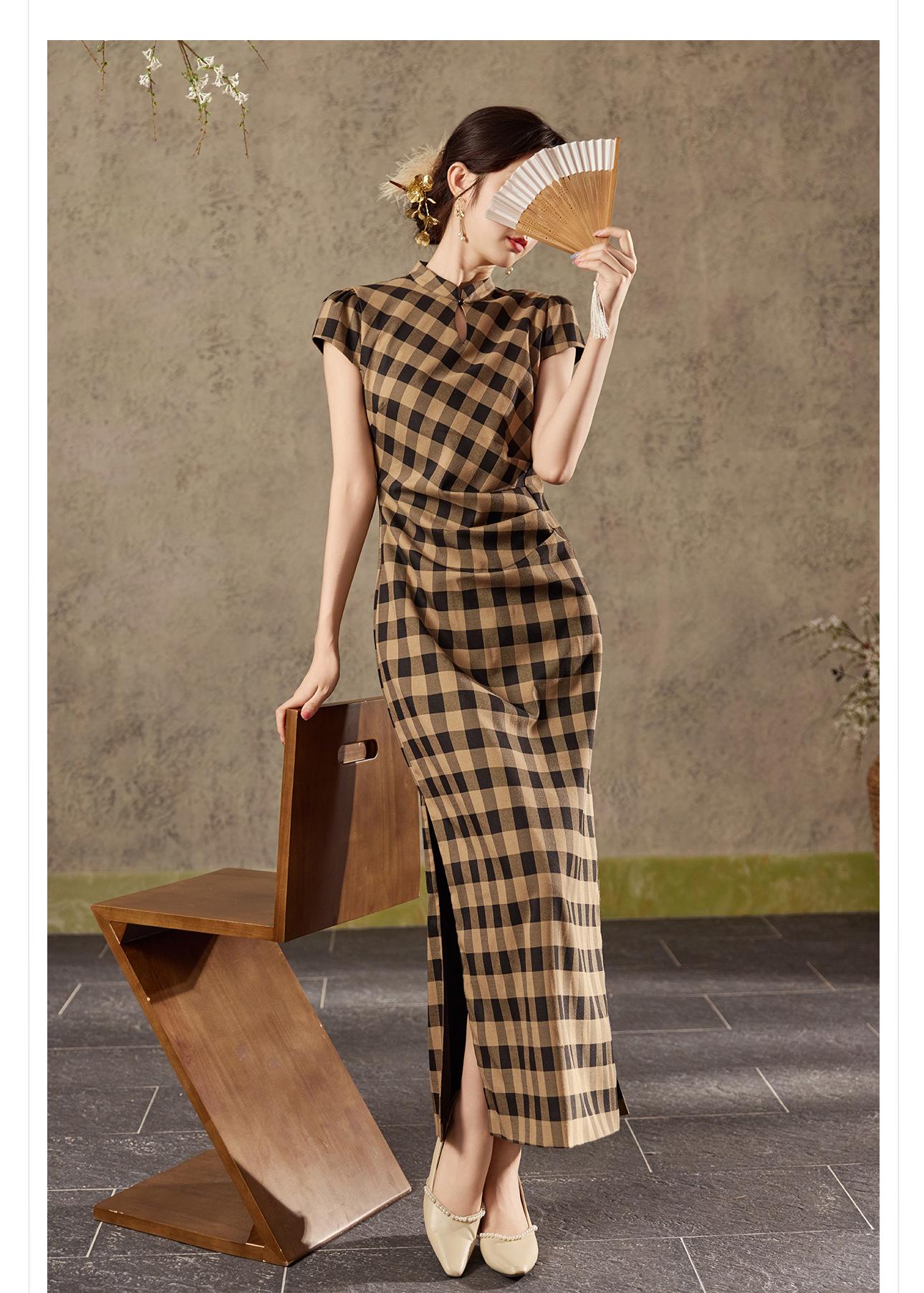 Nuevo Estilo Chino Marea Nacional Modificado Vestido de Cuello Mao para Mujer Moda de Principios de Otoño Nuevo Vestido Cheongsam Bordado a Cuadros N8040