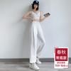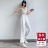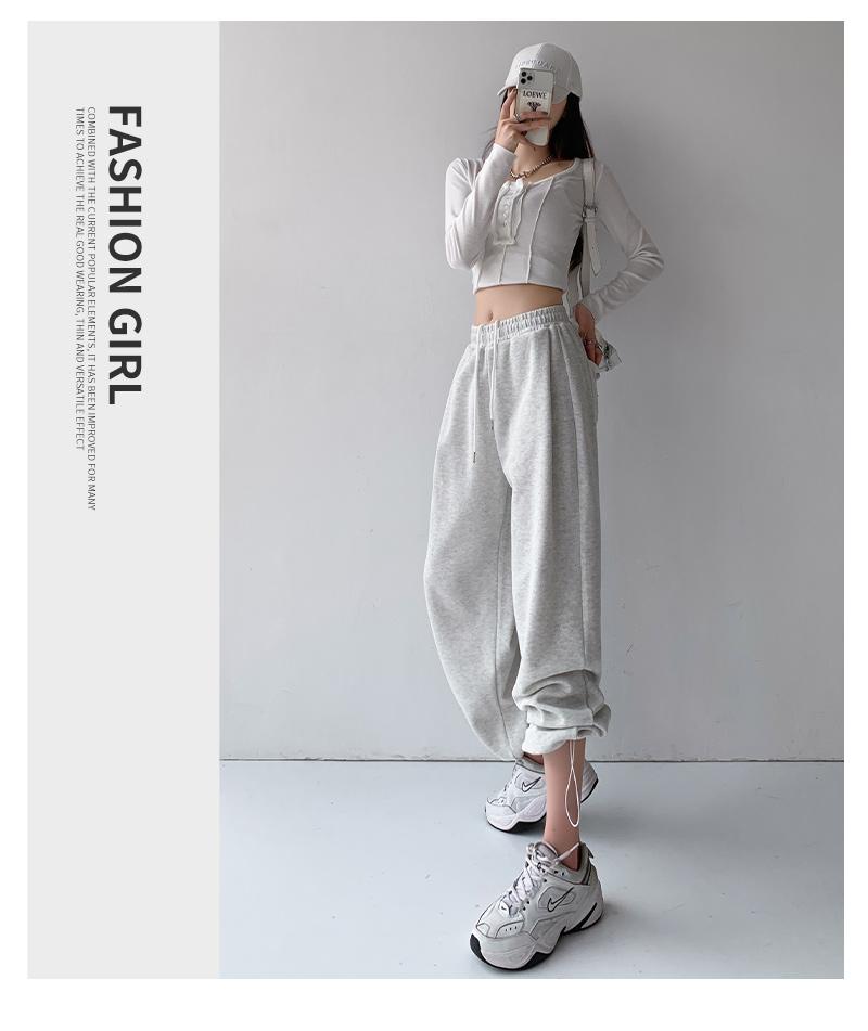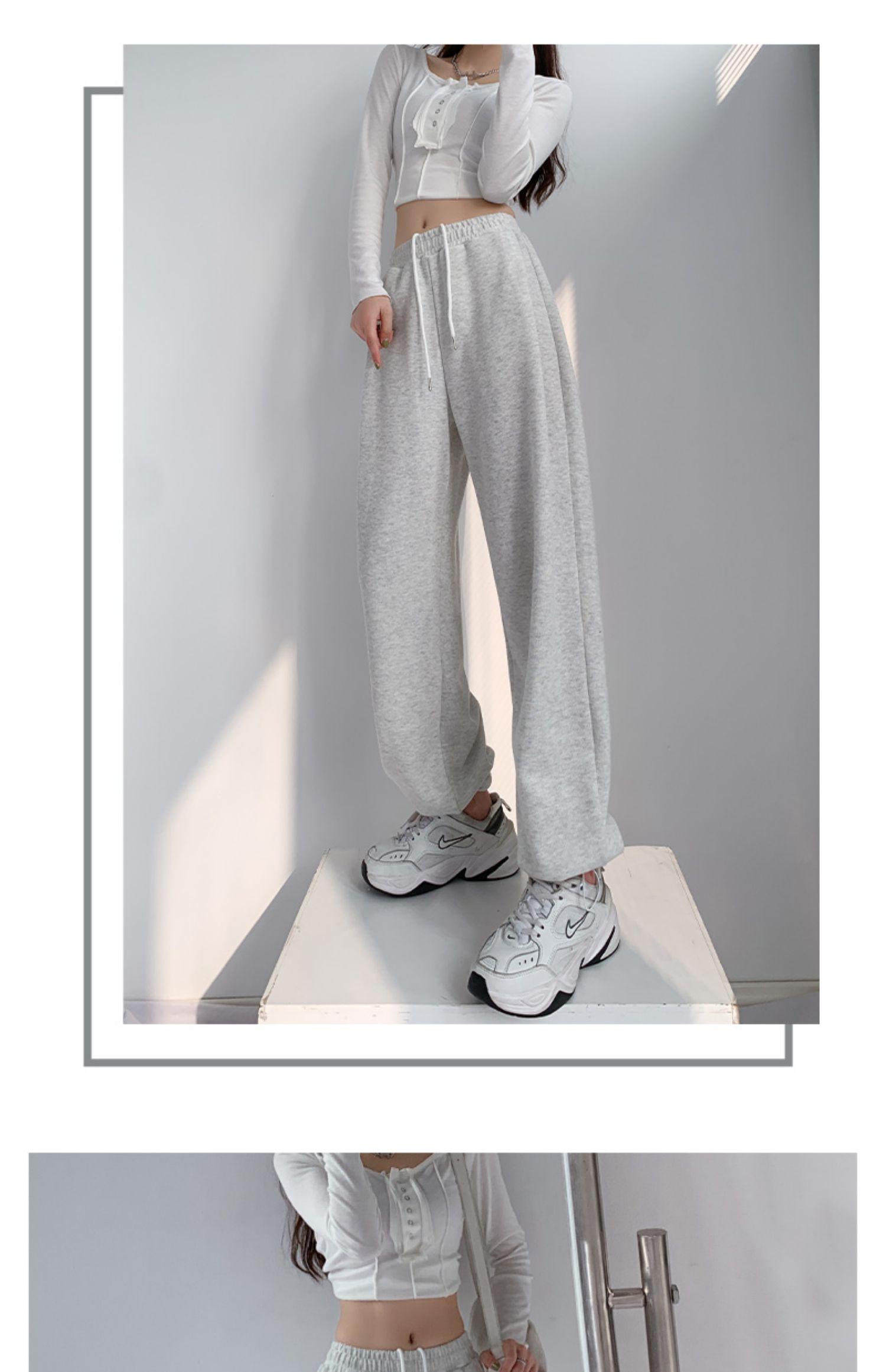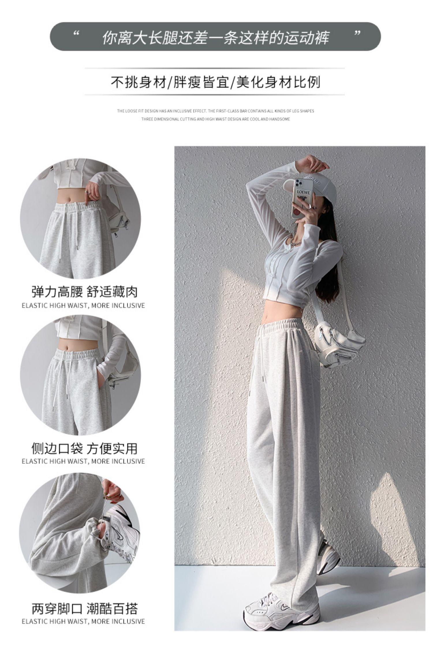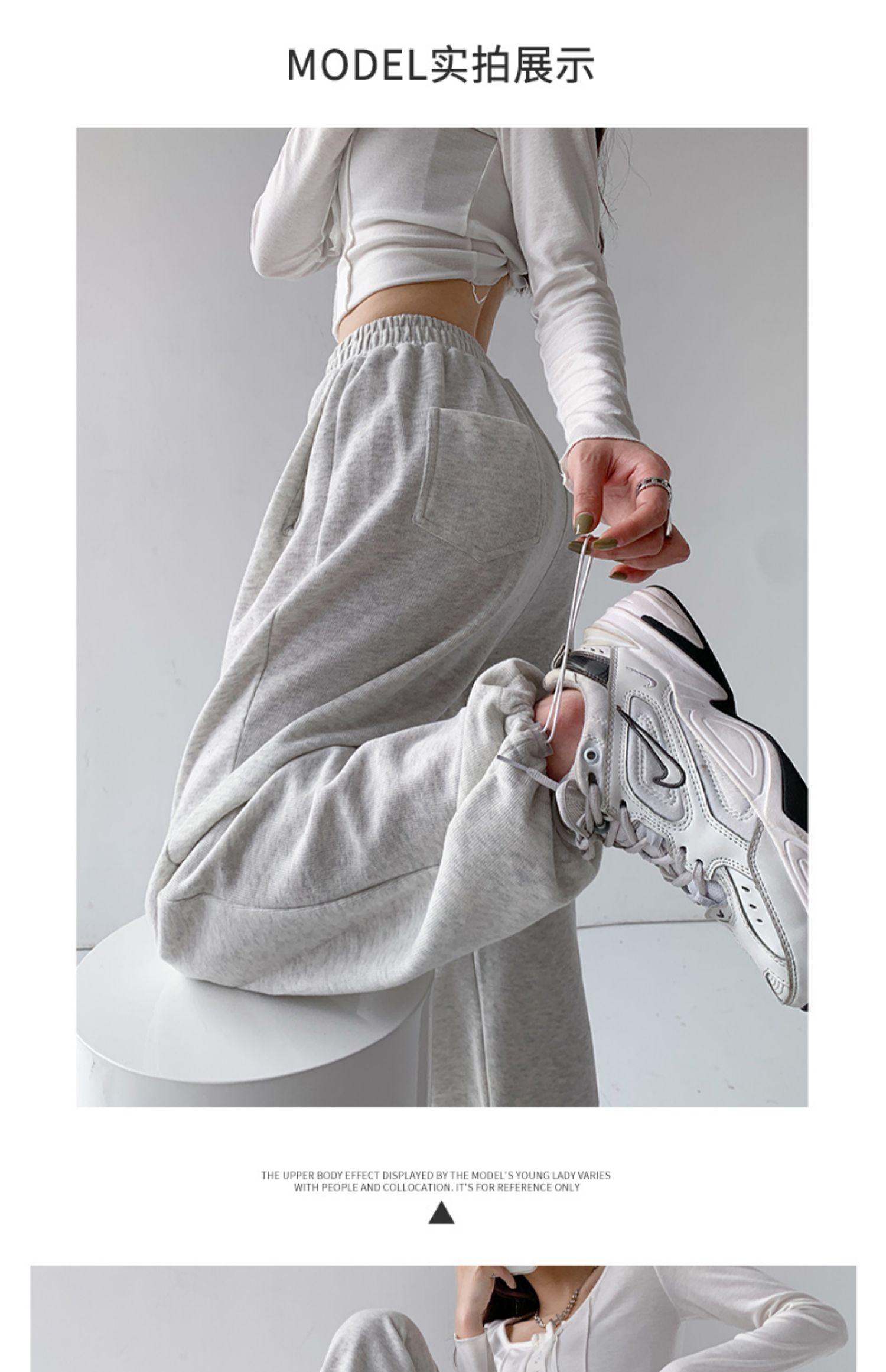 Pantalones Deportivos Delgados de Verano para Mujer 2025 Nuevo Estilo Americano con Cordón Ajustable para Atar en la Pierna Sueltos Rectos Casuales Blancos Grises Pantalones de Chándal