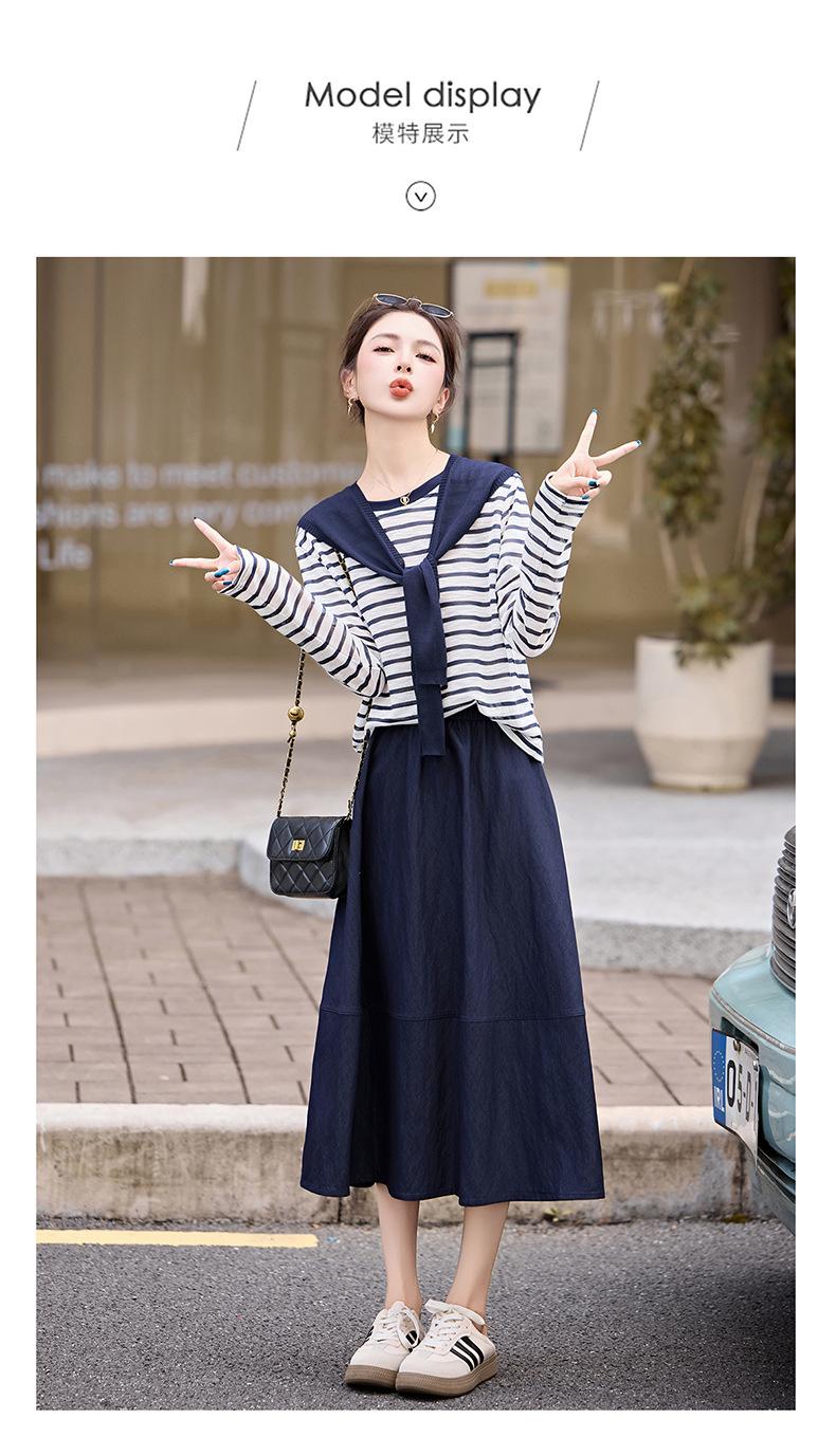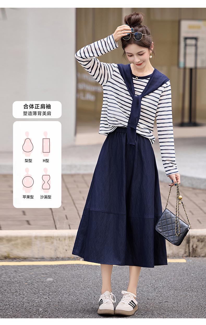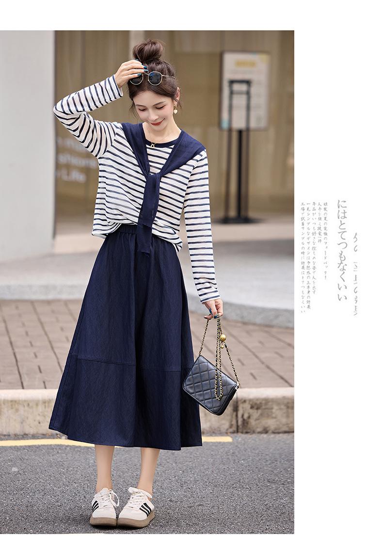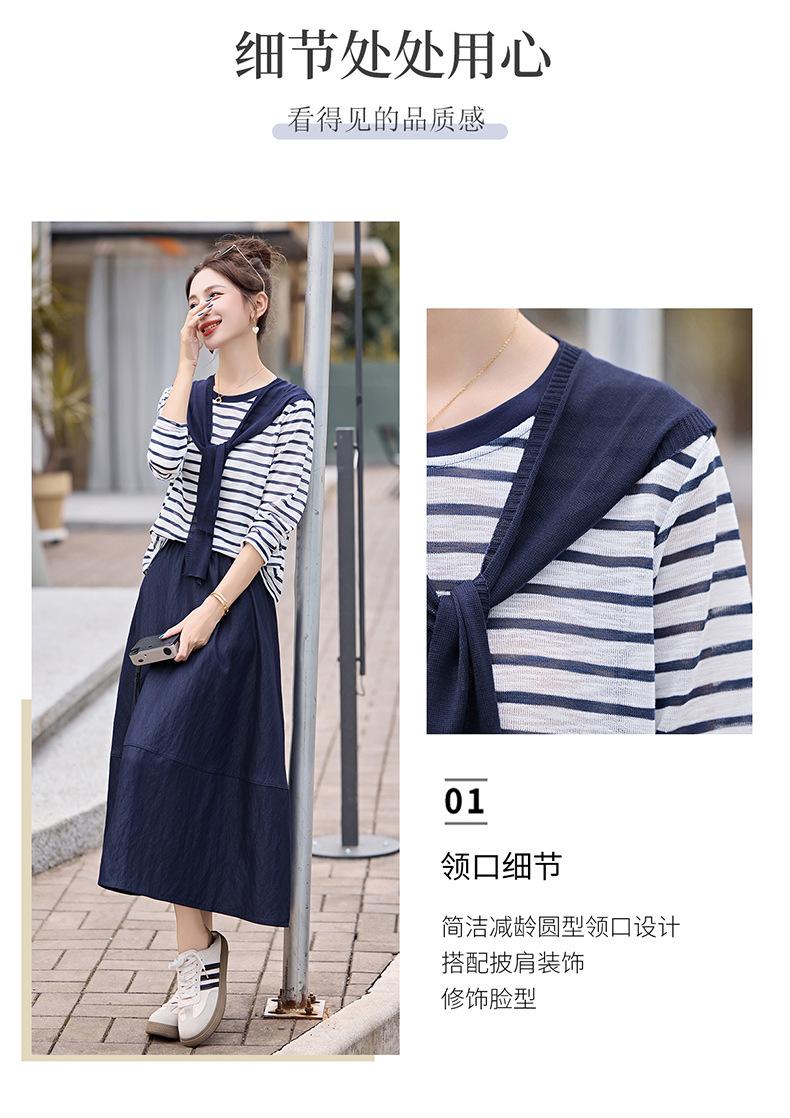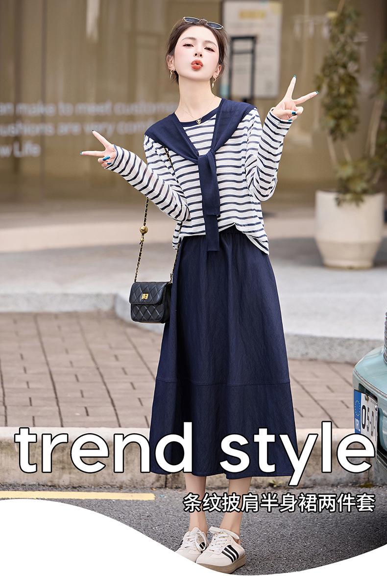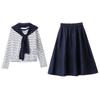 Conjunto de dos piezas de chaleco a rayas de alta gama + falda midi para mujer, Otoño 2025, nuevo conjunto moderno que reduce la edad