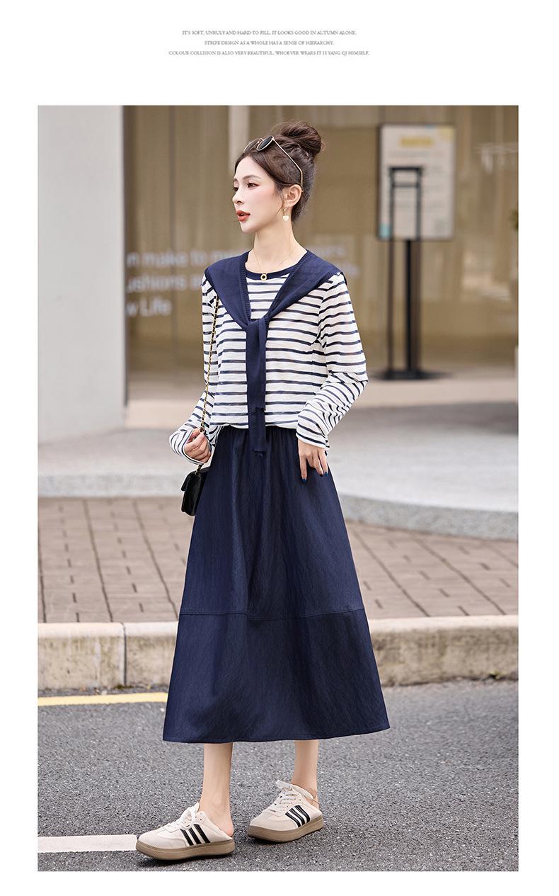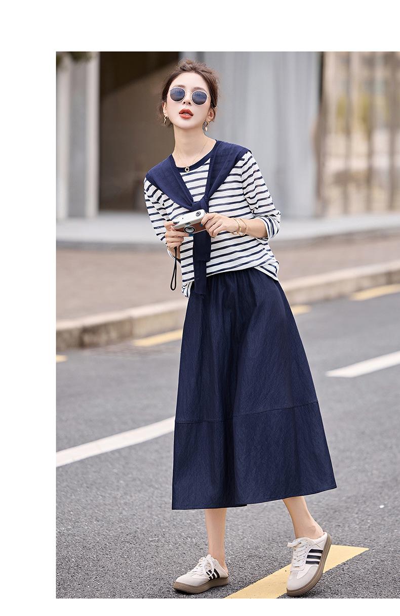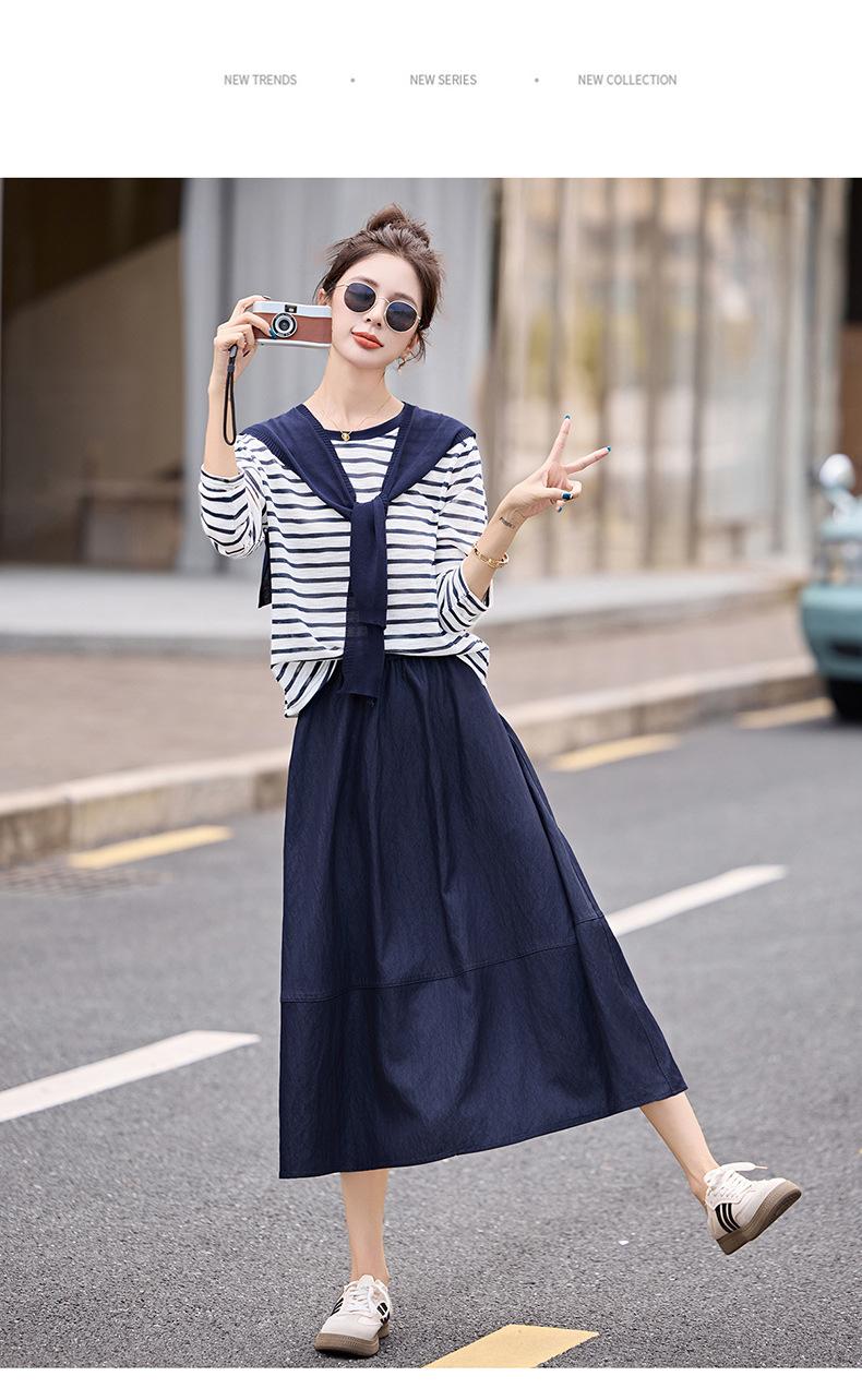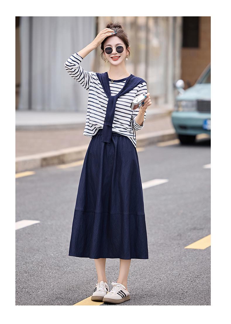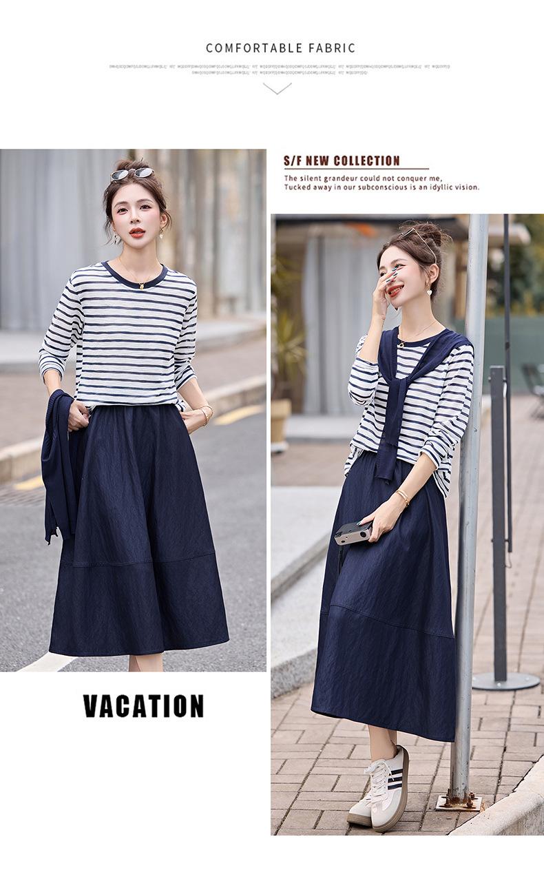 Conjunto de dos piezas de chaleco a rayas de alta gama + falda midi para mujer, Otoño 2025, nuevo conjunto moderno que reduce la edad