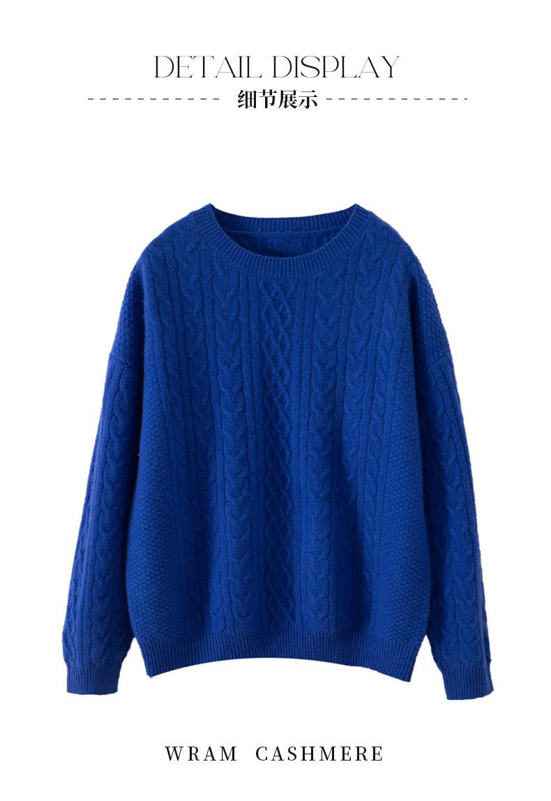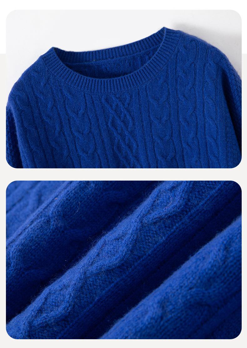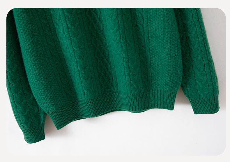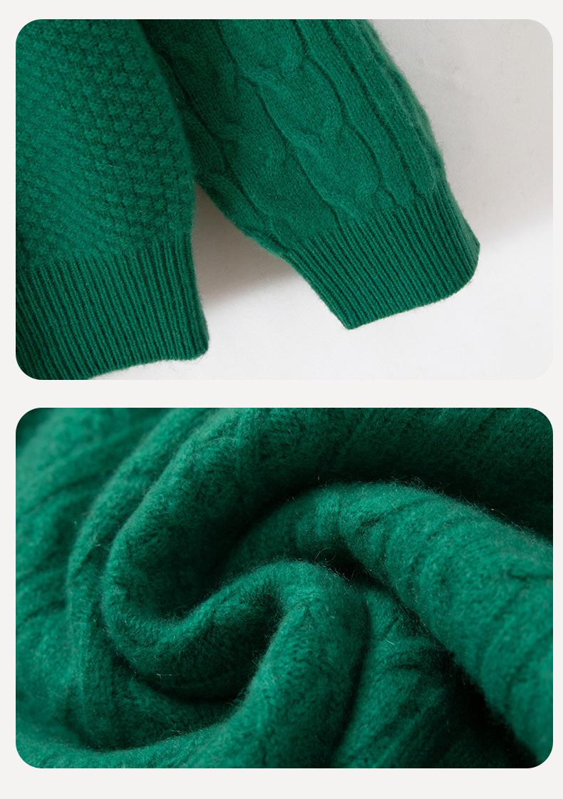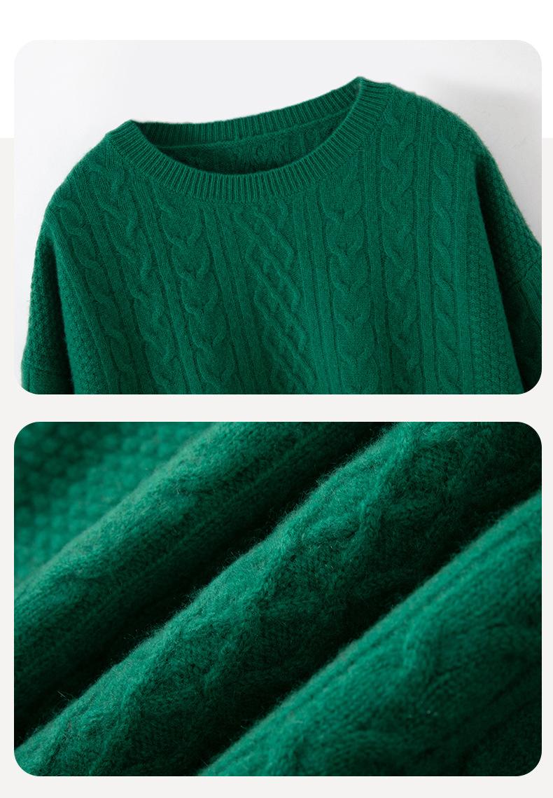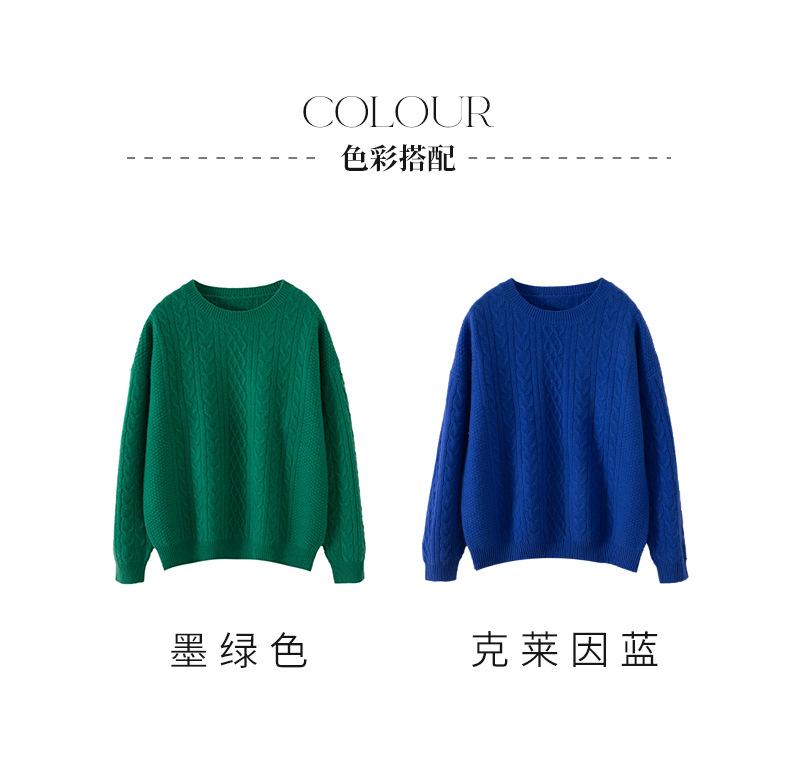 Otoño/Invierno 2025 Nuevo Suéter Tejido de Cable Grande Cuello Redondo Suelto Casual Moda Versátil Jersey de Punto Color Sólido