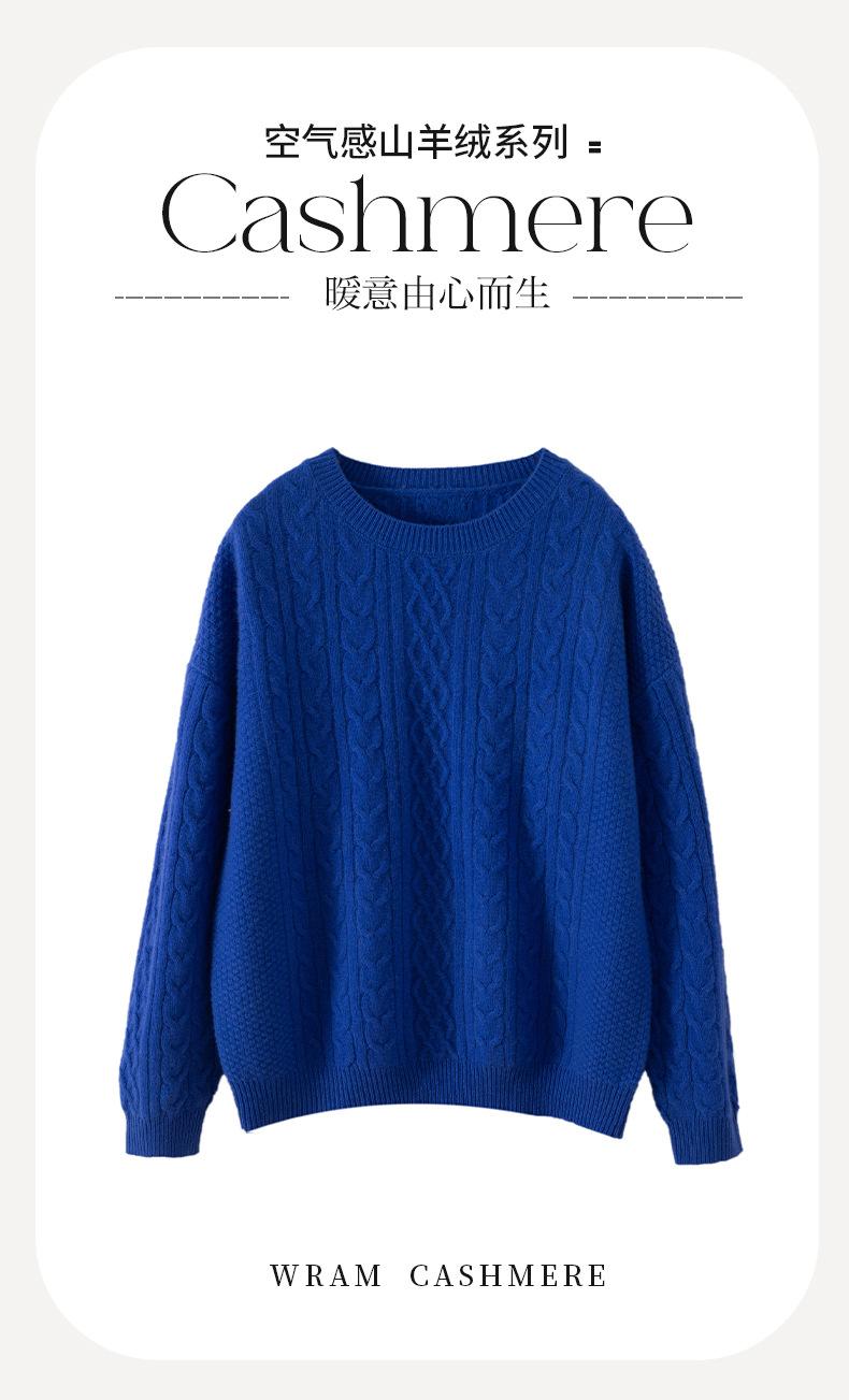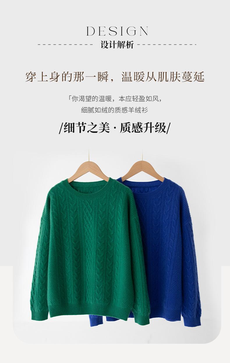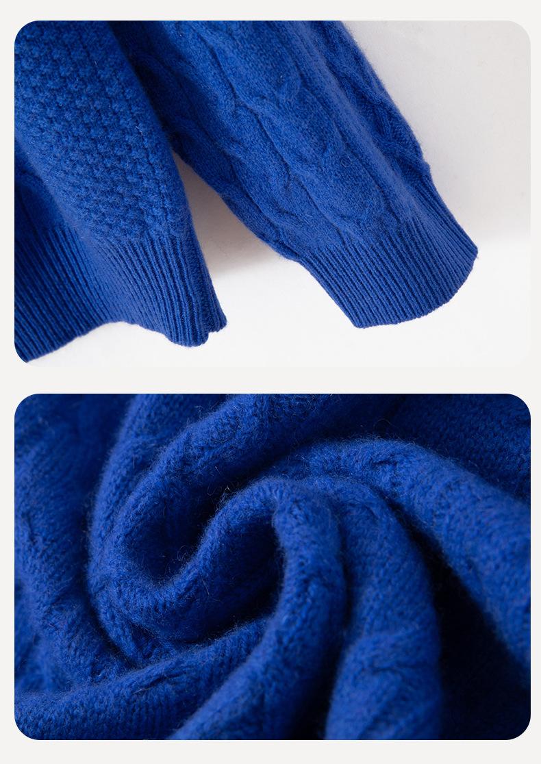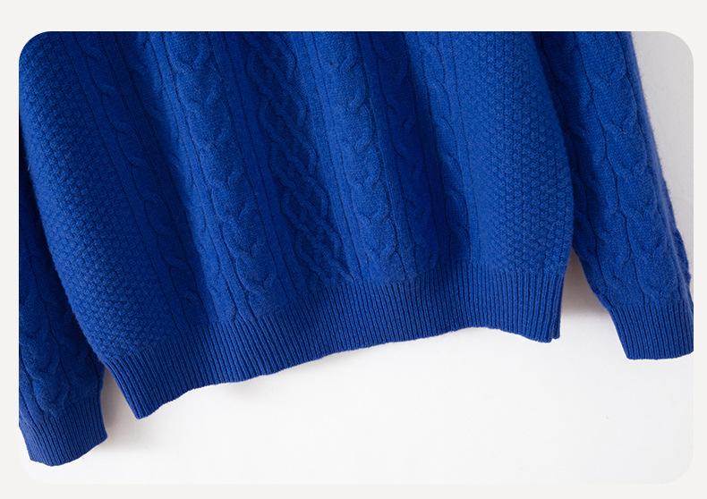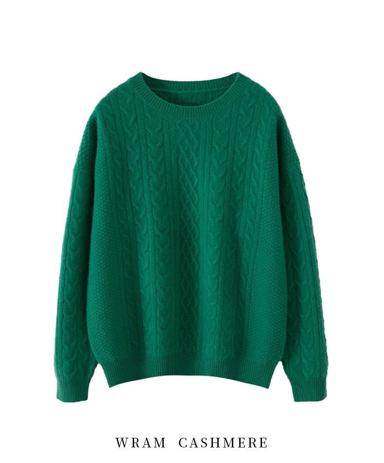 Otoño/Invierno 2025 Nuevo Suéter Tejido de Cable Grande Cuello Redondo Suelto Casual Moda Versátil Jersey de Punto Color Sólido