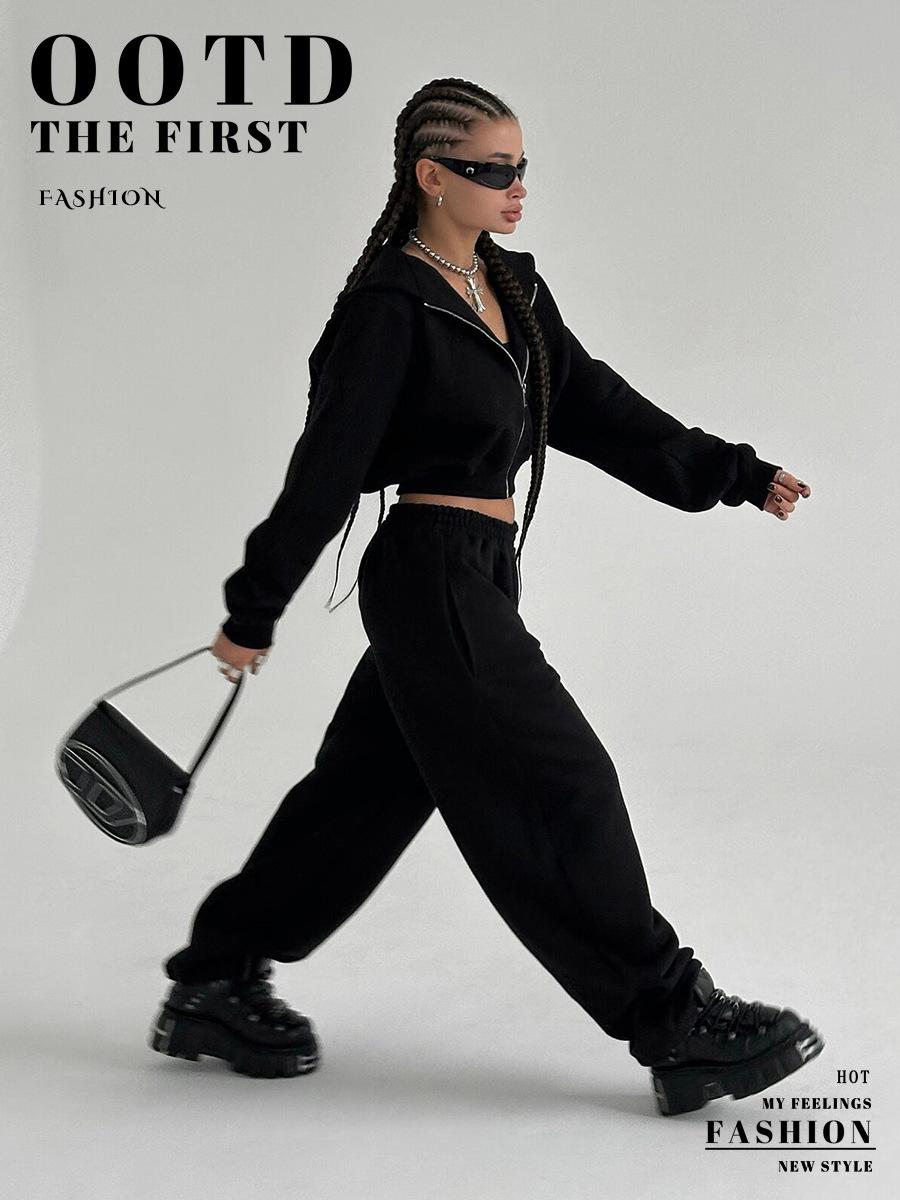 Conjunto transfronterizo corto con capucha y pantalones largos Sudadera europea y americana otoño/invierno 2025 con forro polar y pantalones deportivos conjunto deportivo