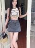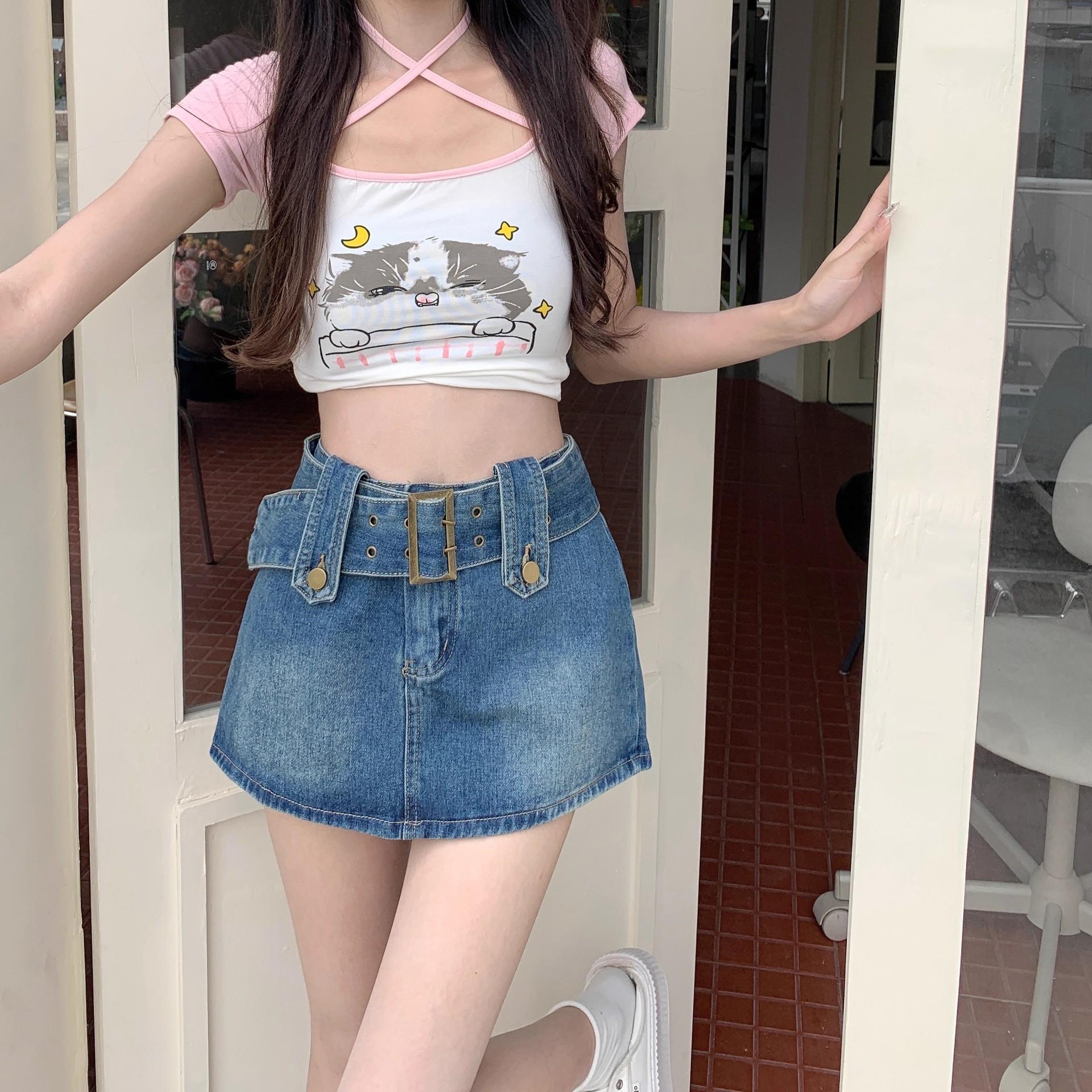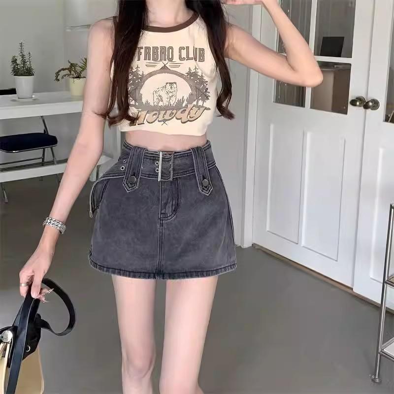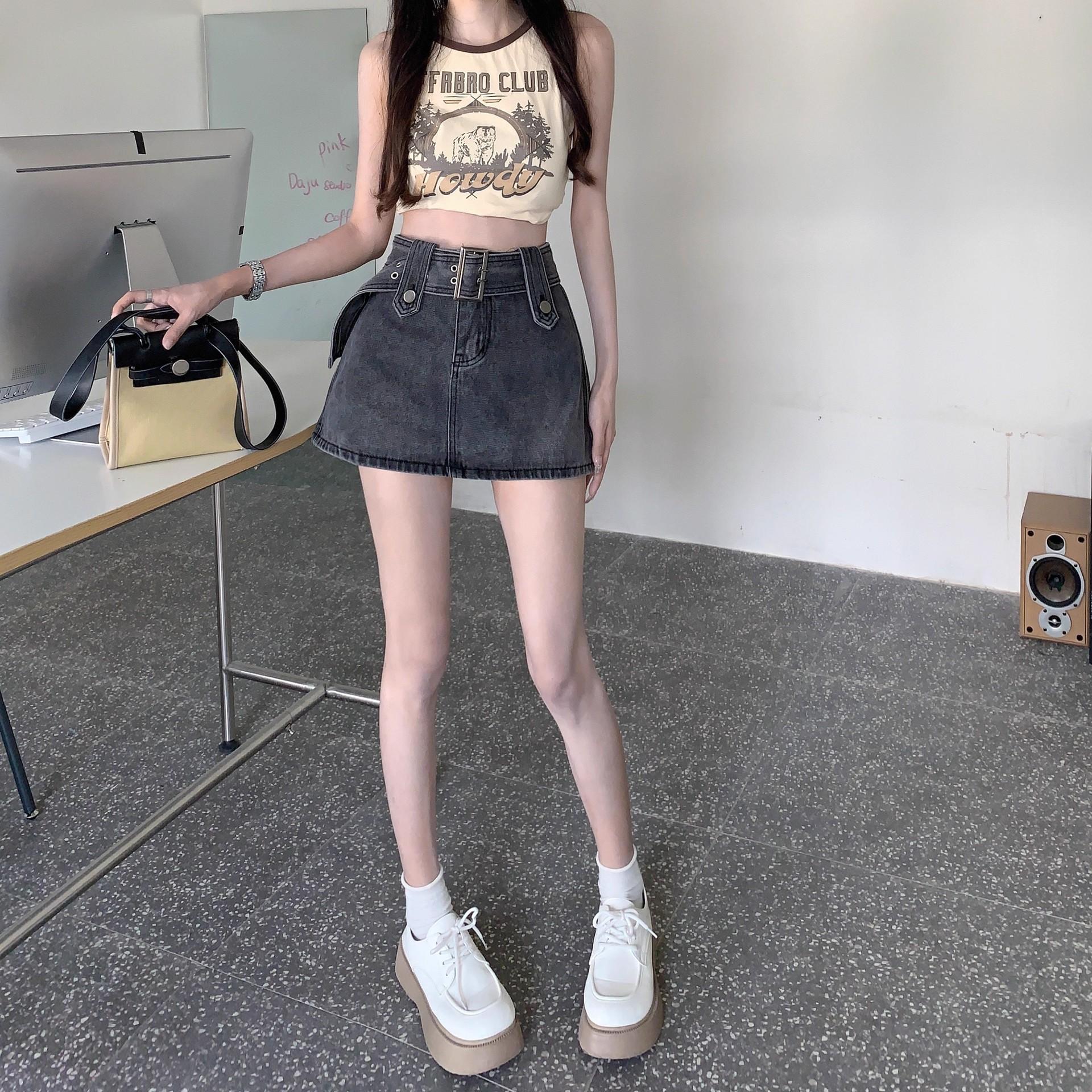 Falda de mezclilla de talla grande para mujer Verano Nuevo Retro Cintura alta Adelgazante Falda súper corta de chica hot Falda ajustada Falda Pantalones Falda