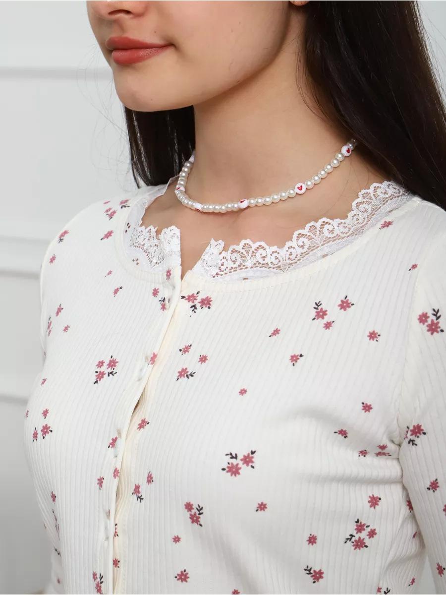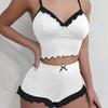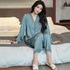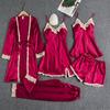 Pijama Sexy Europeo y Americano Transfronterizo Encaje Ajustado Floral Cárdigan de Manga Larga Shorts de Cintura Ropa de Casa Traje de Mujer