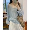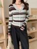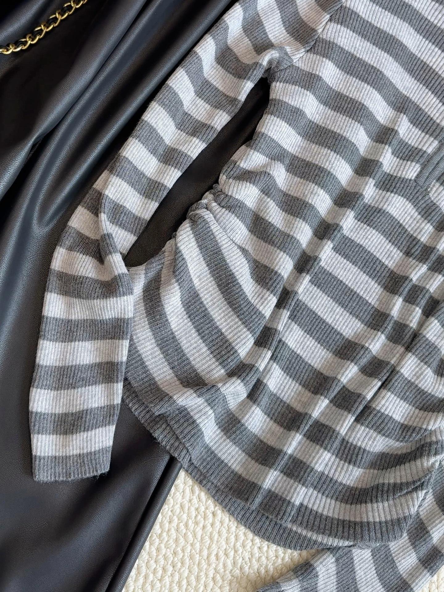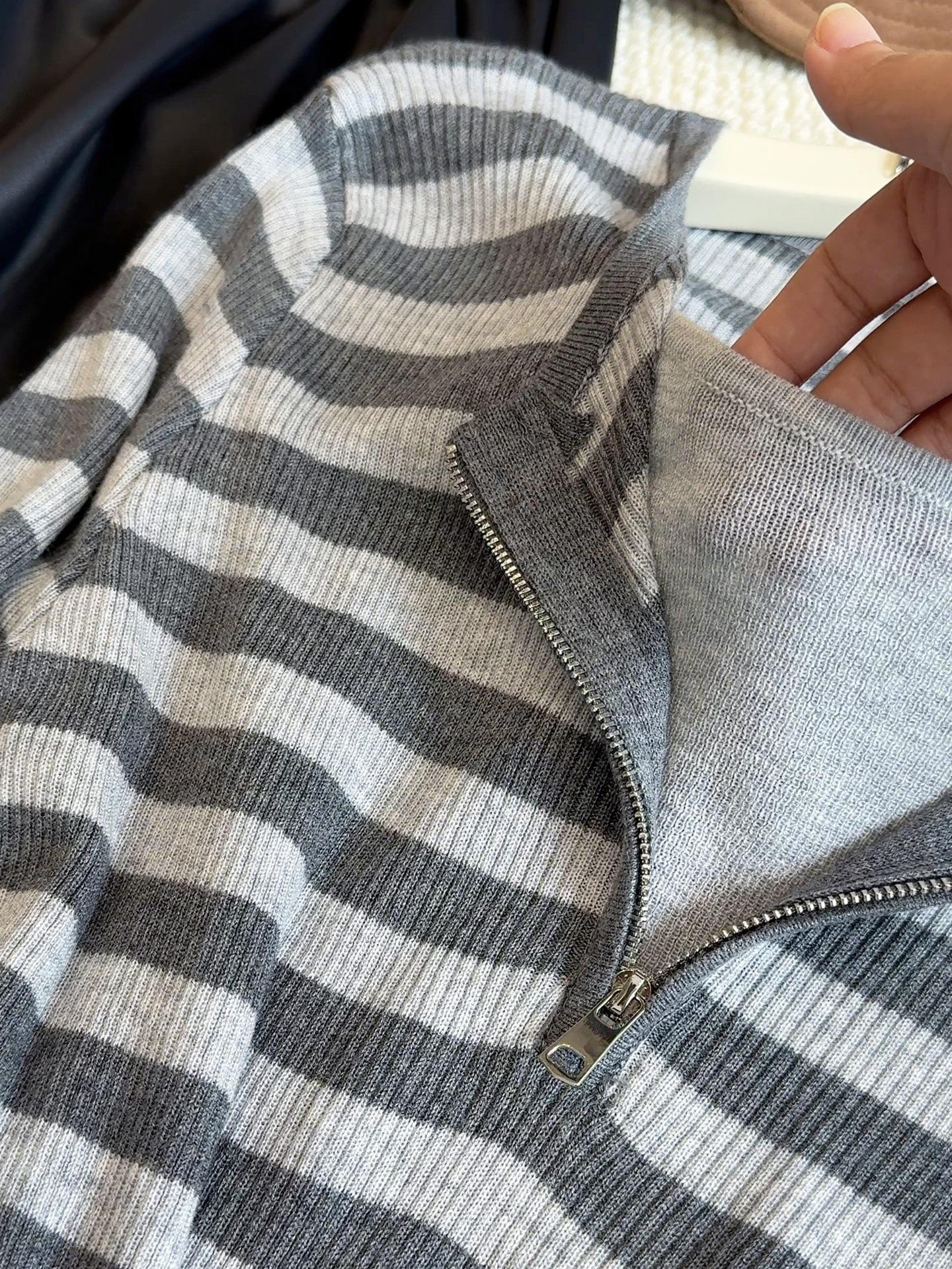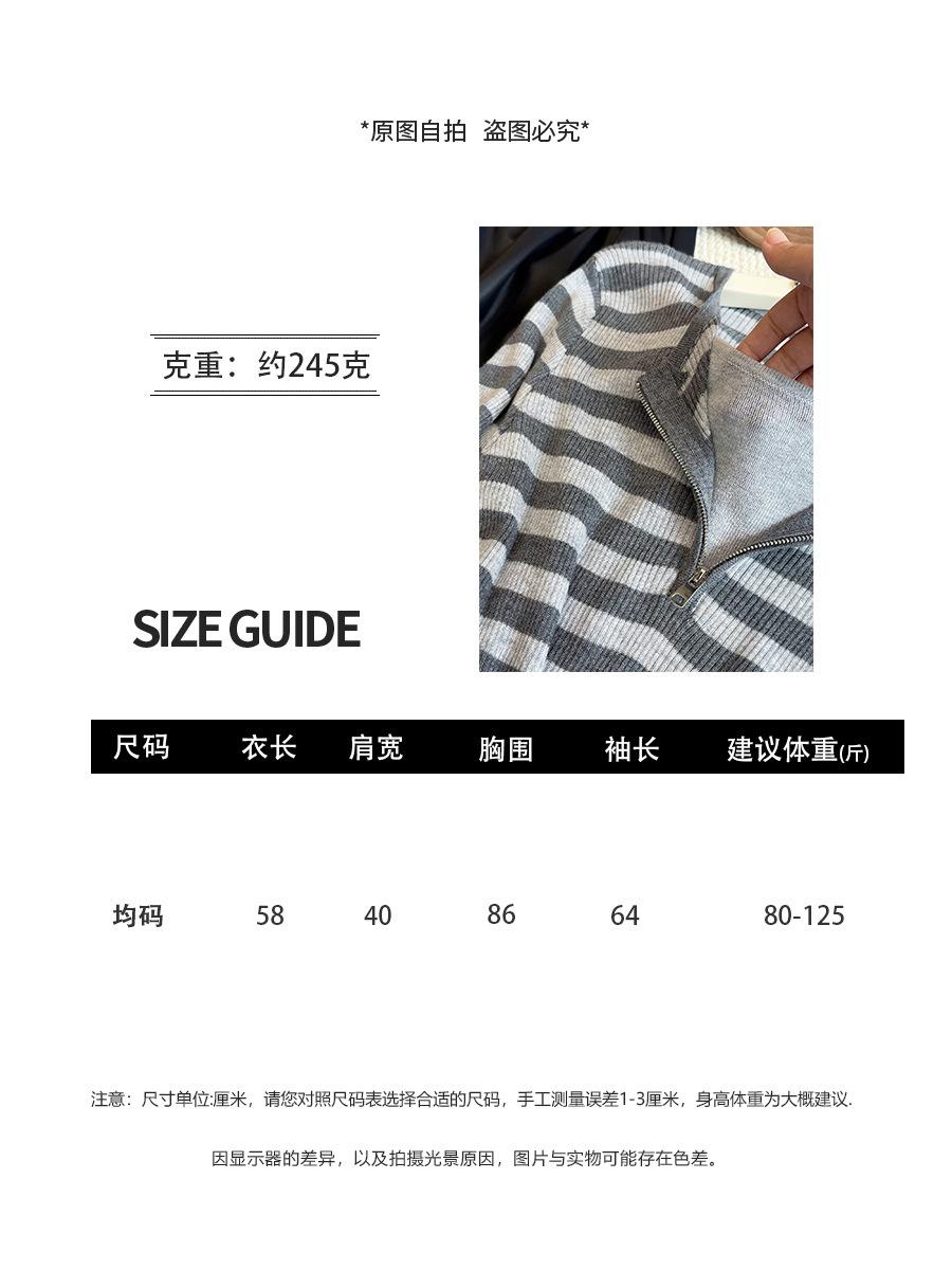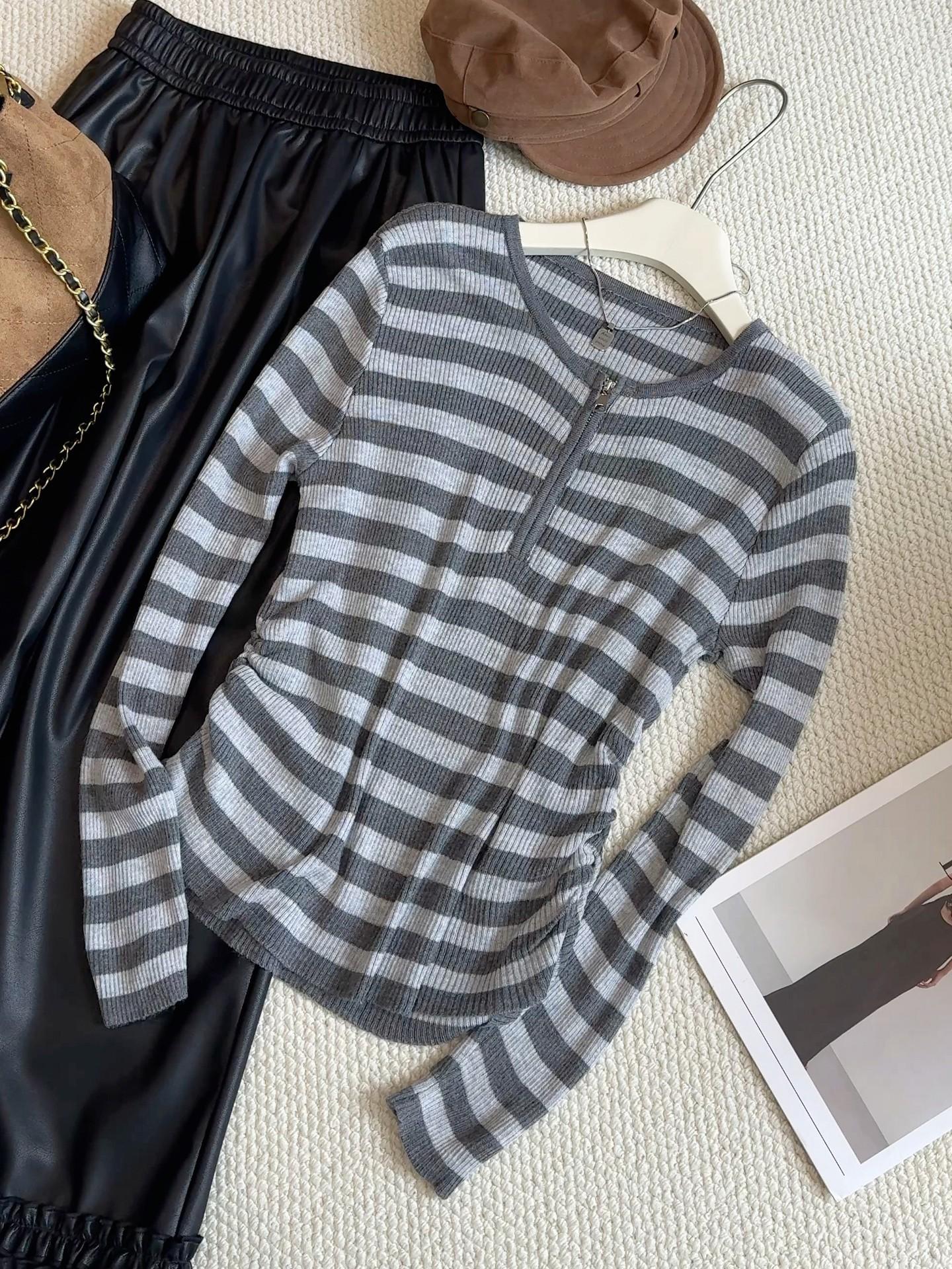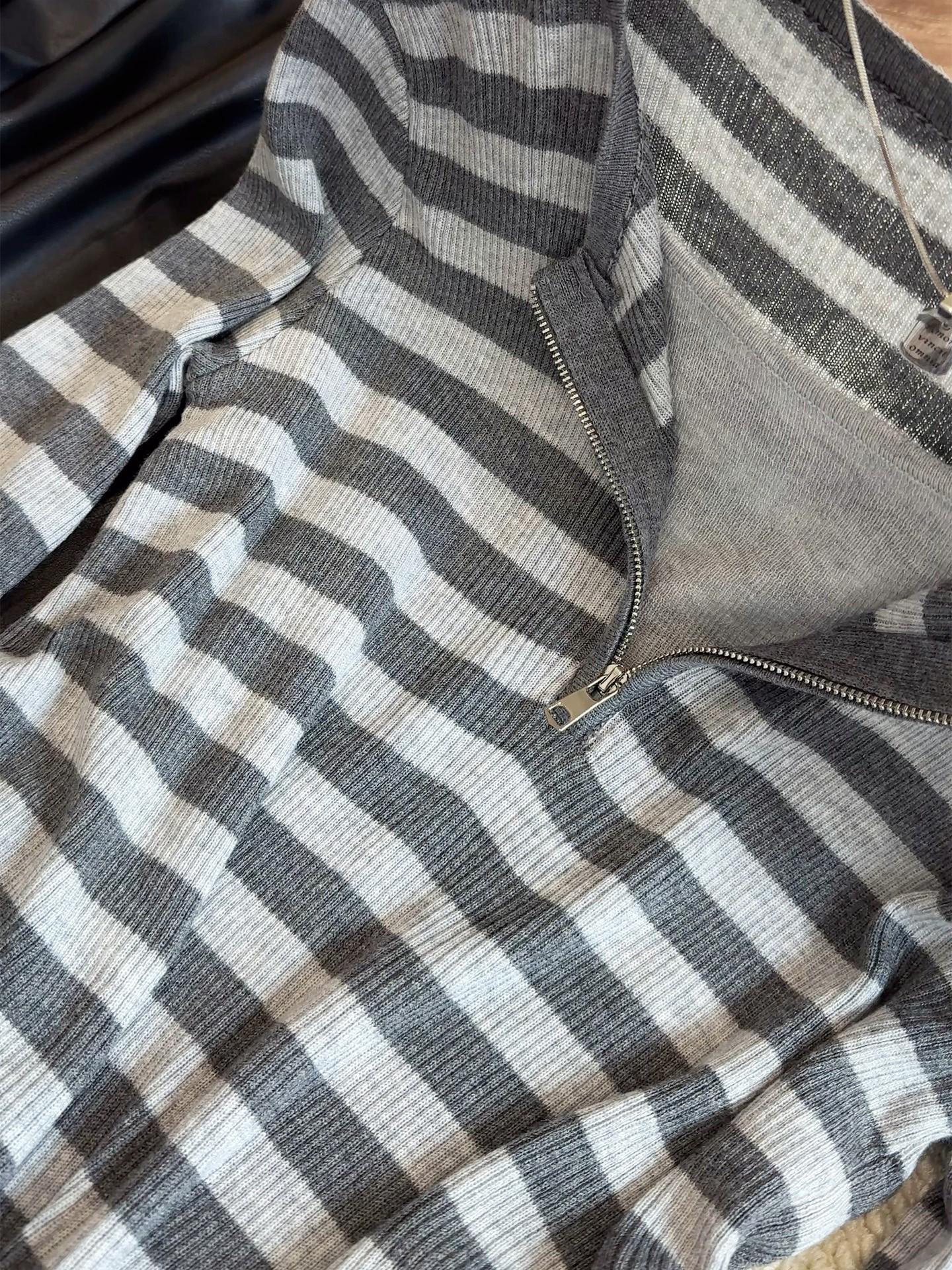 Top de Punto de Manga Larga con Rayas Estilo Coreano de Media Cremallera Falso de Dos Piezas para Mujer 2025 Ambiente Otoño Temprano Conjunto Adelgazante Capa Base