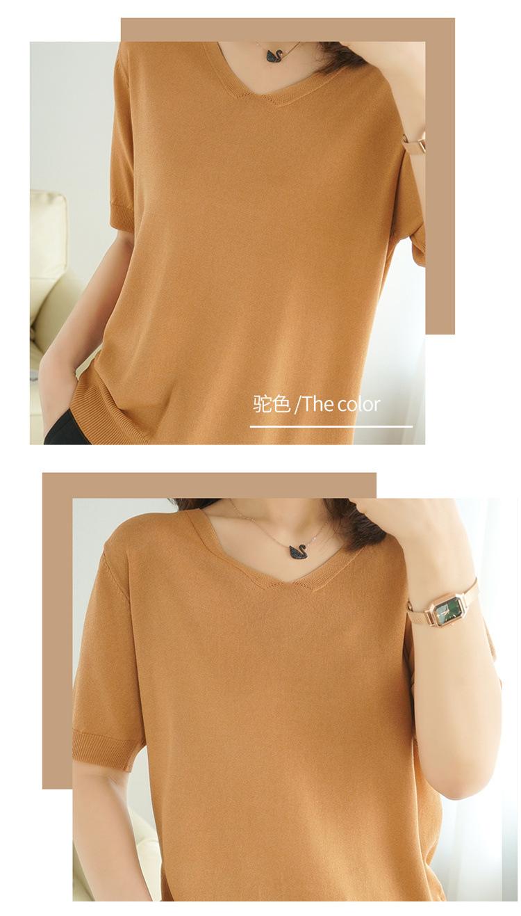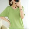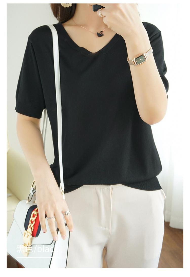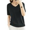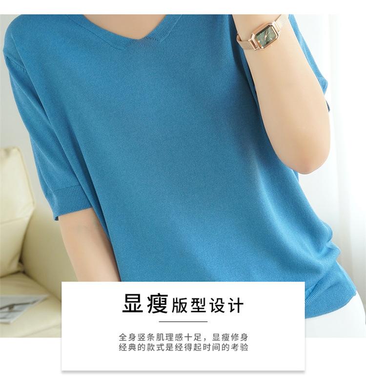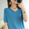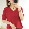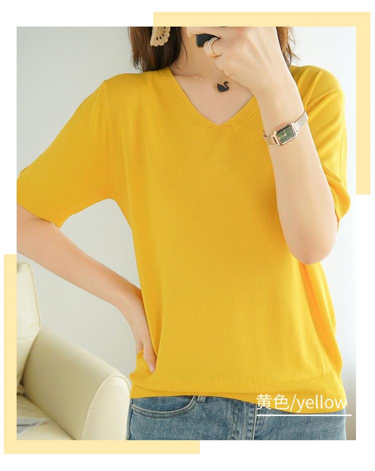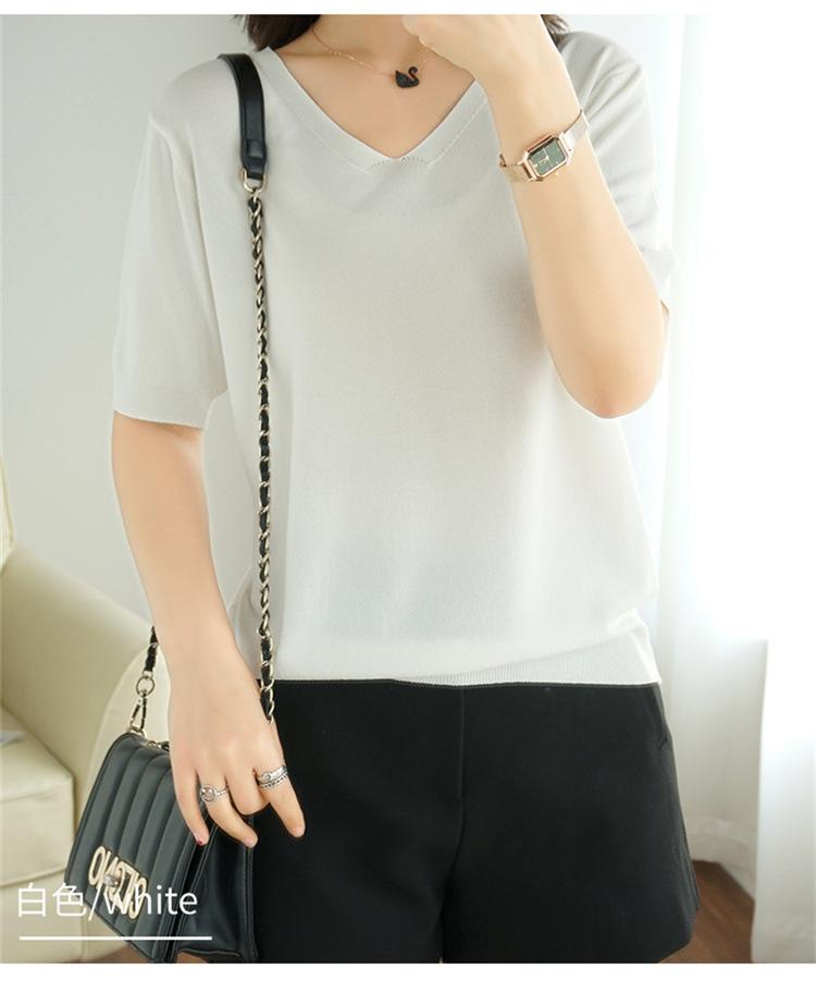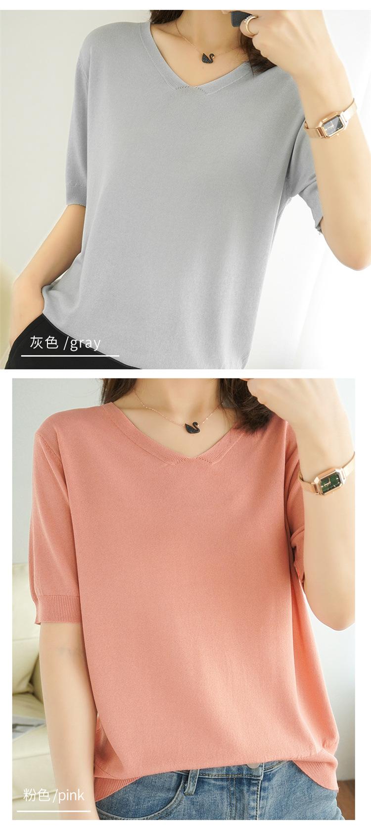 Suéter Nuevo de Primavera y Verano 2025 con Cuello en V Manga Media Color Sólido Holgado Jersey Elegante Camiseta Básica Top para Mujer
