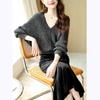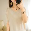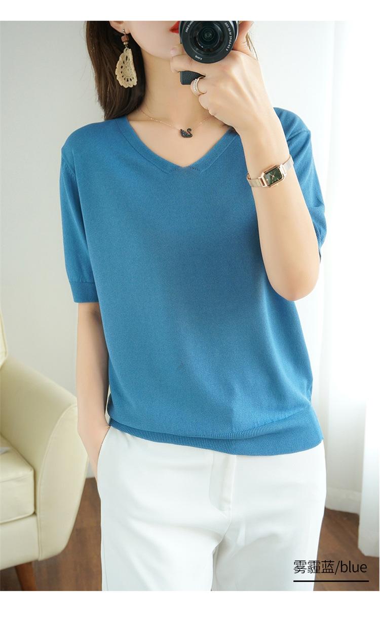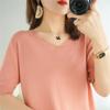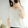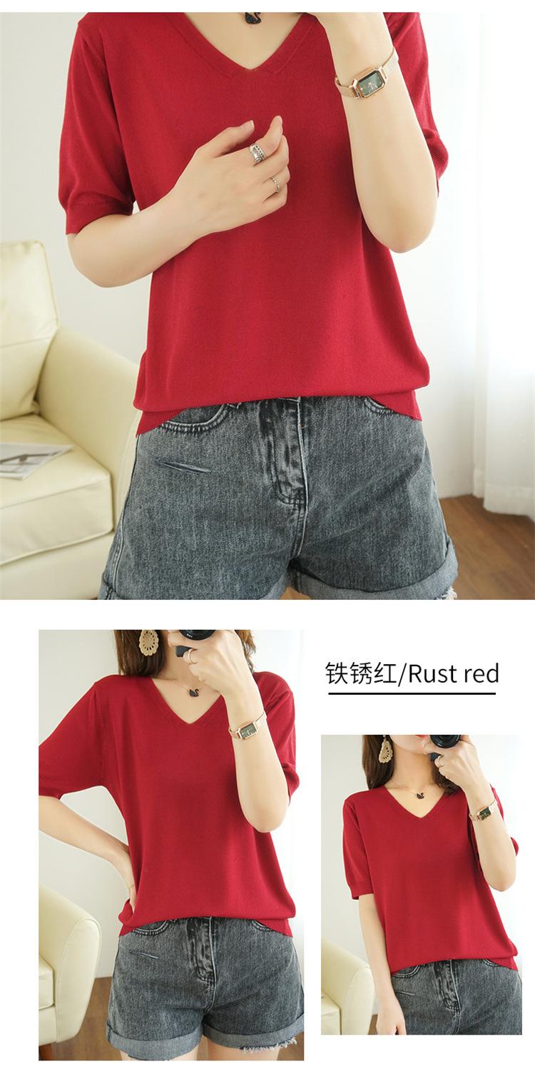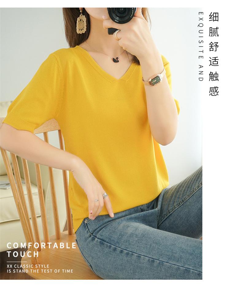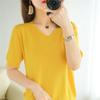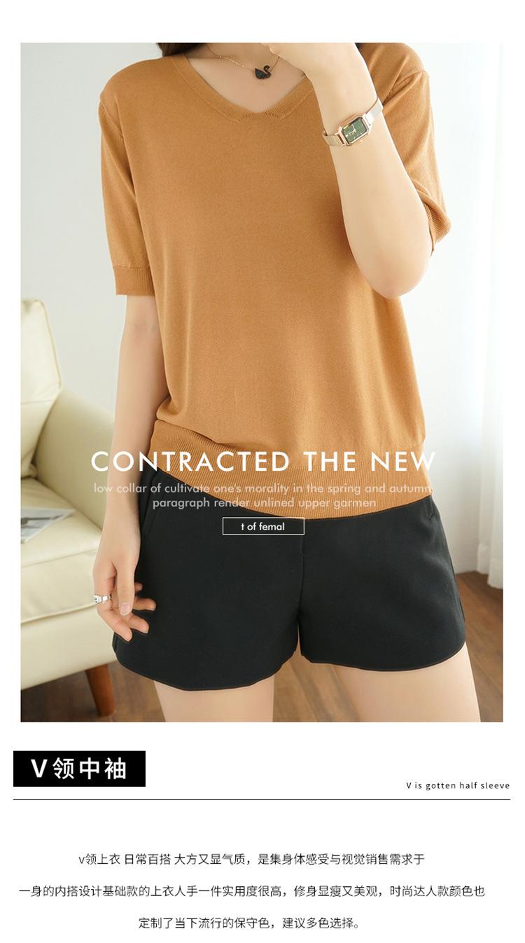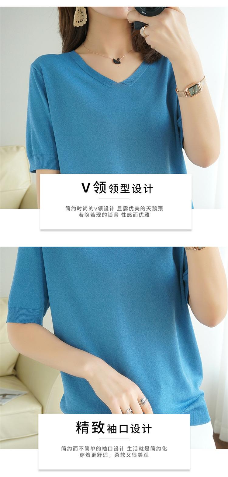 Suéter Nuevo de Primavera y Verano 2025 con Cuello en V Manga Media Color Sólido Holgado Jersey Elegante Camiseta Básica Top para Mujer